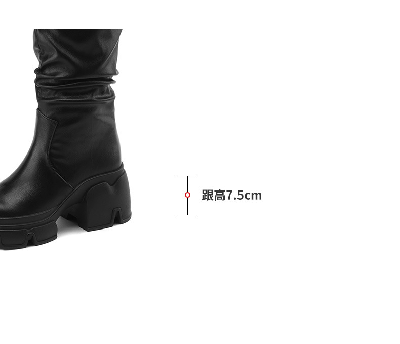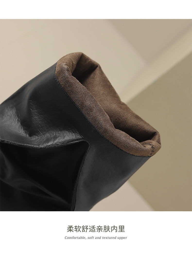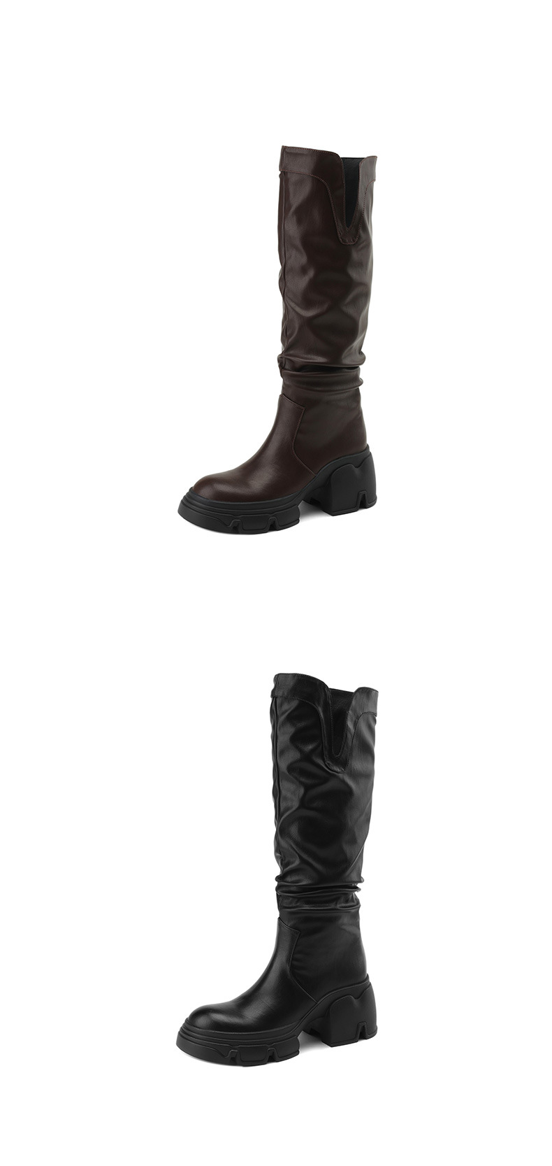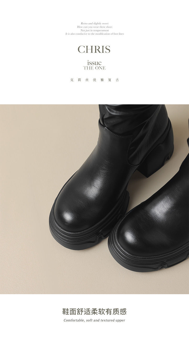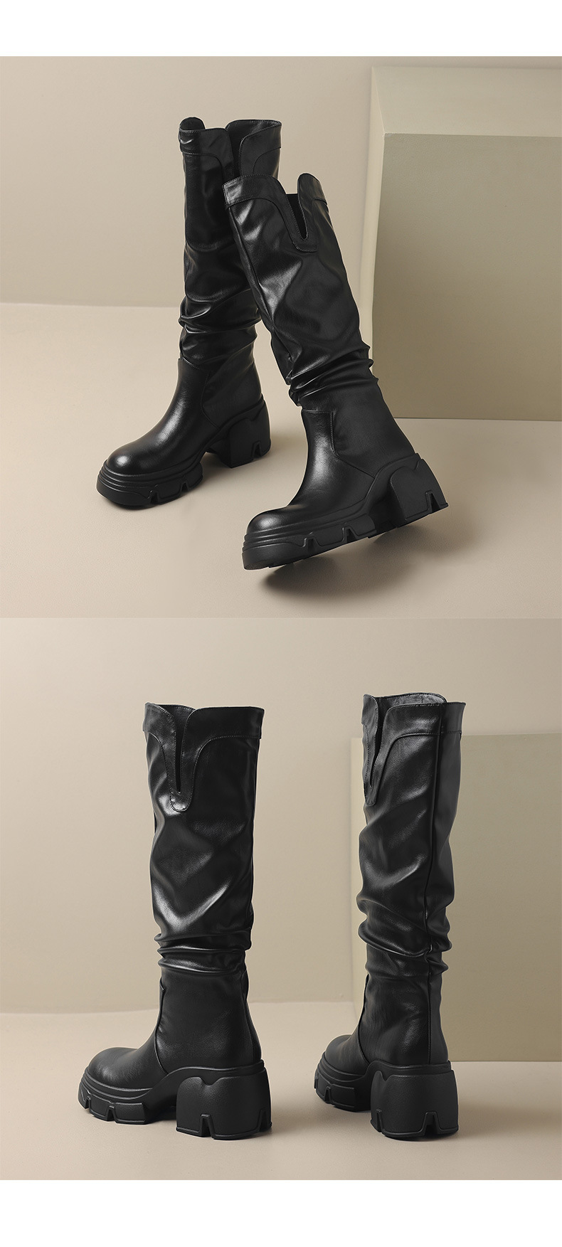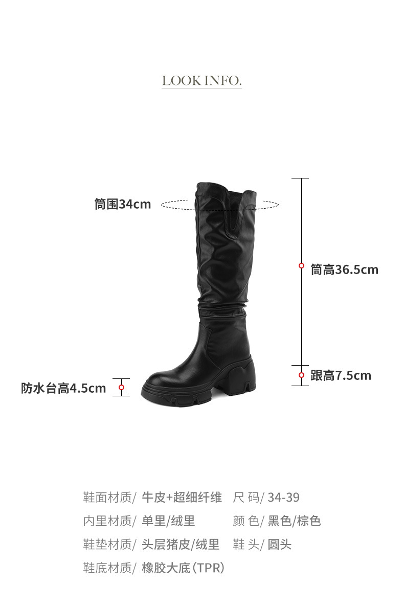 두꺼운 밑창 하이힐 부츠 여성용 정품 가죽 머핀 무릎 길이 부츠 2024 새로운 겨울 작은 하이힐 나이트 부츠스토어 가기