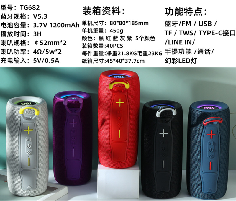 국경 간 TG682 블루투스 스피커 플러그인 카드 휴대용 오디오 블루투스 무거운 서브 우퍼 tws 블루투스 오디오 높은 색상 값스토어 가기