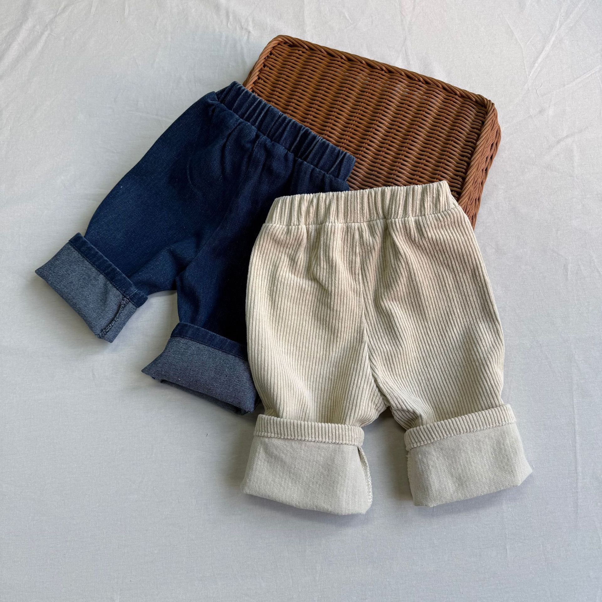 한국 스타일 Ins 느슨한 청바지 코듀로이 바지 아기 소년 소녀를위한 봄 및 가을 투포켓 캐주얼 올 매치 어린이