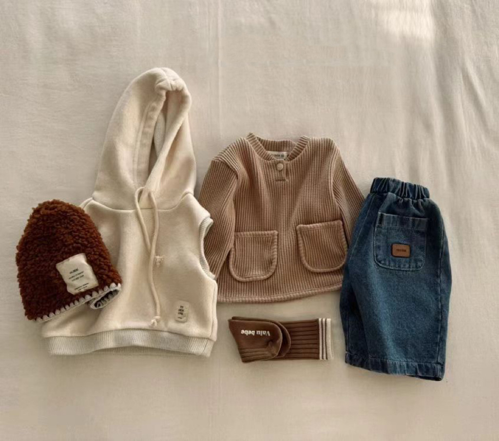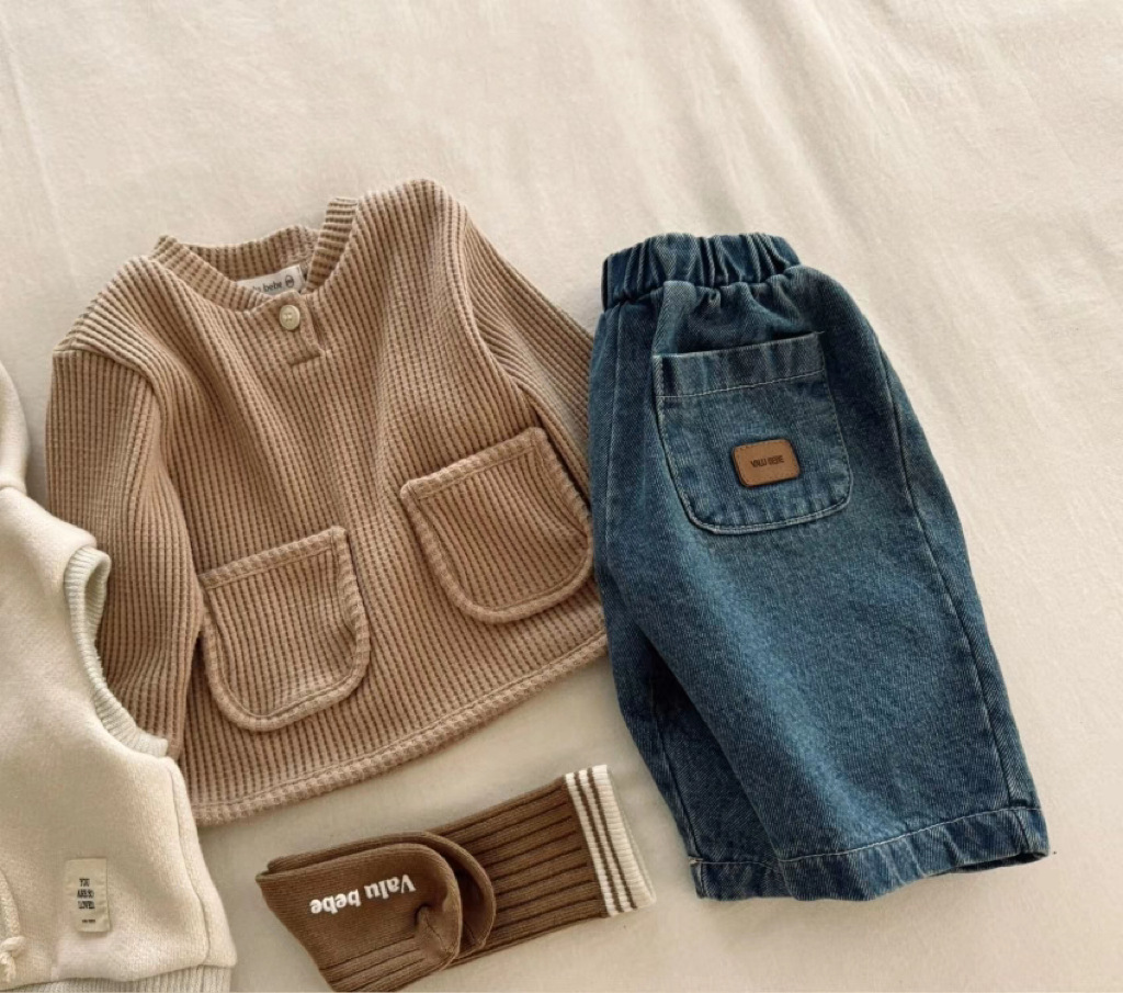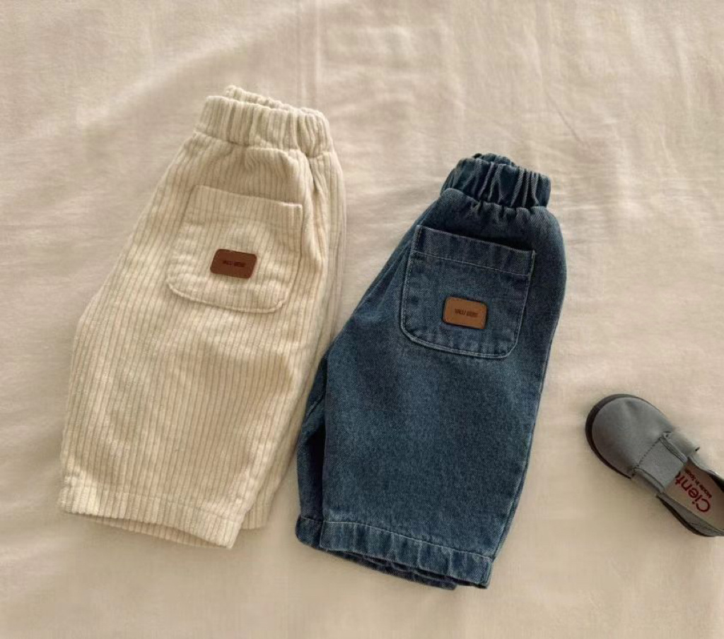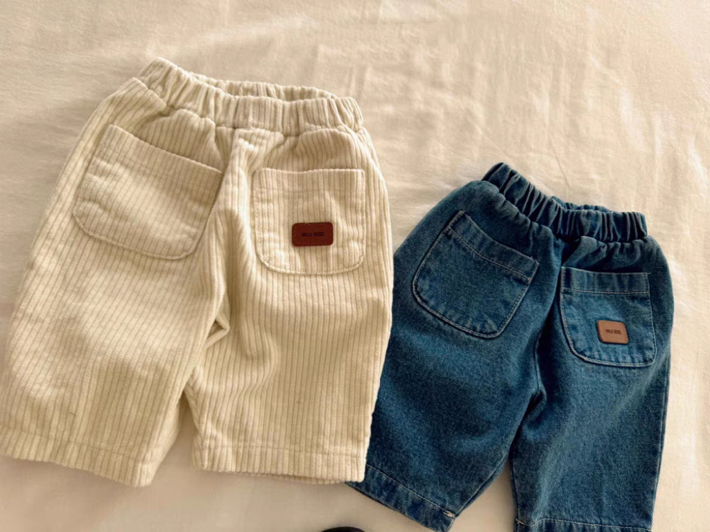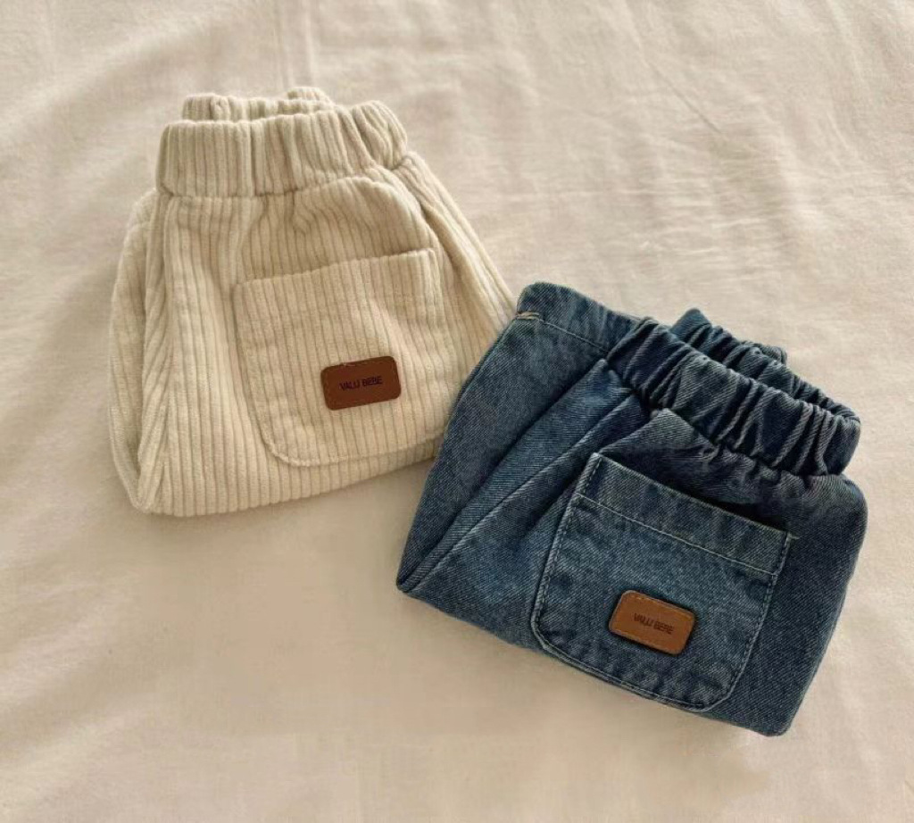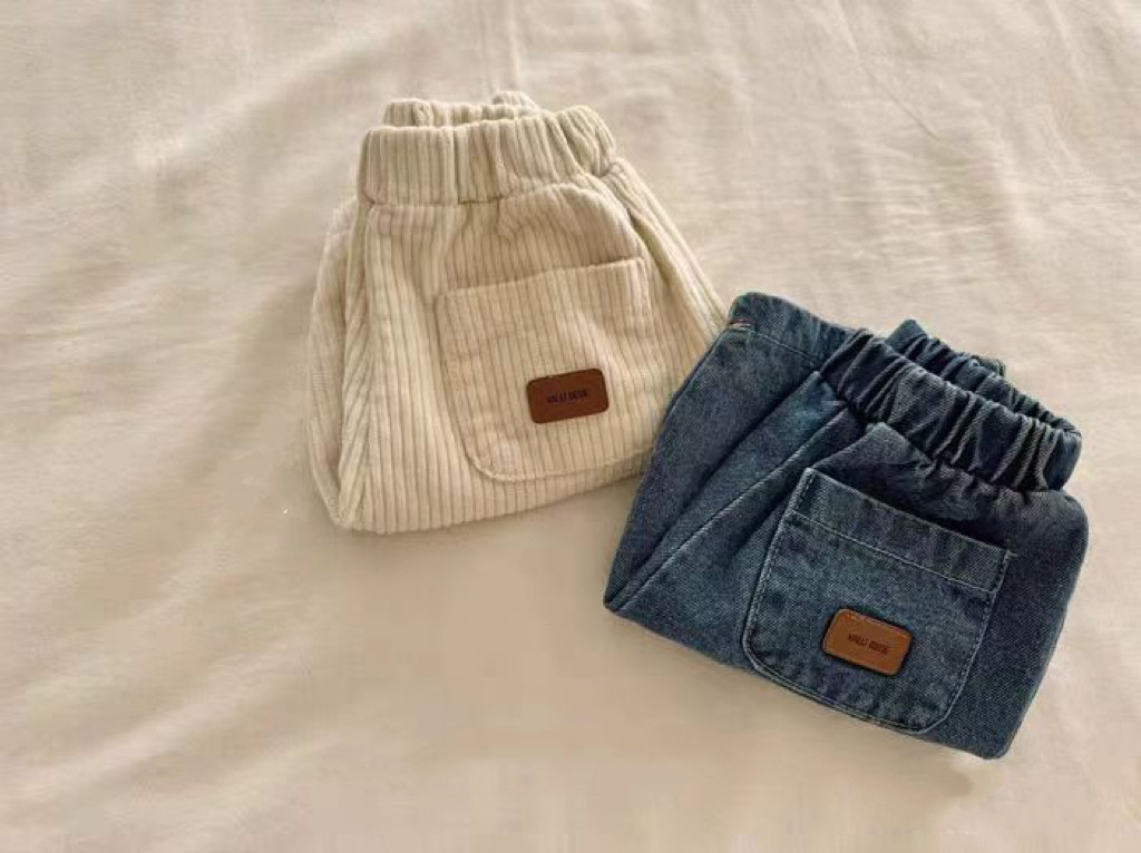 한국 스타일 Ins 느슨한 청바지 코듀로이 바지 아기 소년 소녀를위한 봄 및 가을 투포켓 캐주얼 올 매치 어린이스토어 가기