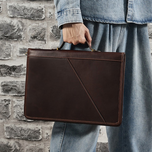 牛皮手提公文包斜挎包男复古通勤单肩电脑包真皮商务手提包男士