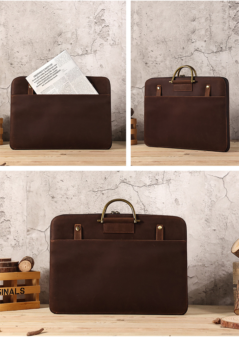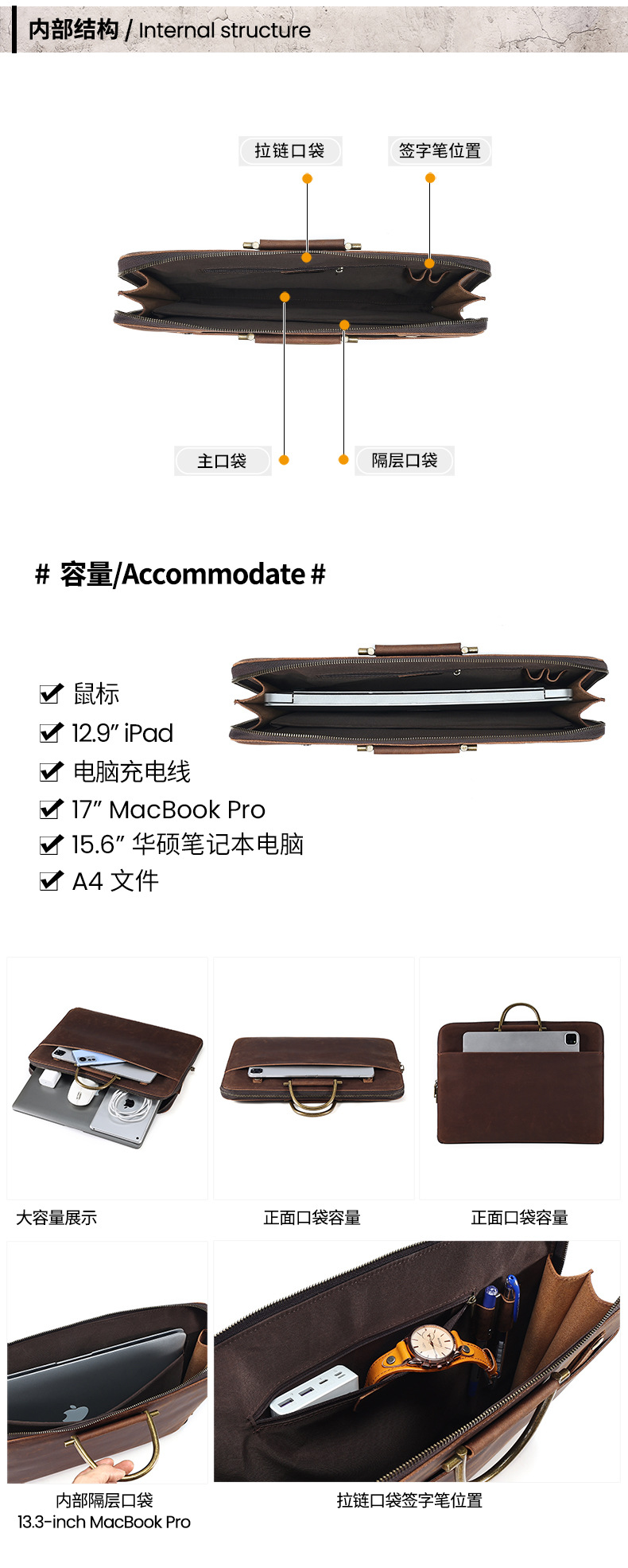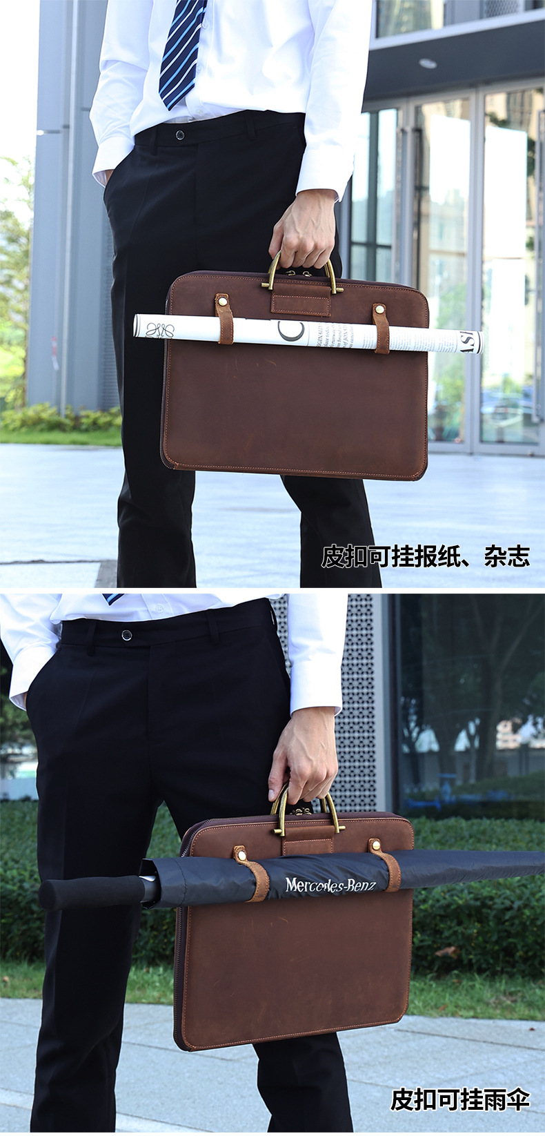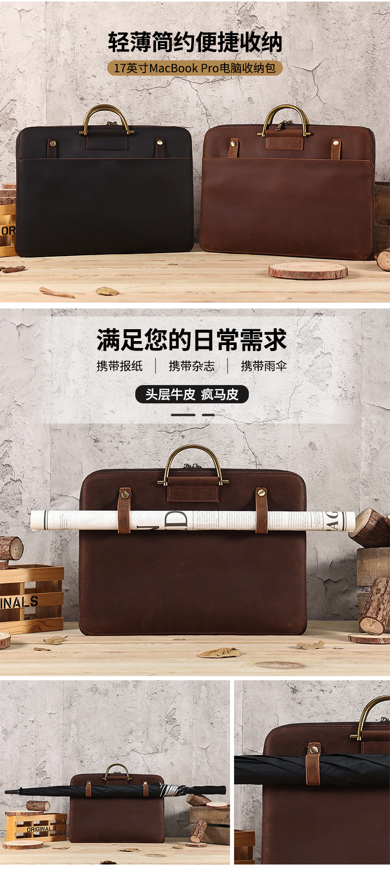 크레이지 호스 가죽 비즈니스 태블릿 노트북 가방 다기능 경량 다기능 천연 가죽 남성 서류 가방스토어 가기
