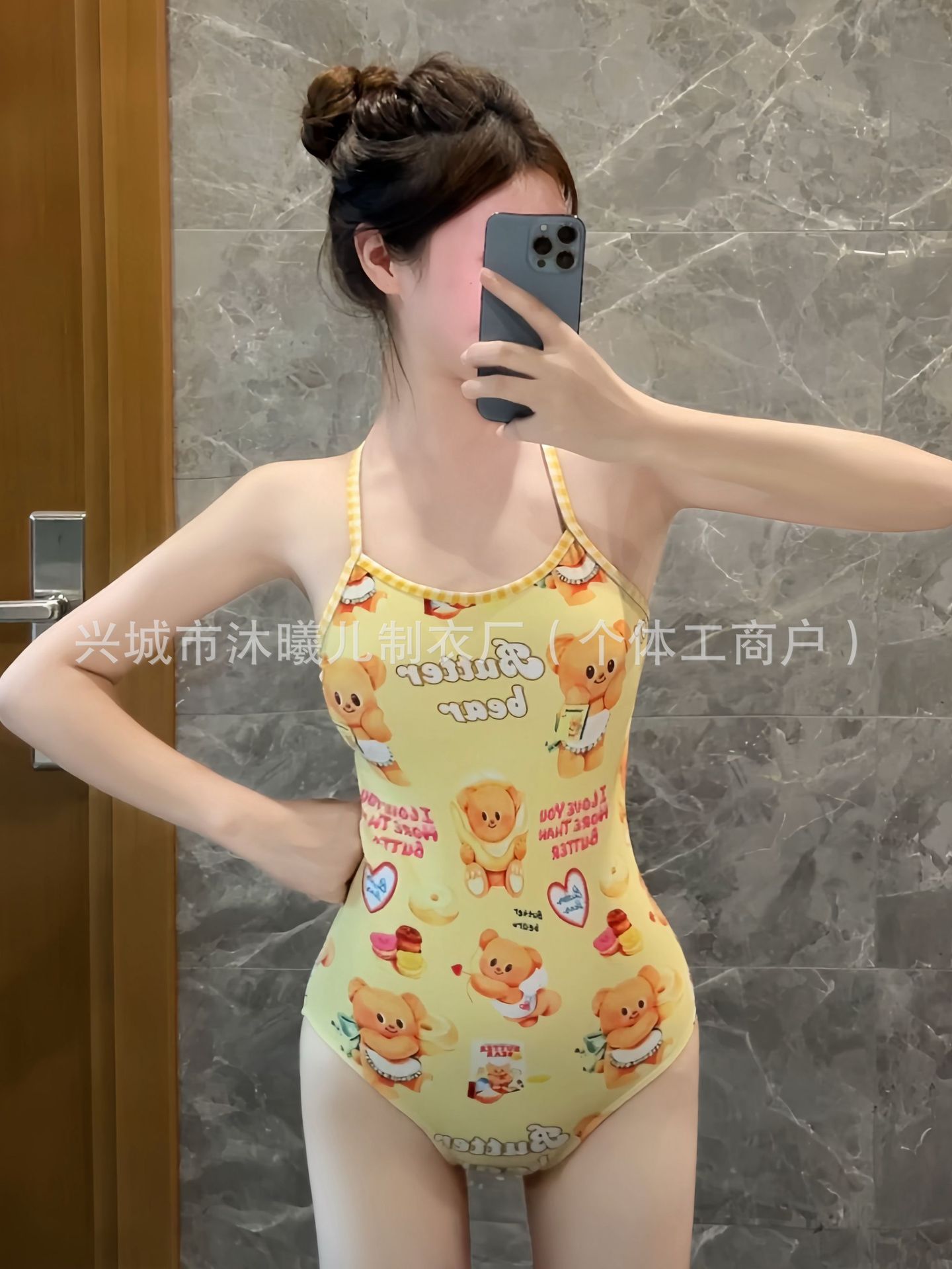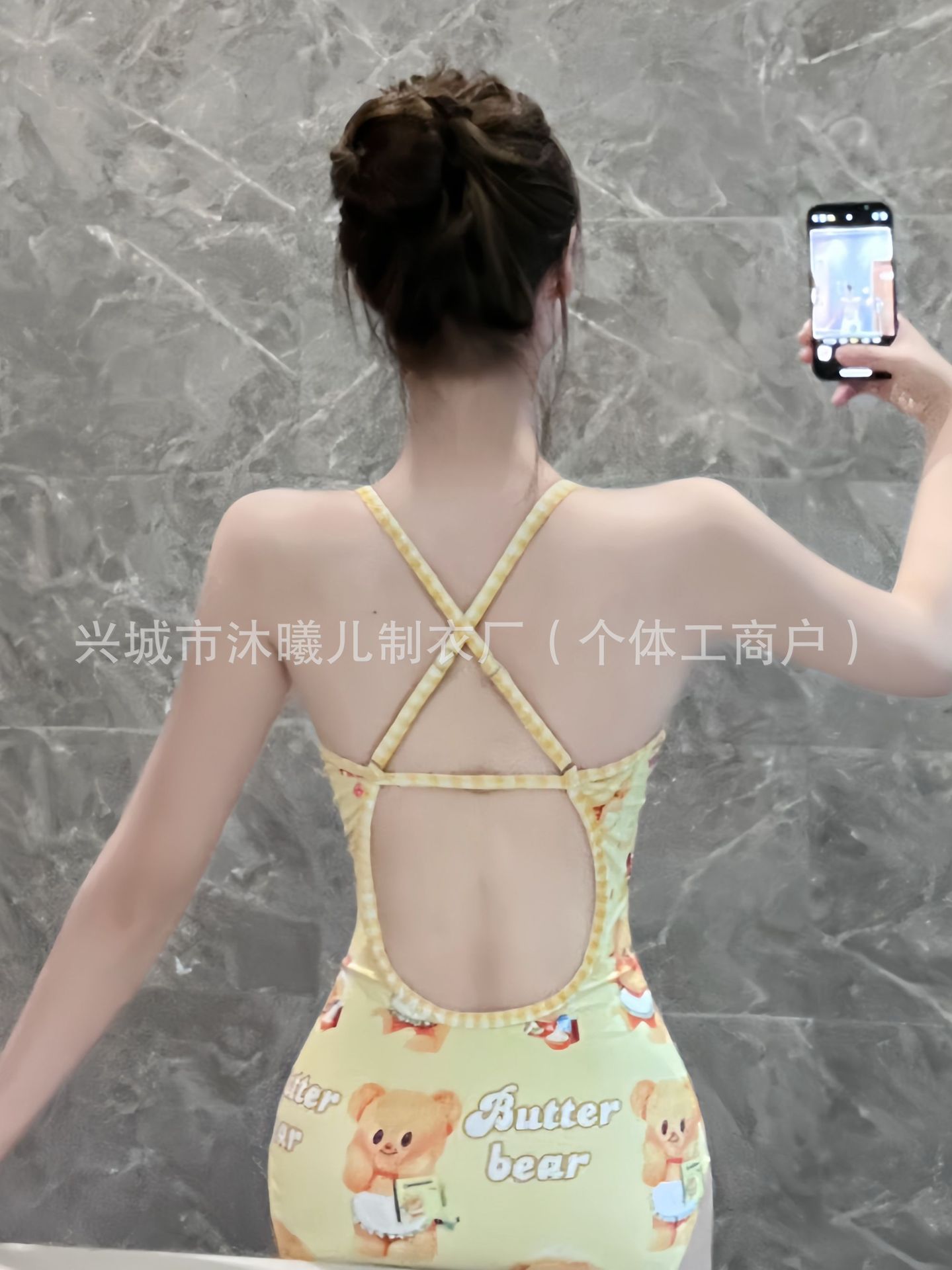 새로운 도매 수영장 특별 훈련 수영복 여성 백리스 스트랩 곰 인쇄 온천 레이싱 수영복