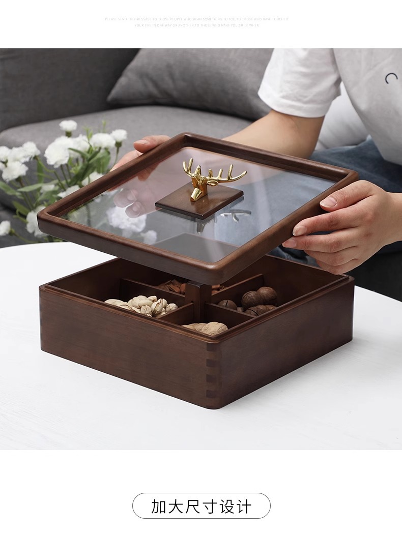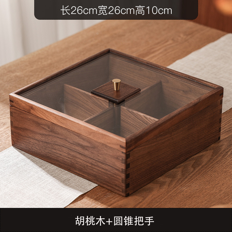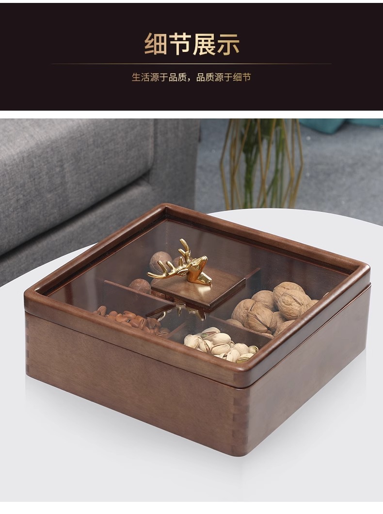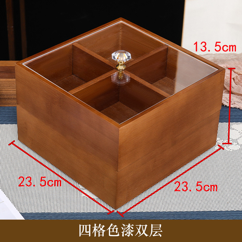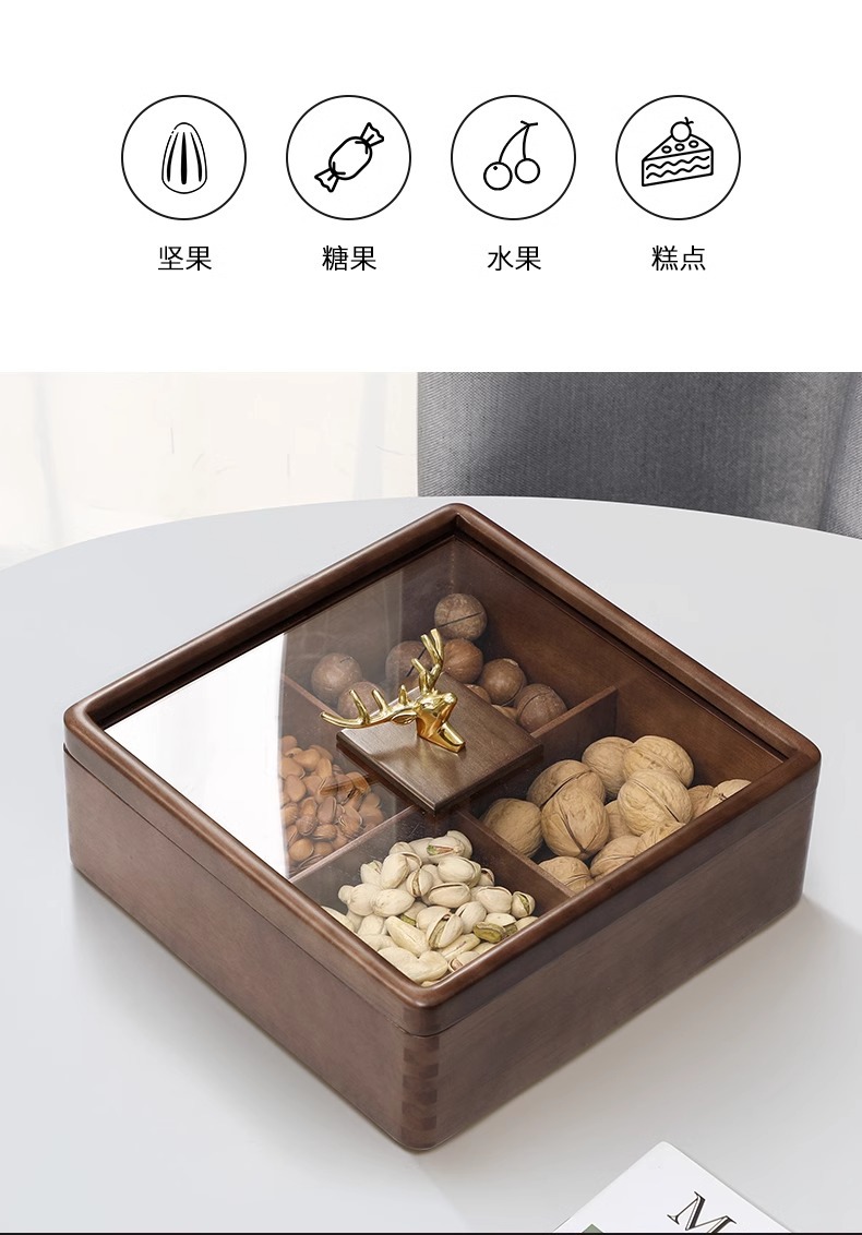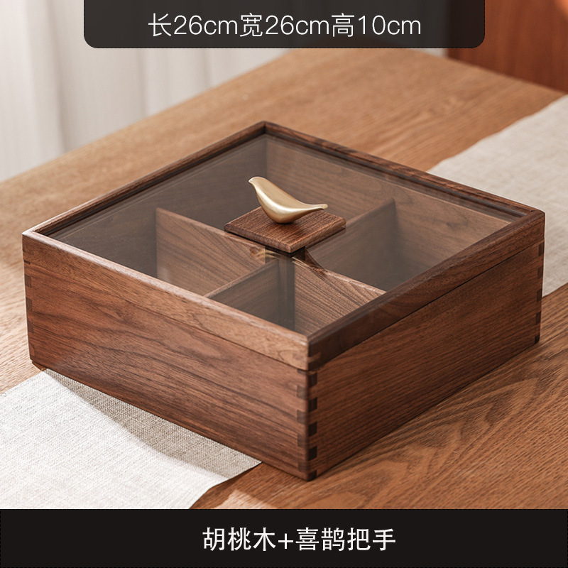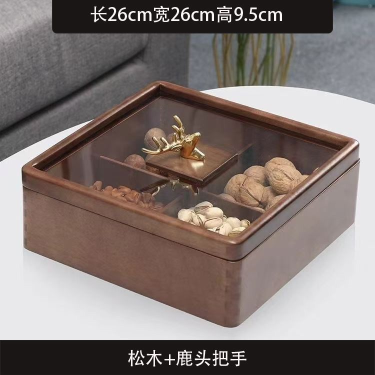 새로운 중국 스타일의 솔리드 우드 말린 과일 상자 가구 거실 사탕 상자 뚜껑 분할 스낵 너트 상자 멜론 씨드 스토리지 트레이 우드