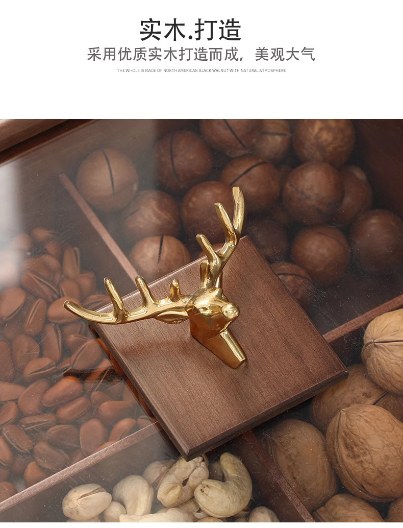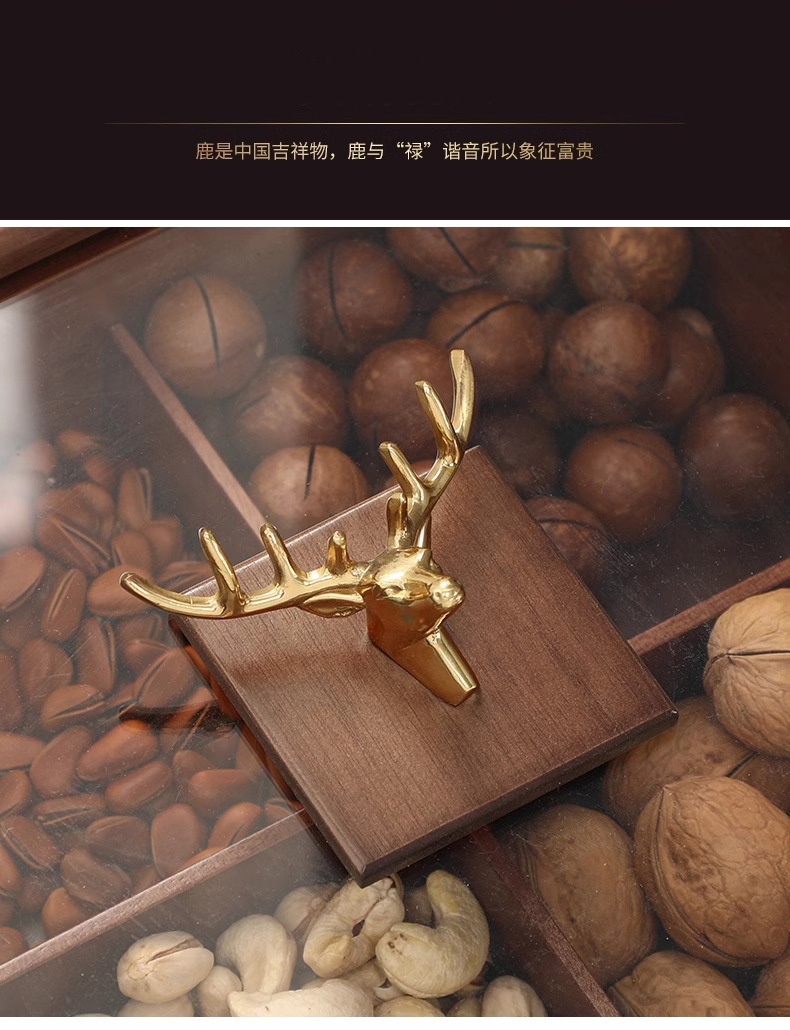 • 4칸으로 구성된 소나무 말린 과일 상자 - 사슴 머리 손잡이