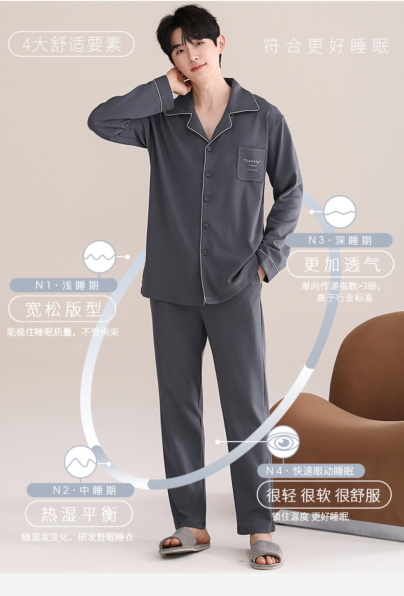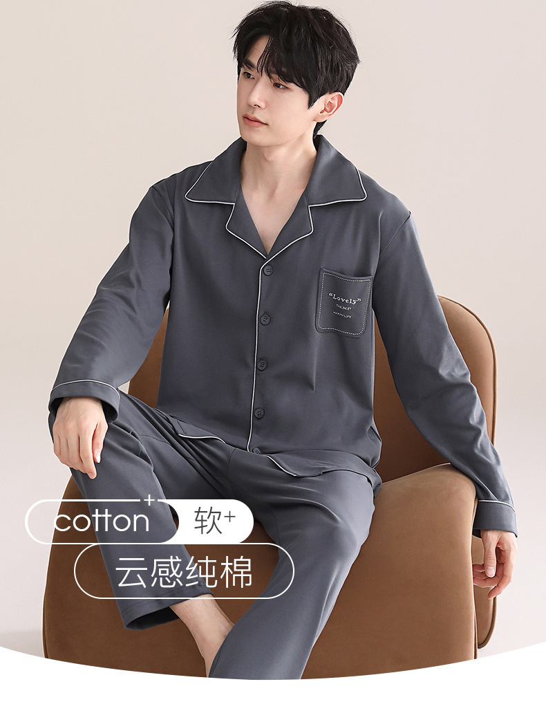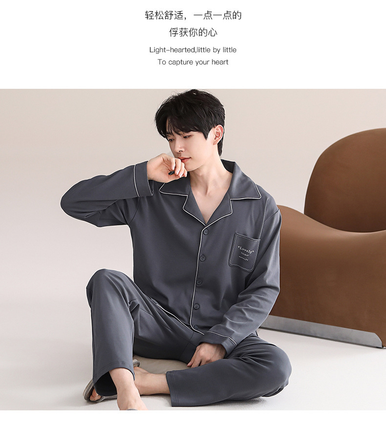 잠옷 남자의 봄과 가을면 긴 소매 홈 옷 남자의 가을 얇은 십대들은 캐주얼 세트 입을 수 있습니다스토어 가기