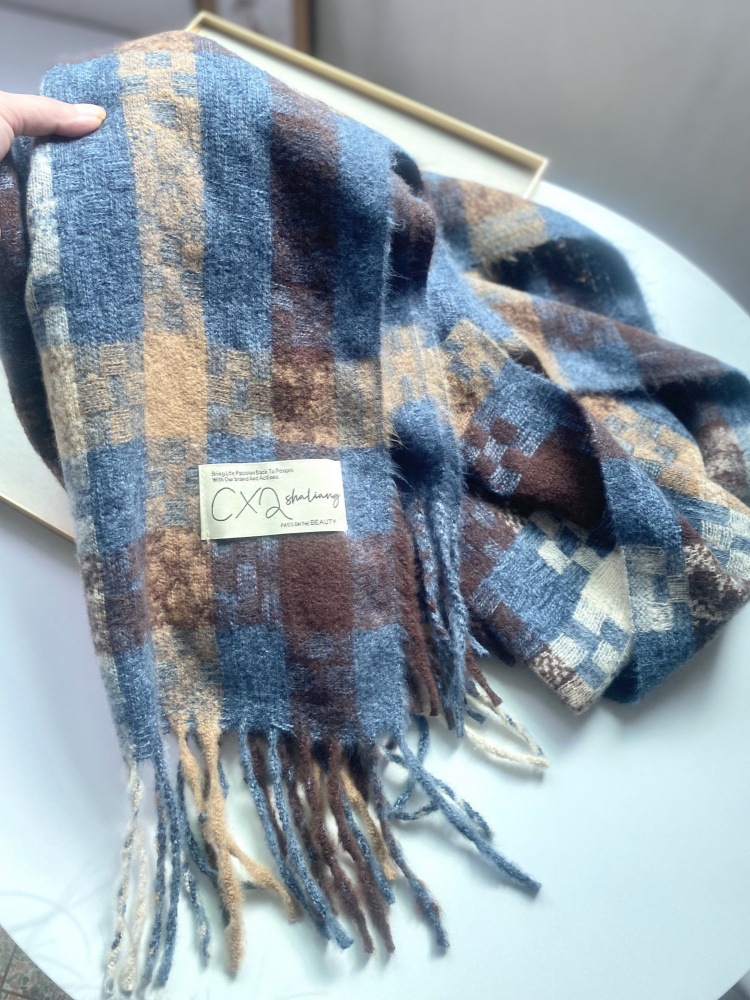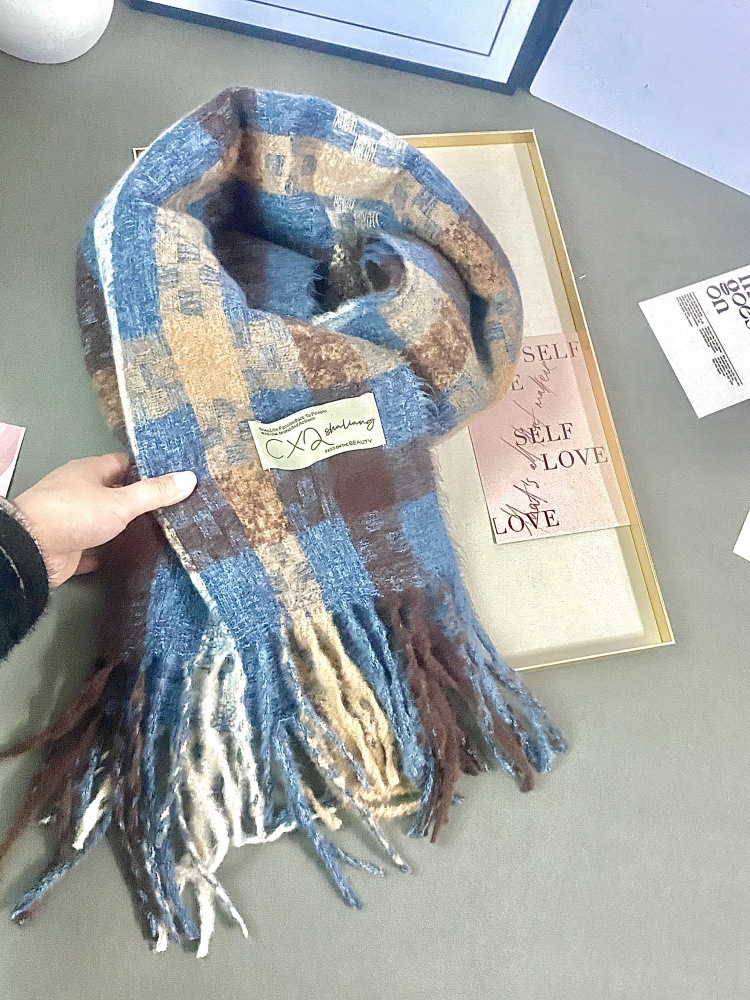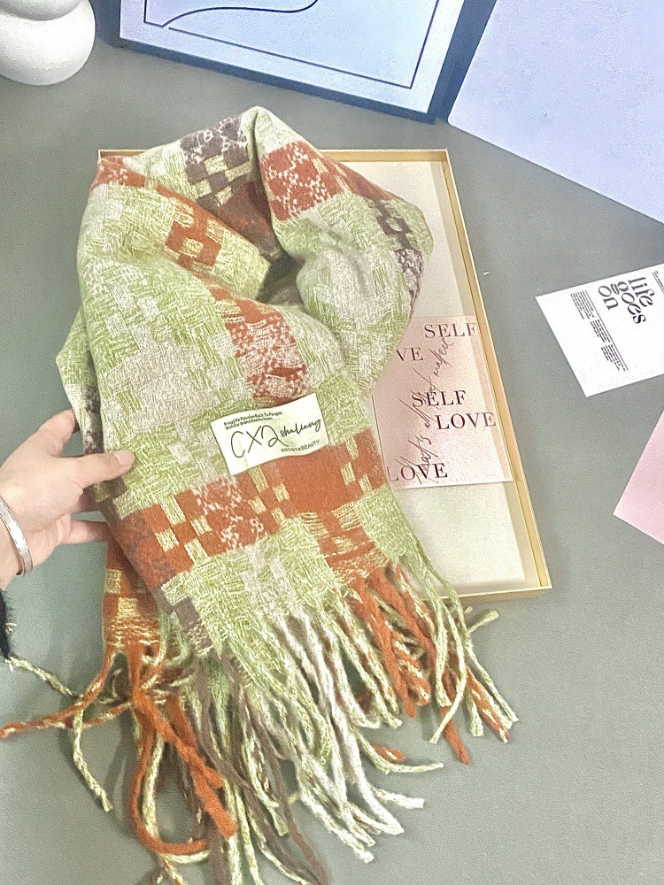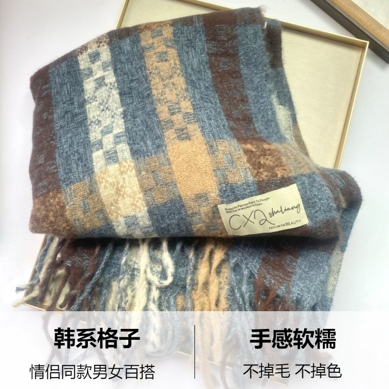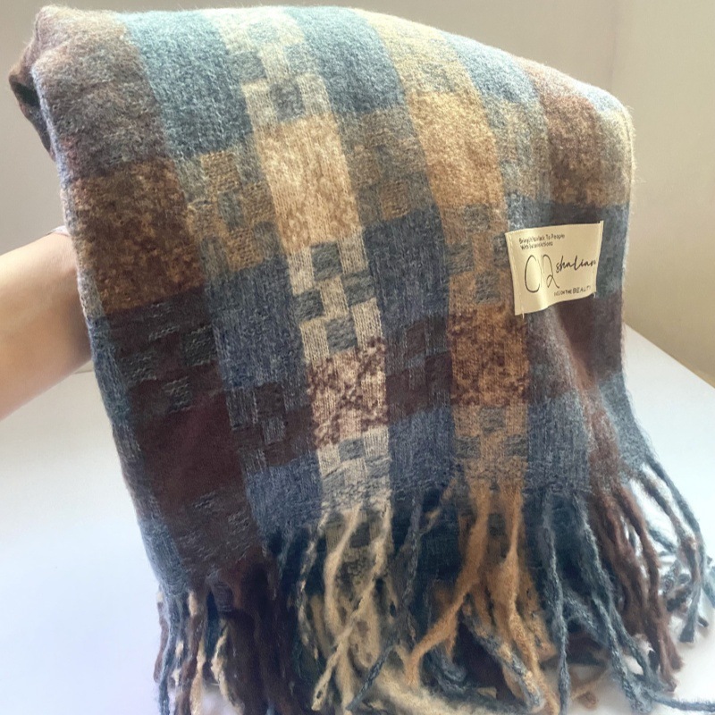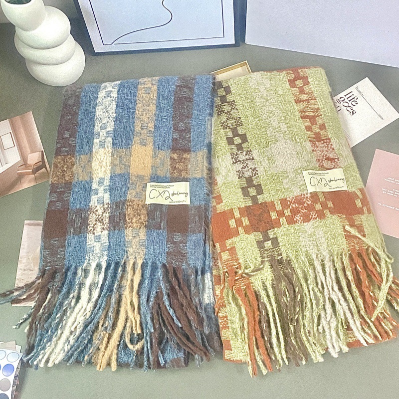 2024 한국 고급 격자 무늬 술 스카프 여성 INS 따뜻한 두꺼운 긴 목 가을과 겨울 커플 목도리스토어 가기