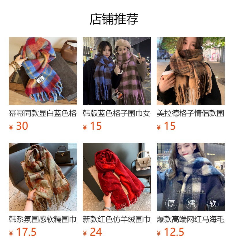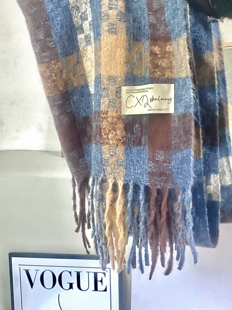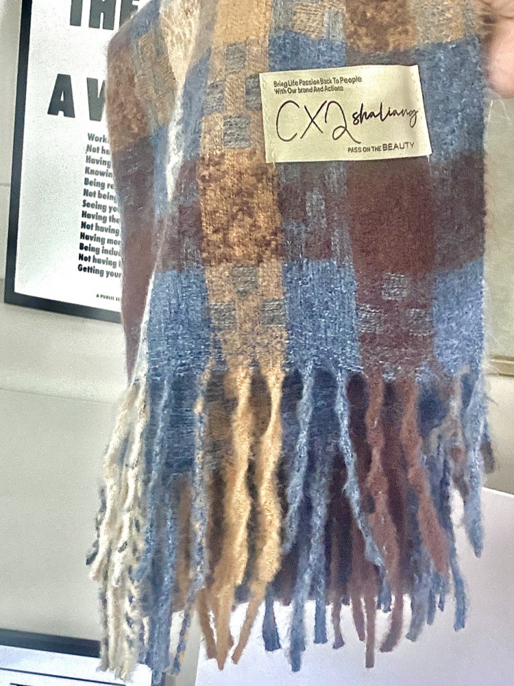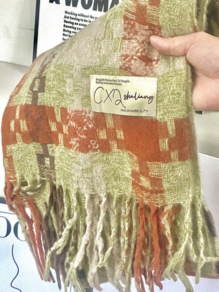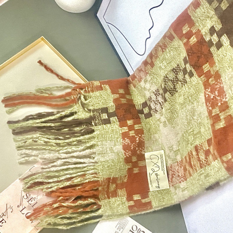 2024 한국 고급 격자 무늬 술 스카프 여성 INS 따뜻한 두꺼운 긴 목 가을과 겨울 커플 목도리스토어 가기