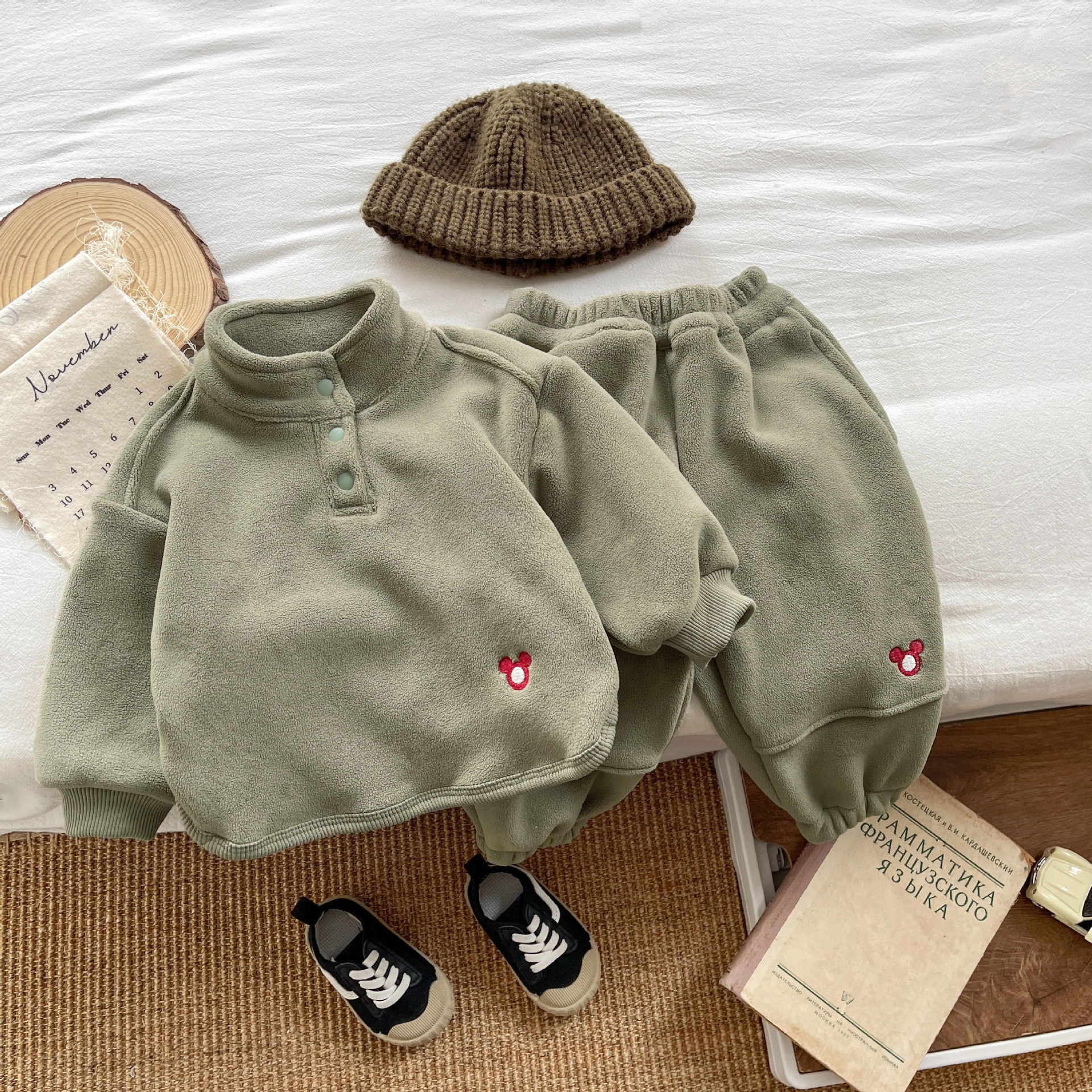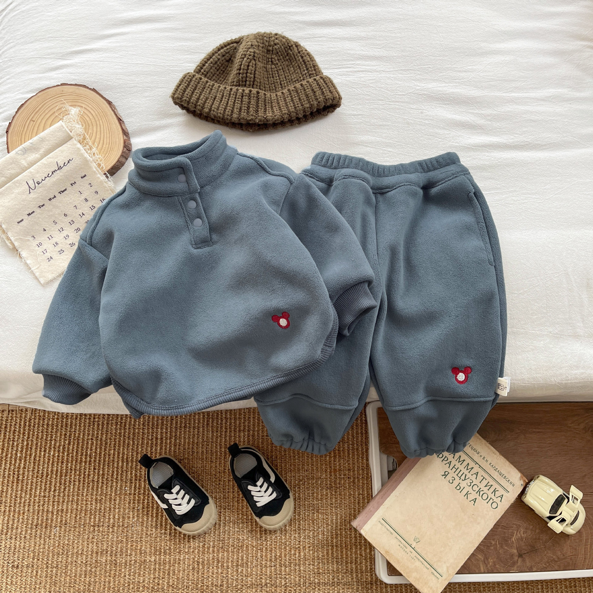 아기의 겨울 올림픽 곡물 벨벳 세트 스타일러스 어린이 스포츠 캐주얼 스웨트 바지 따뜻한 어린이 2 조각 유행 세트