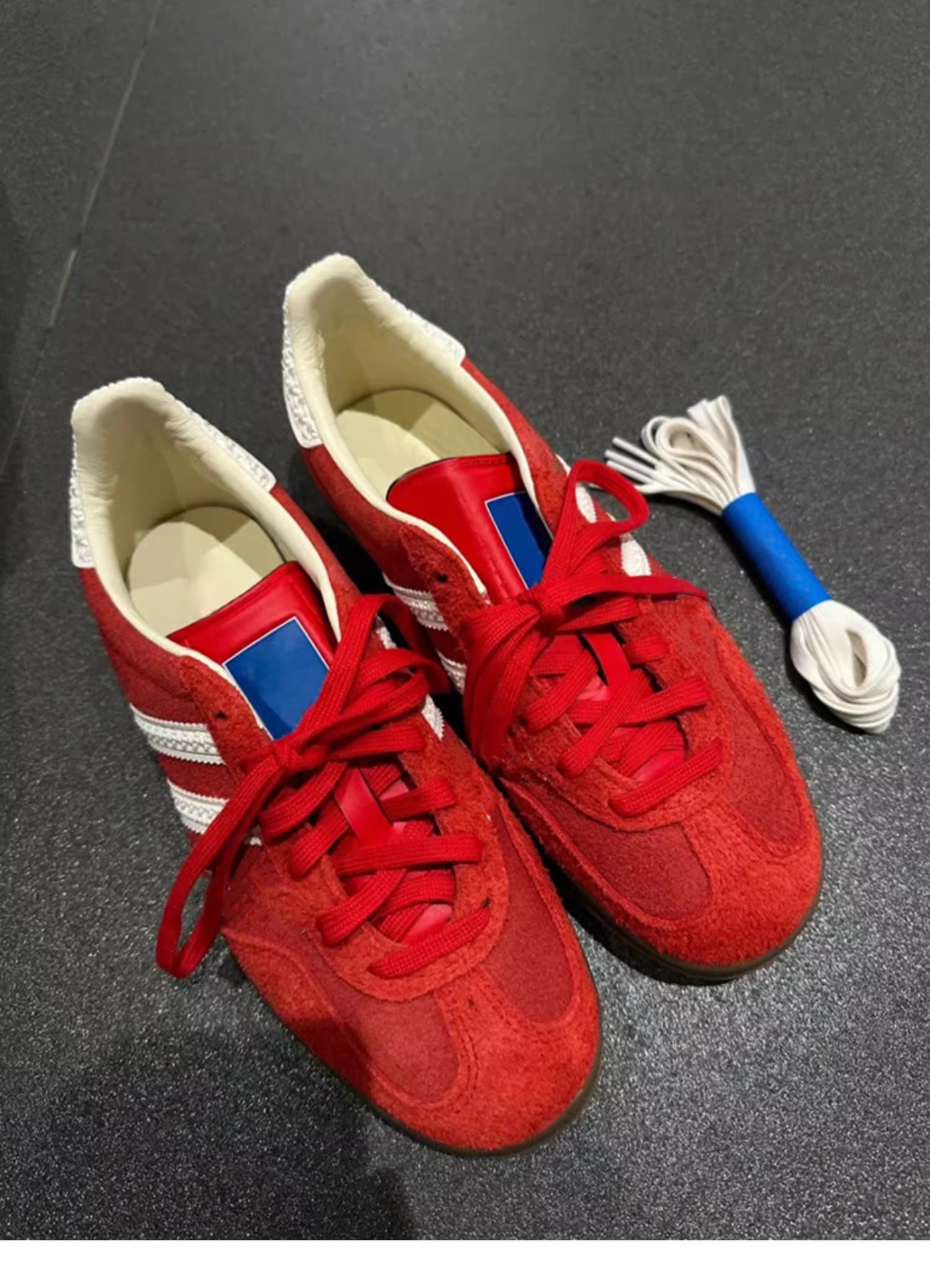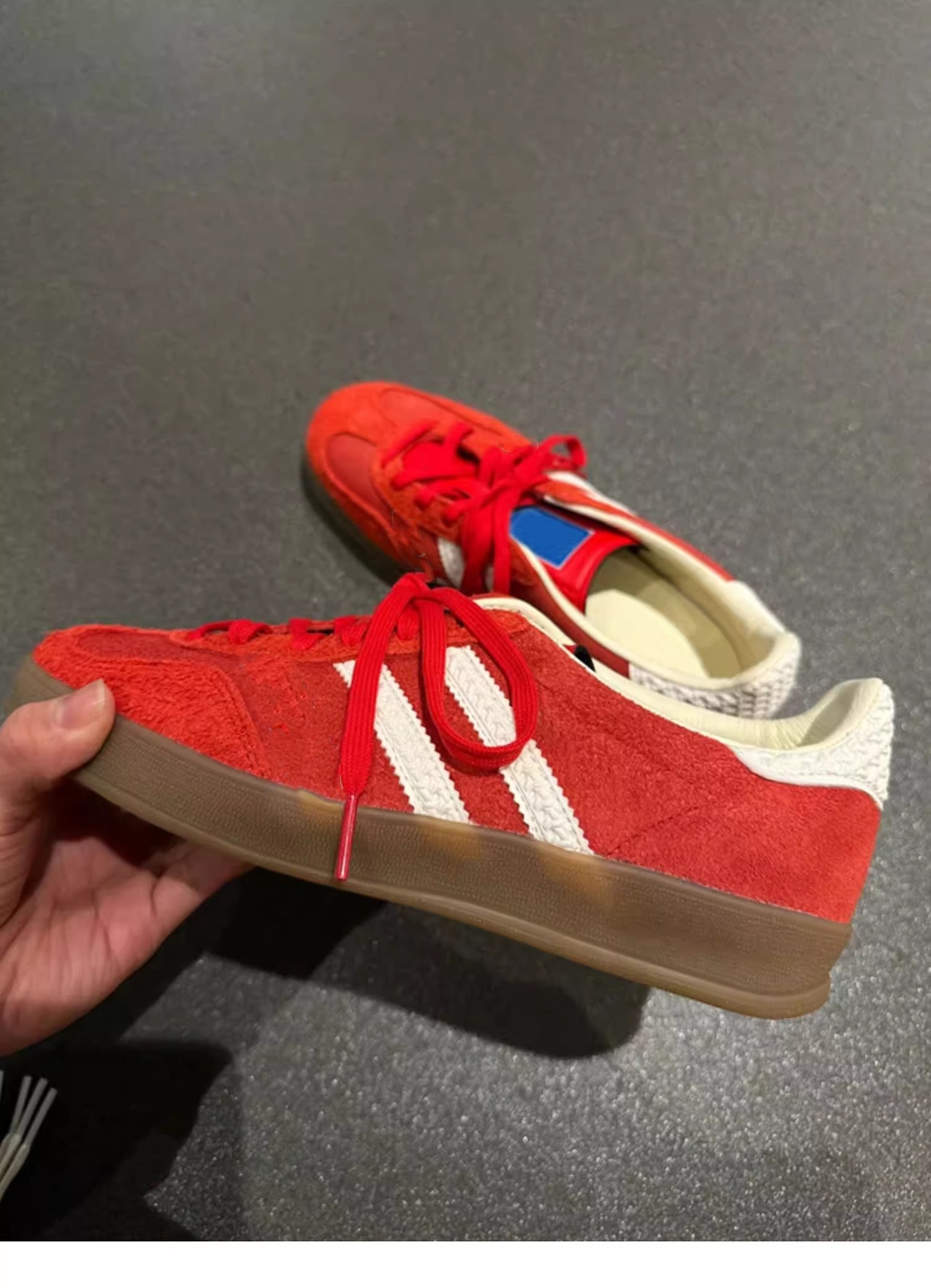 정품 가죽 레트로 레드 독일 훈련 신발 여성의 2024 새로운 평면 캐주얼 스포츠 스티칭 포레스트 검프 신발 여성을위한 올 매치 스케이트 신발스토어 가기