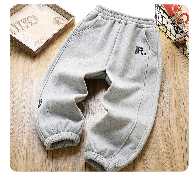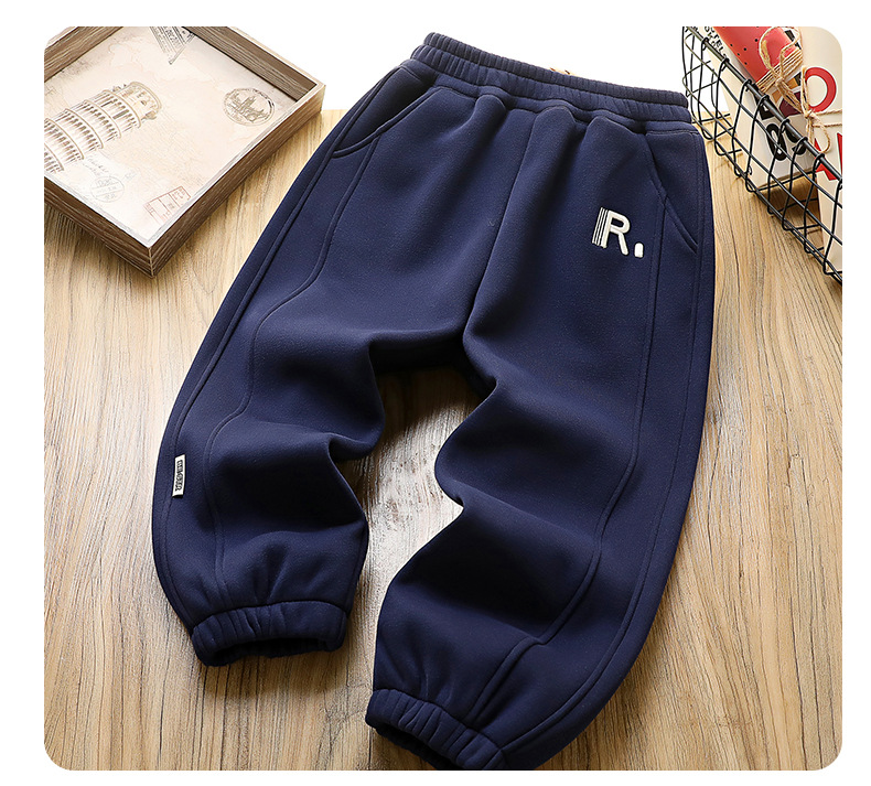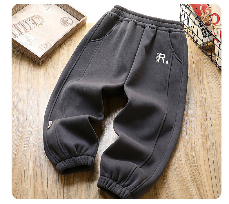 어린이 착용 소년 가을 및 겨울 바지 어린이 기모 바지 2024 겨울 큰 어린이와 소년을위한 새로운 유행 양털 바지