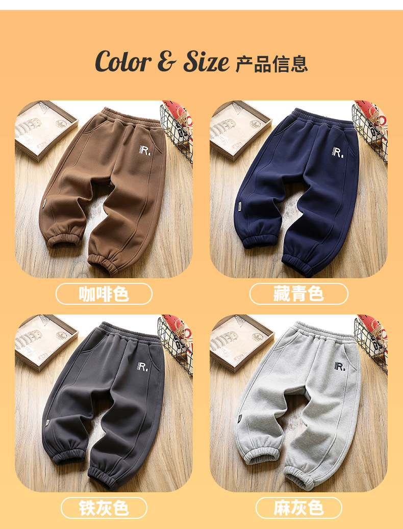 어린이 착용 소년 가을 및 겨울 바지 어린이 기모 바지 2024 겨울 큰 어린이와 소년을위한 새로운 유행 양털 바지스토어 가기
