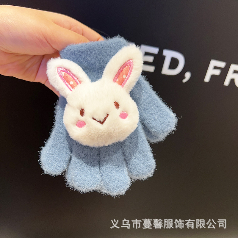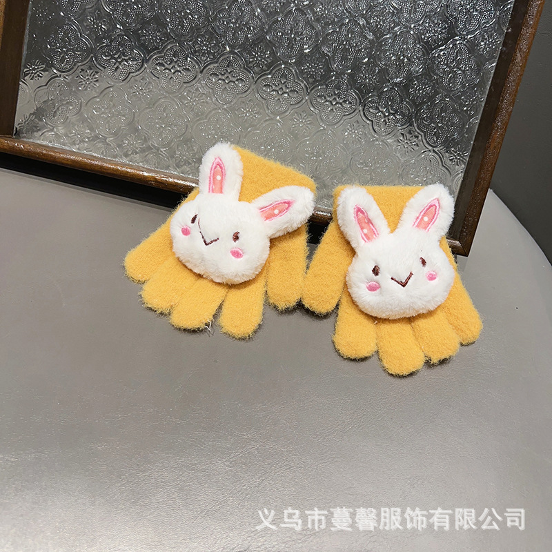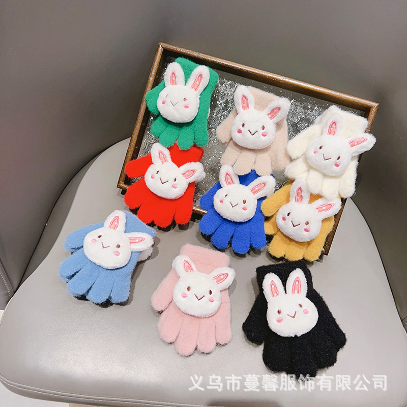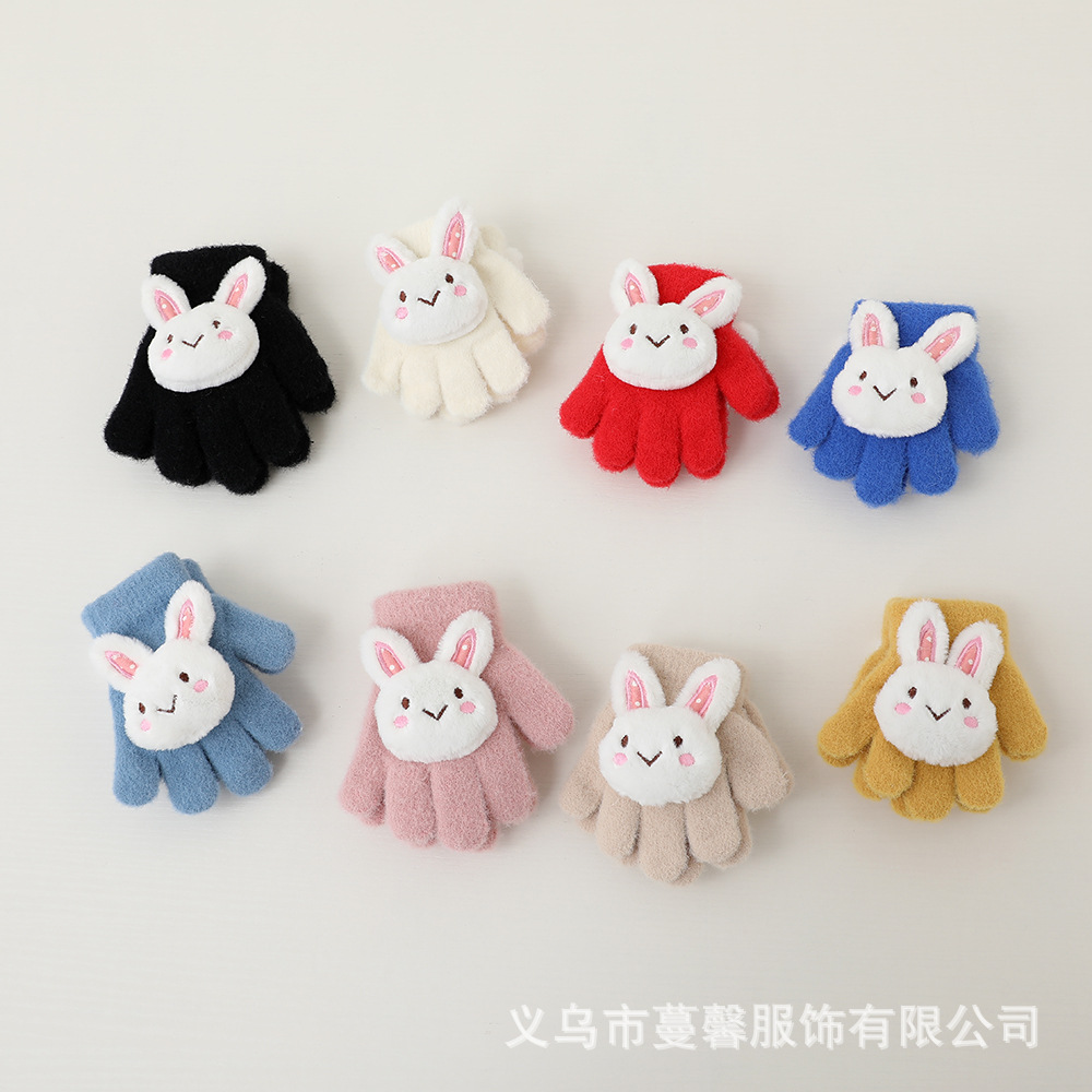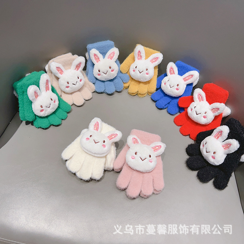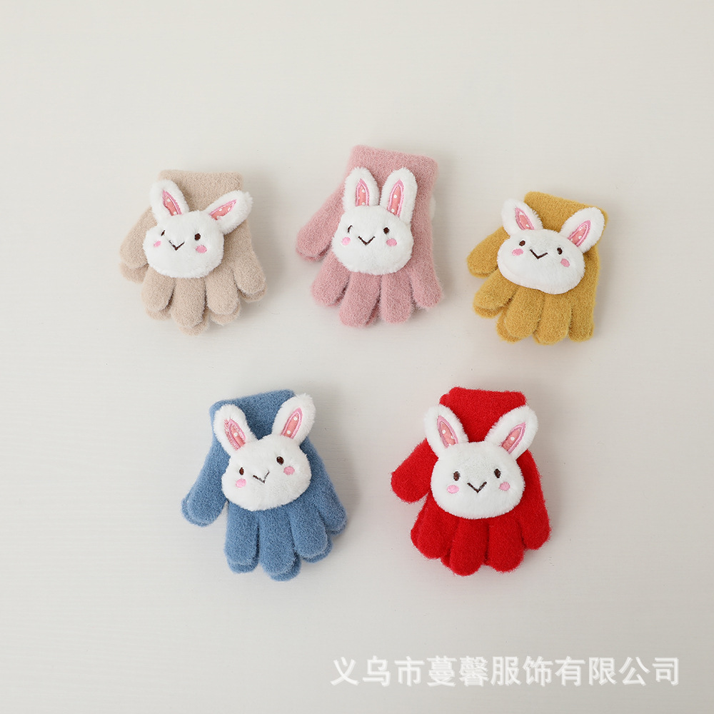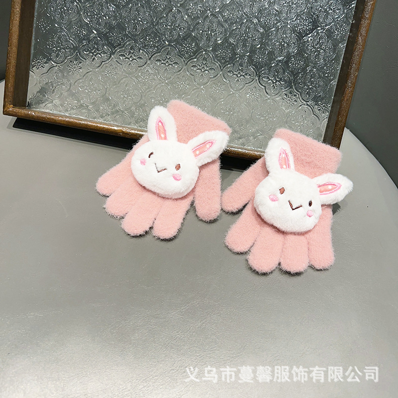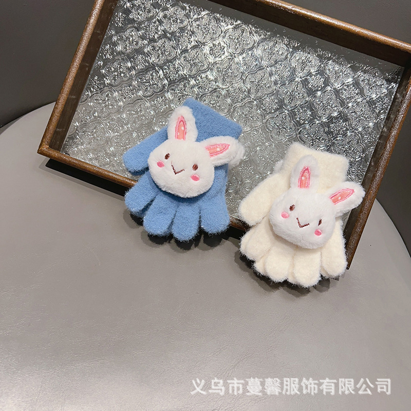 한국 어린이 장갑 겨울 2023 새로운 아기 만화 토끼 귀여운 따뜻한 손가락 니트 학생 장갑