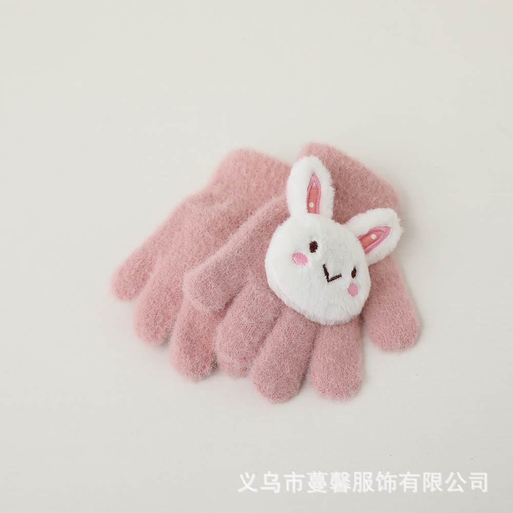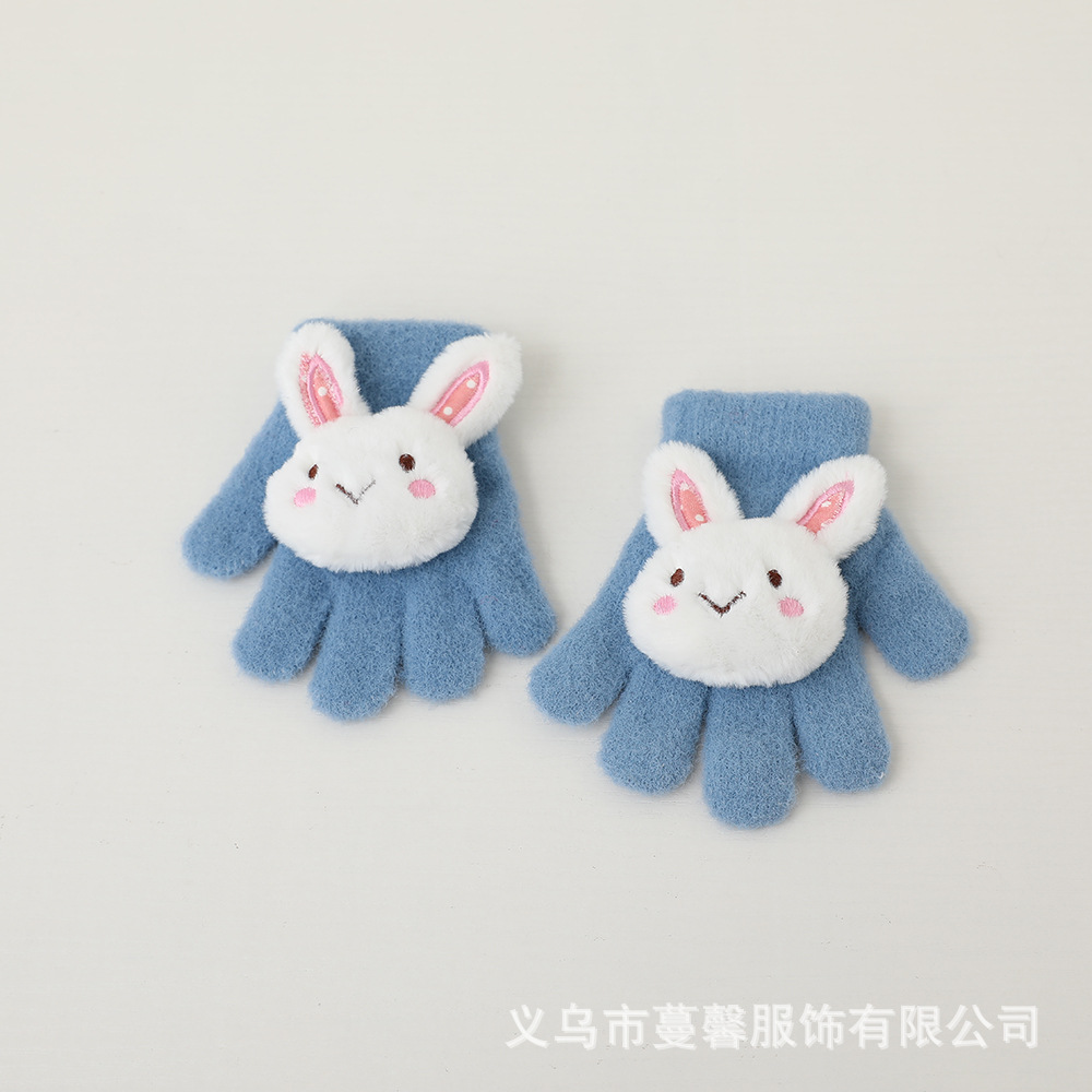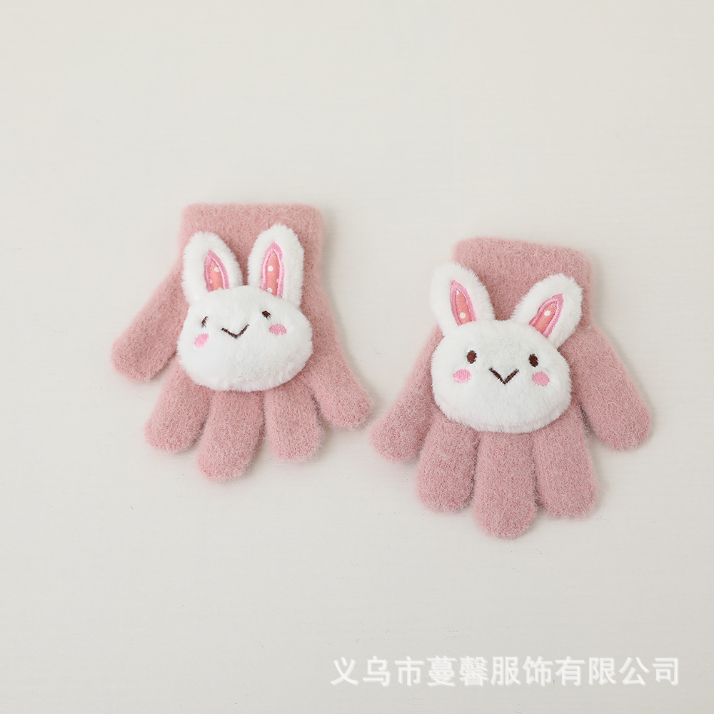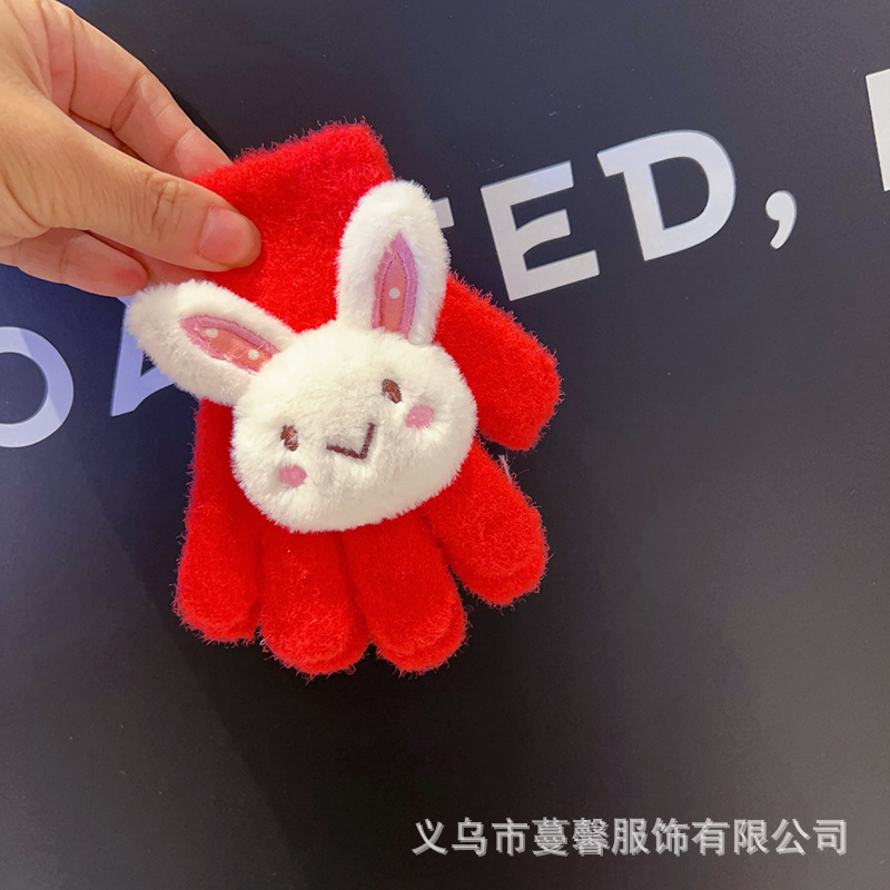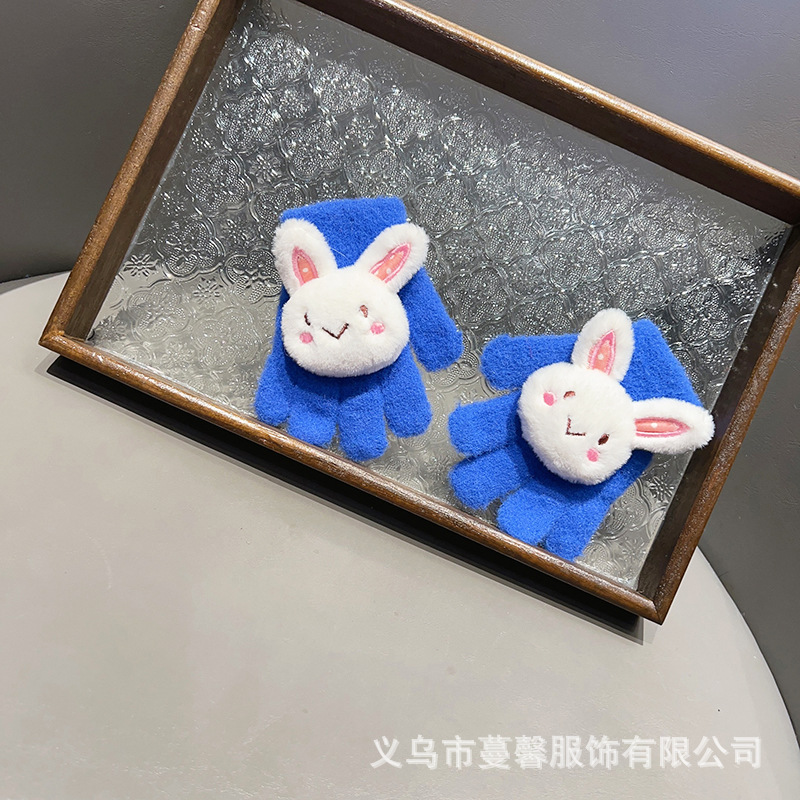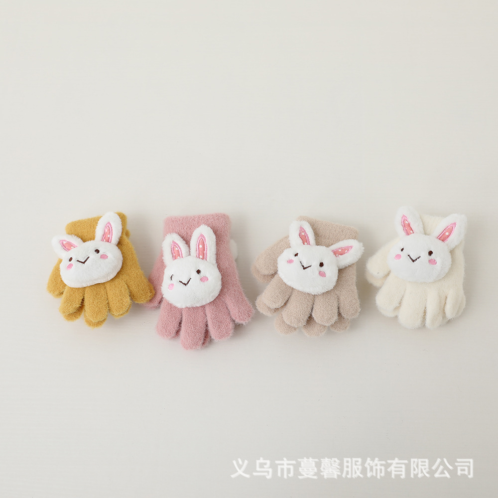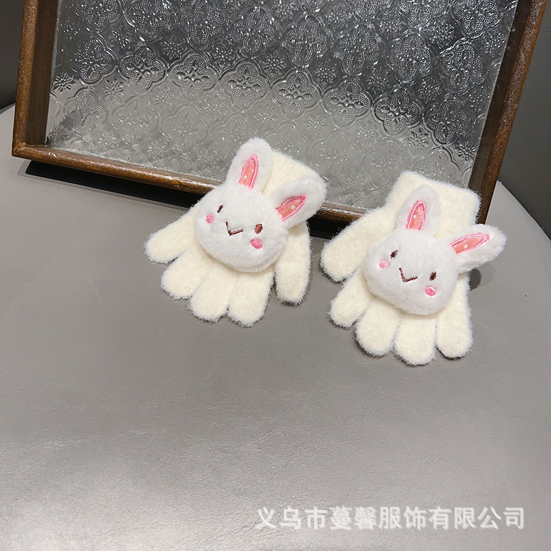 한국 어린이 장갑 겨울 2023 새로운 아기 만화 토끼 귀여운 따뜻한 손가락 니트 학생 장갑