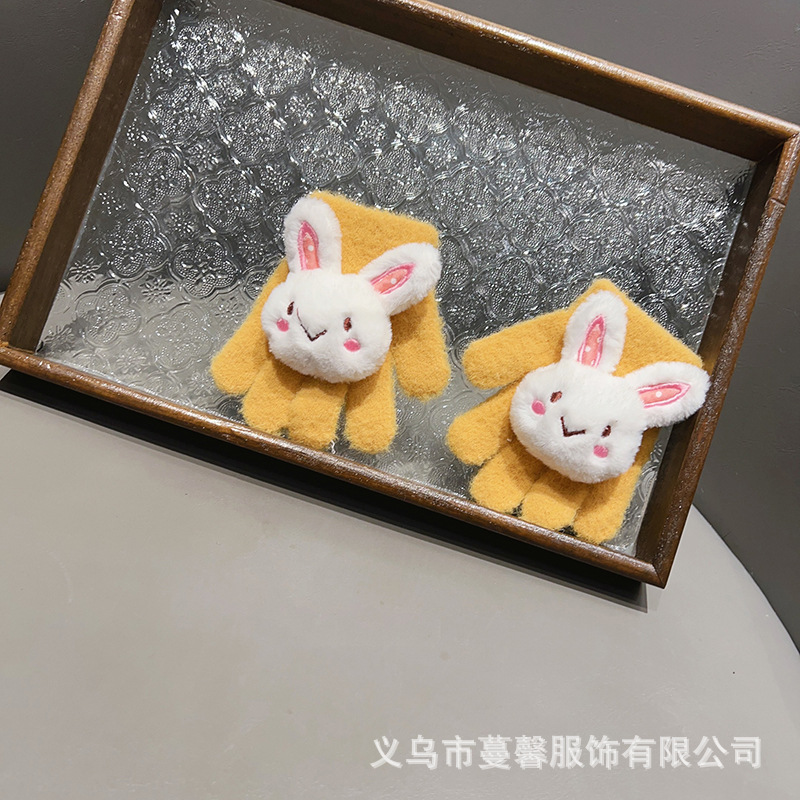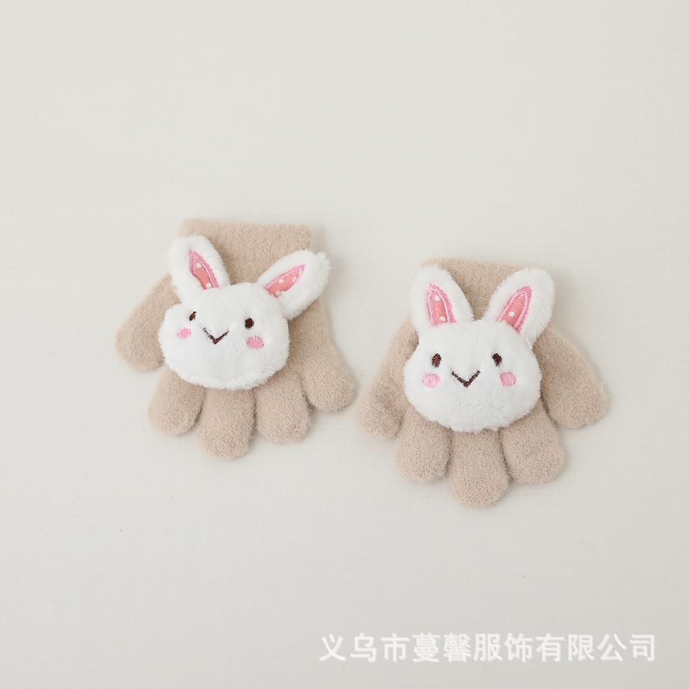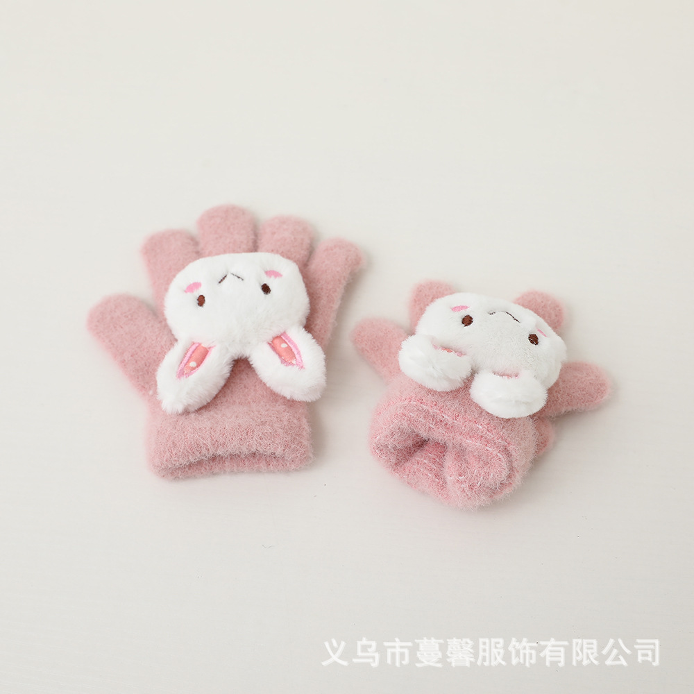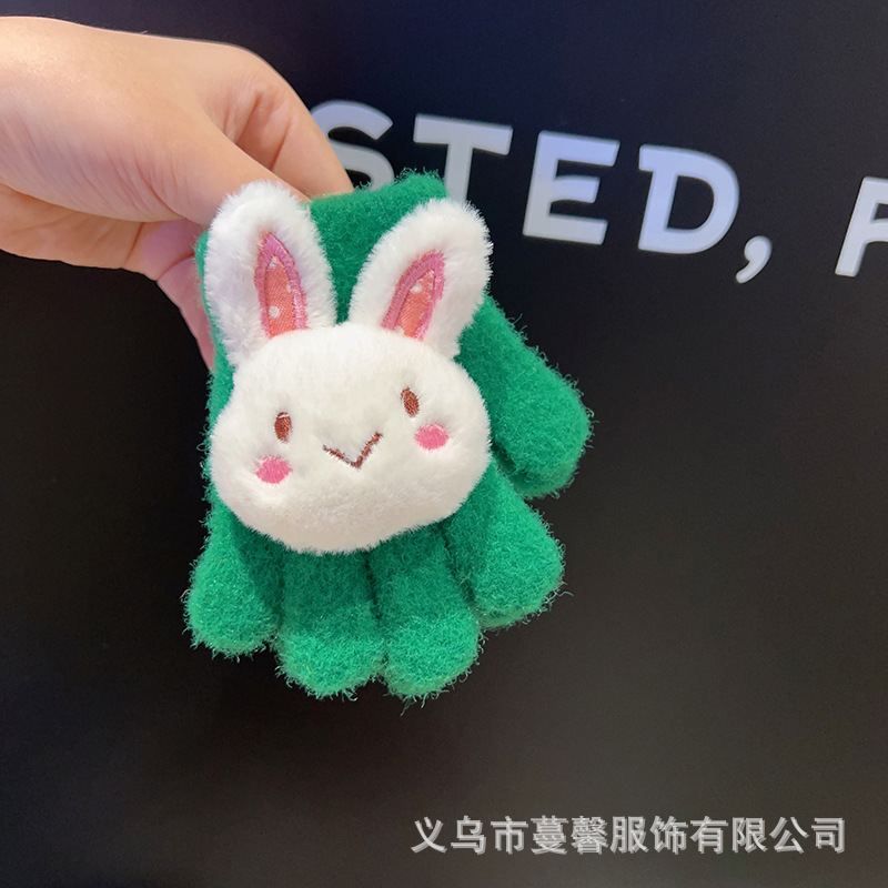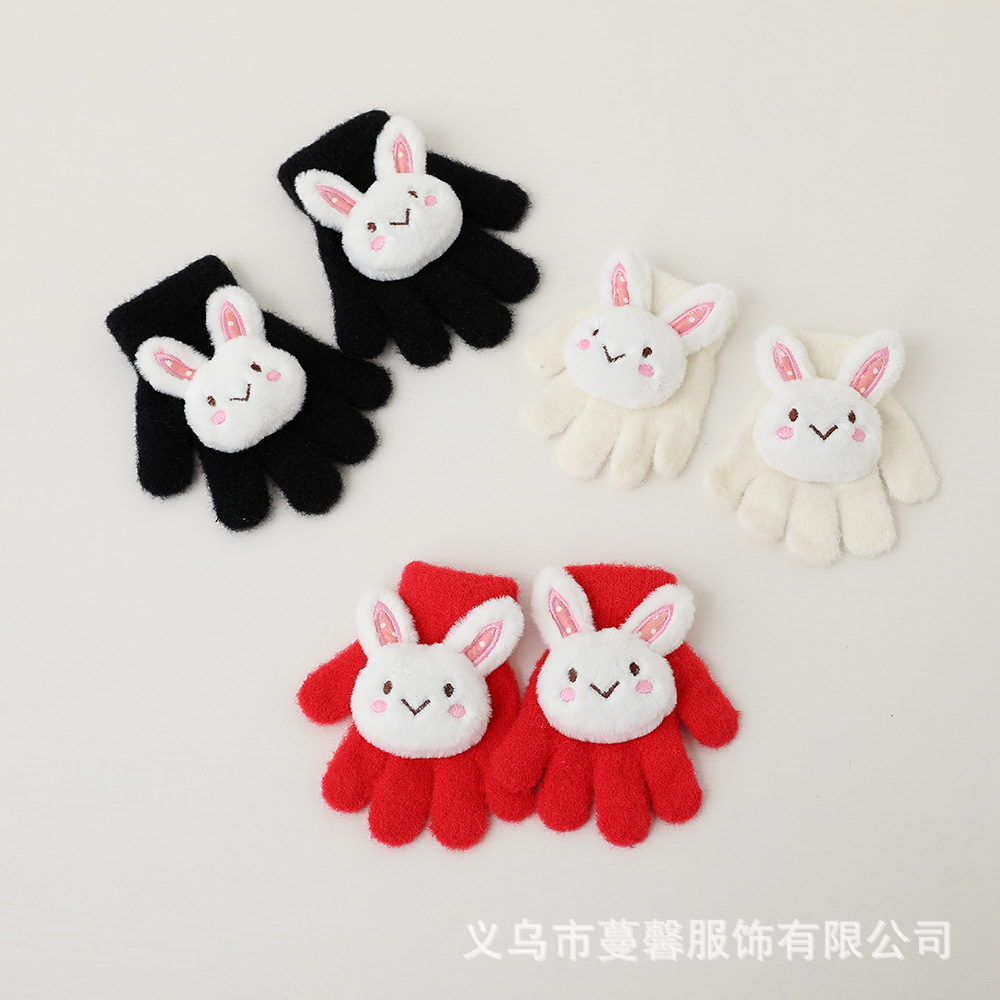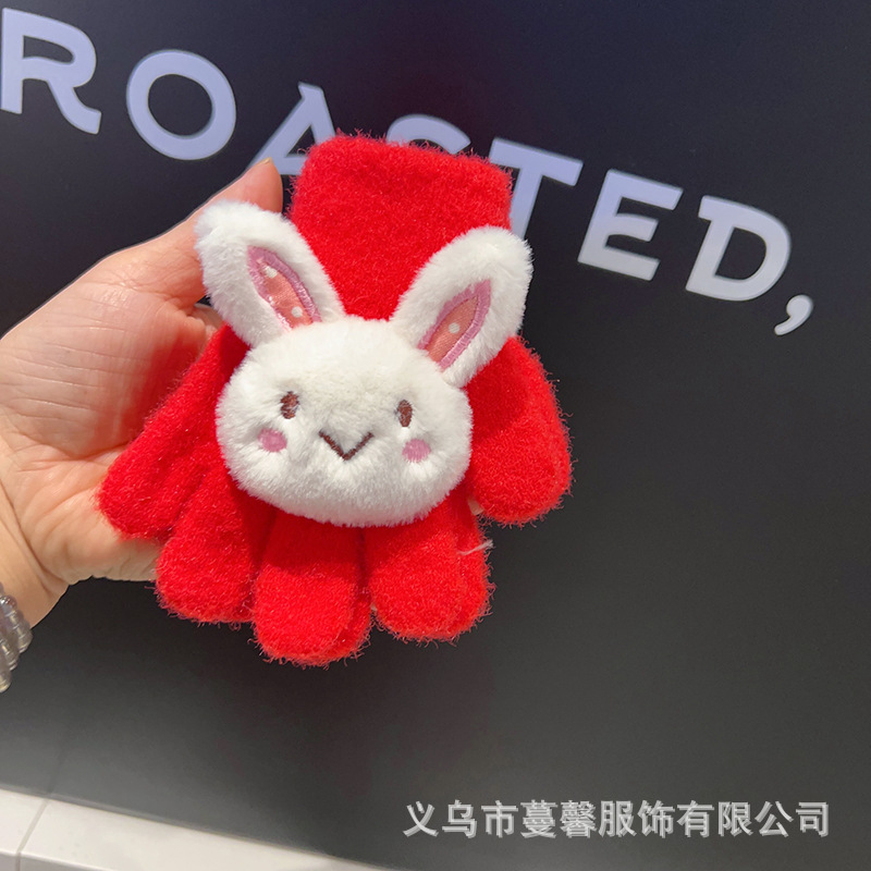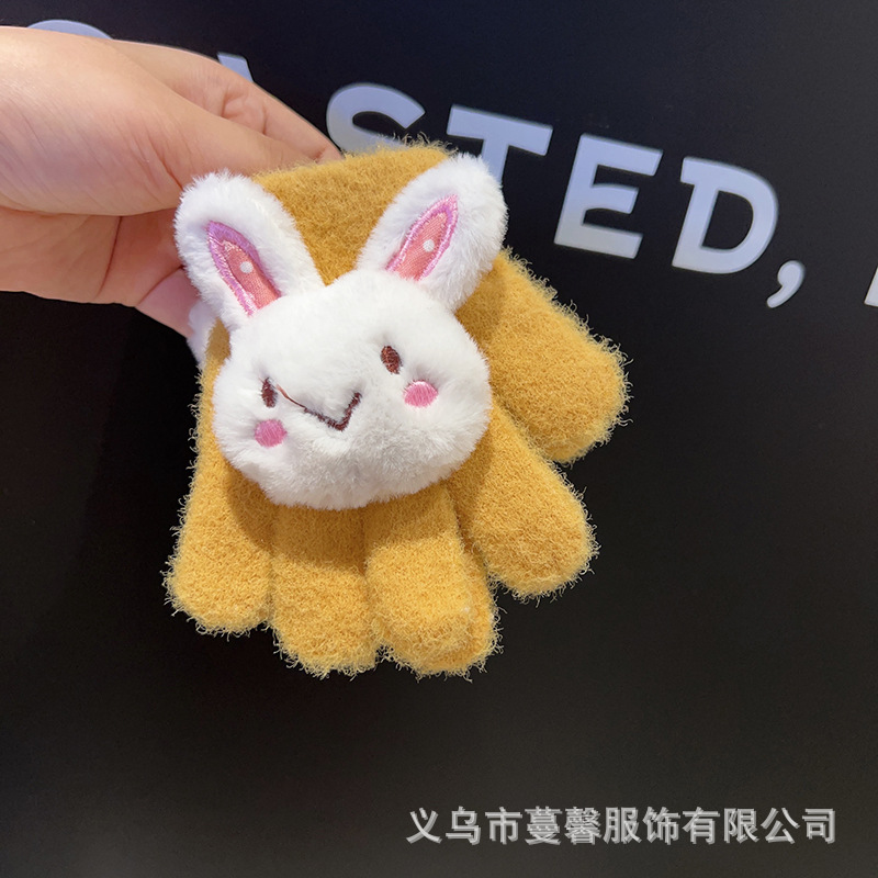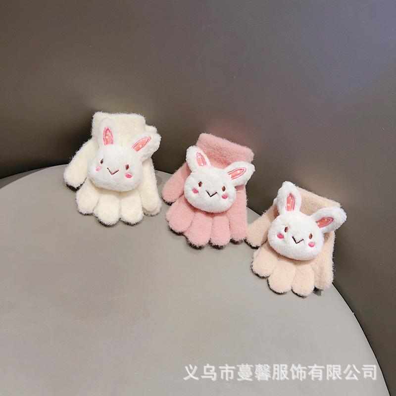 한국 어린이 장갑 겨울 2023 새로운 아기 만화 토끼 귀여운 따뜻한 손가락 니트 학생 장갑