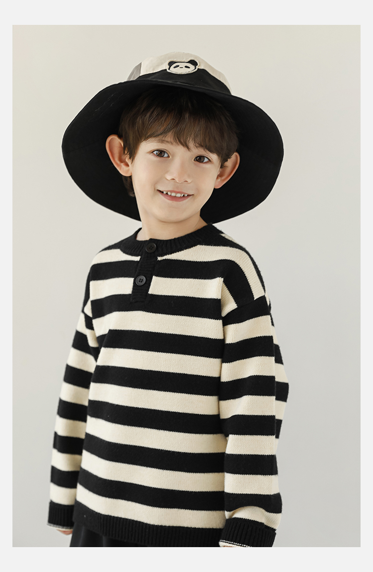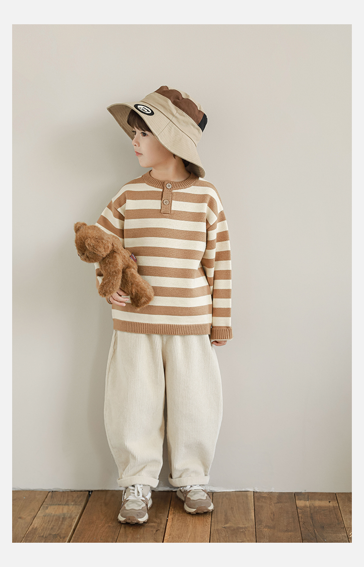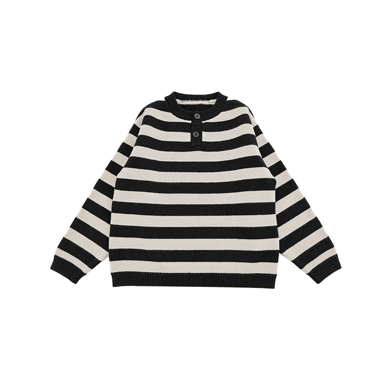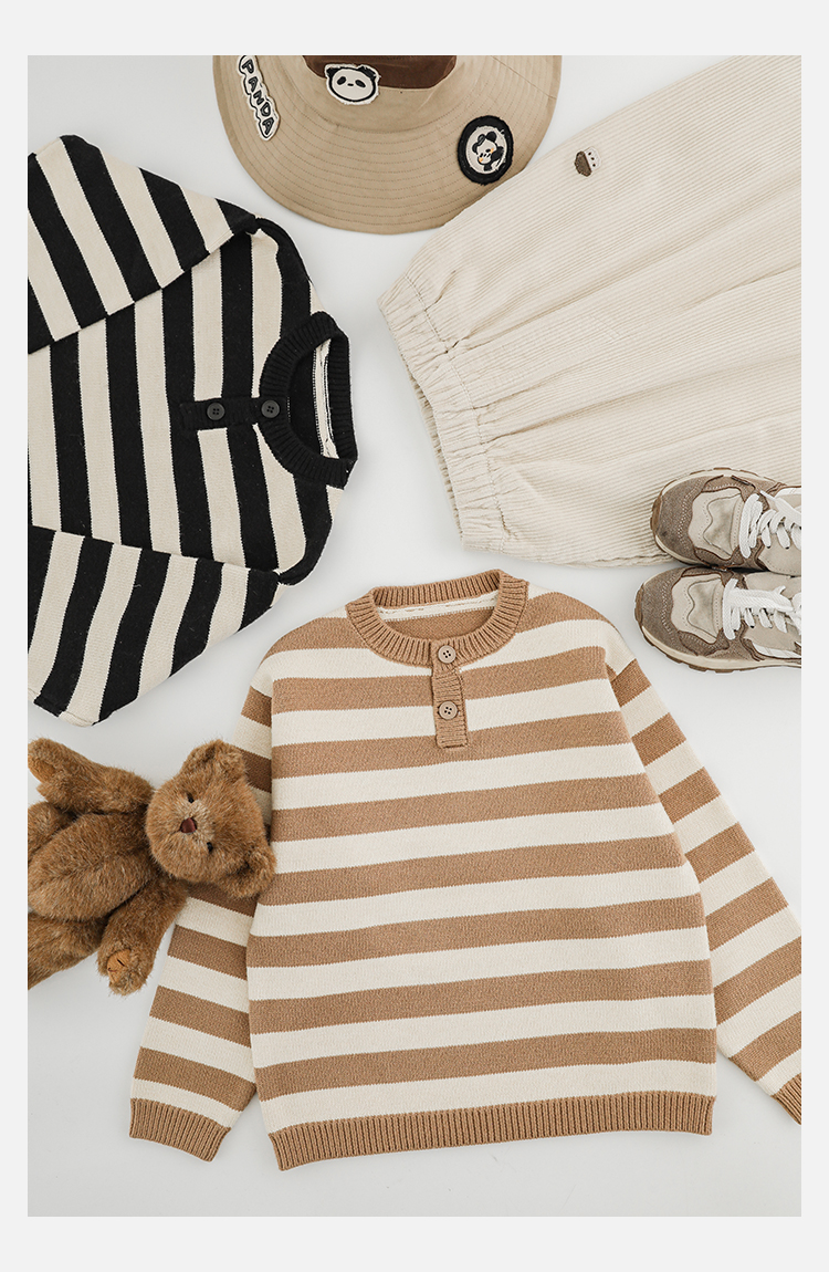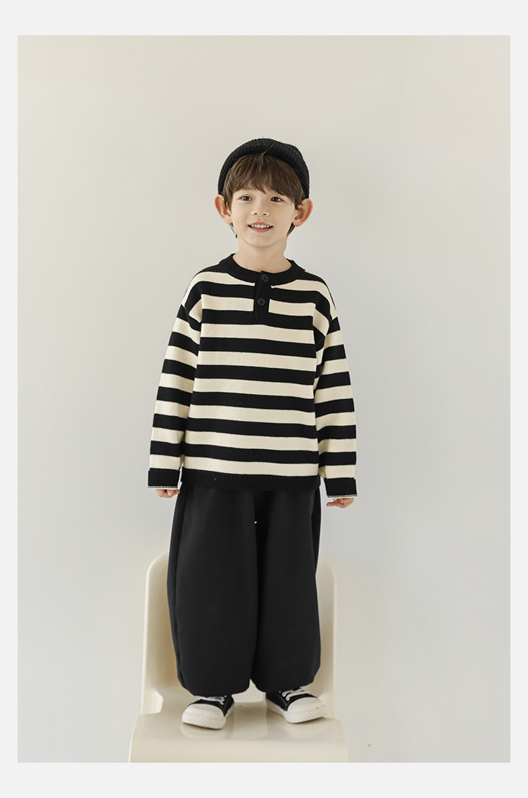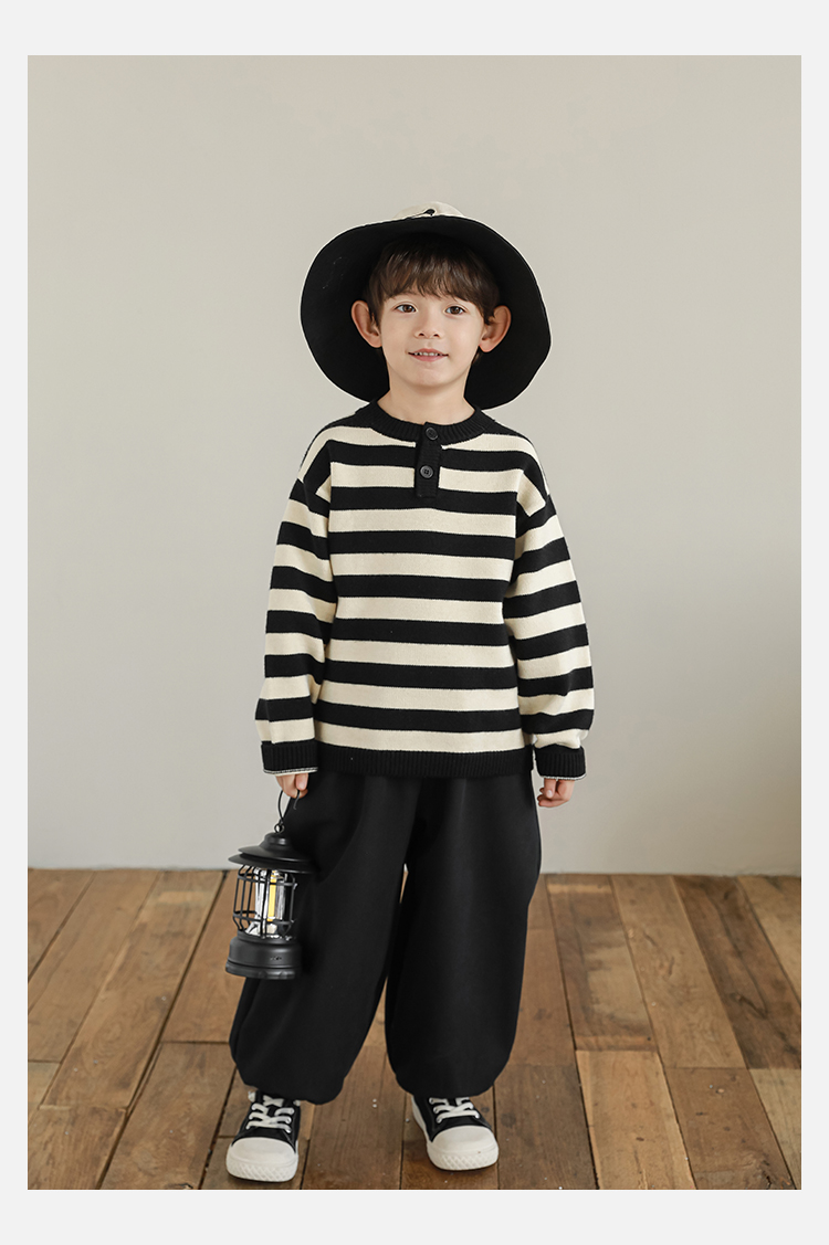 우리부이 남아용 2025 신상 라운드넥 배색 스트라이프 스웨터 겨울용 두꺼운 따뜻한 루즈핏 니트셔츠 트렌디스토어 가기