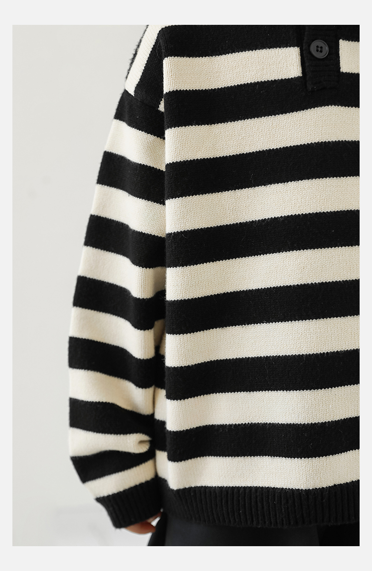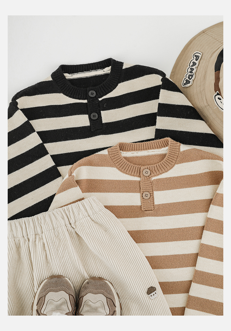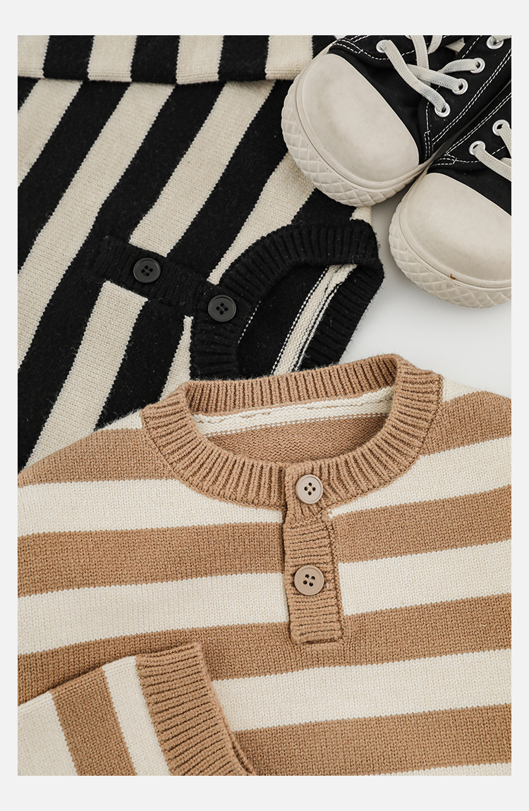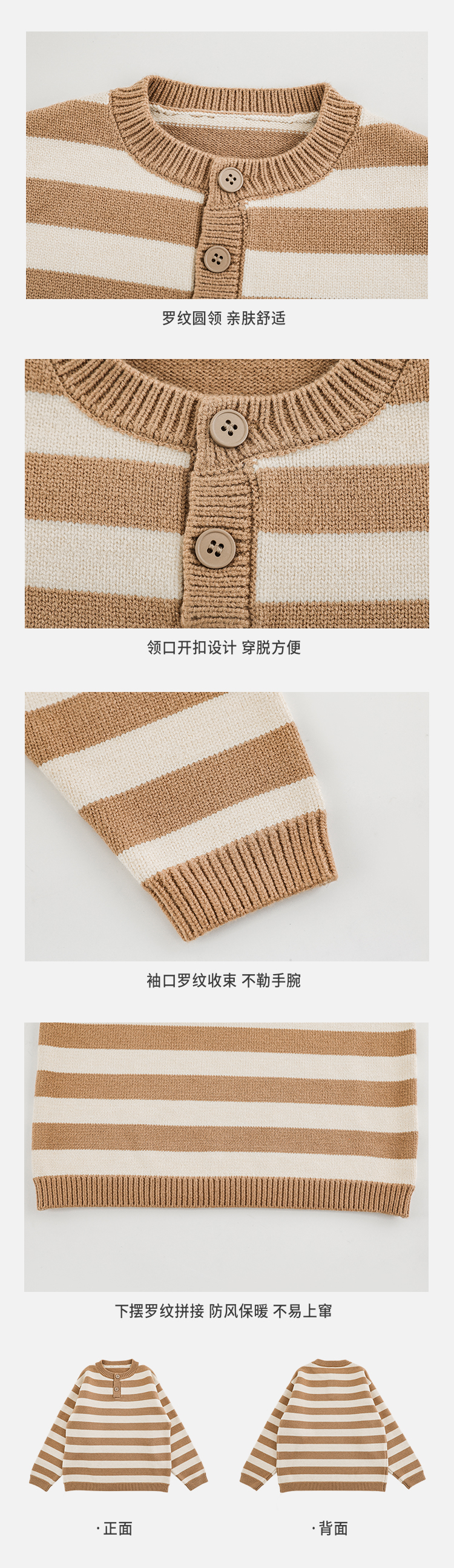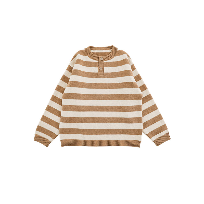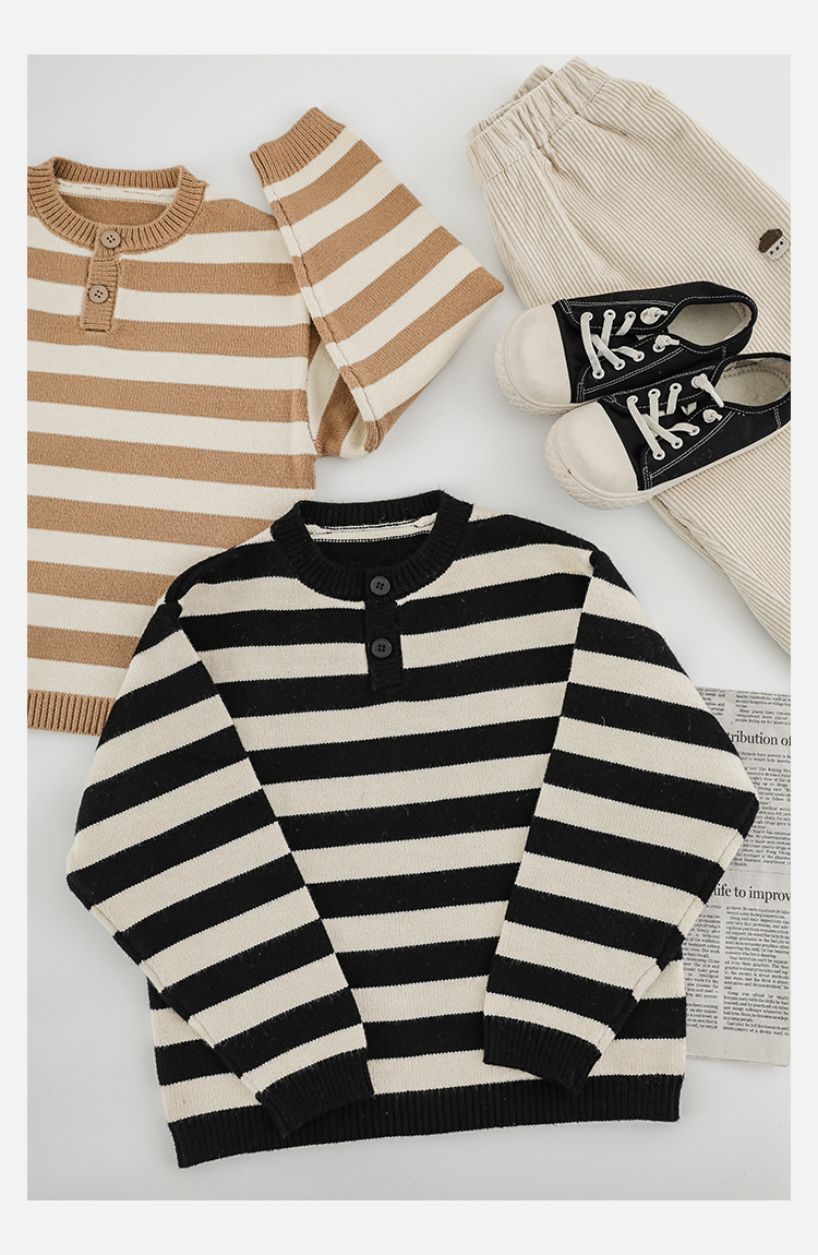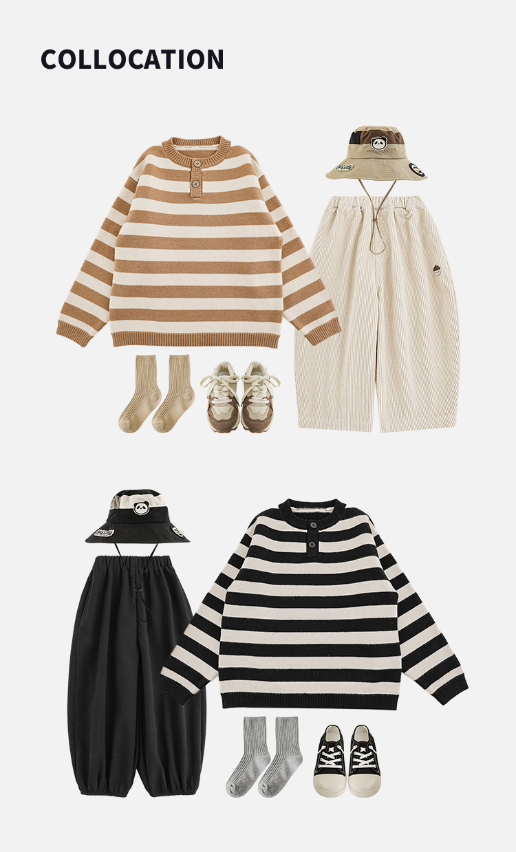 우리부이 남아용 2025 신상 라운드넥 배색 스트라이프 스웨터 겨울용 두꺼운 따뜻한 루즈핏 니트셔츠 트렌디스토어 가기
