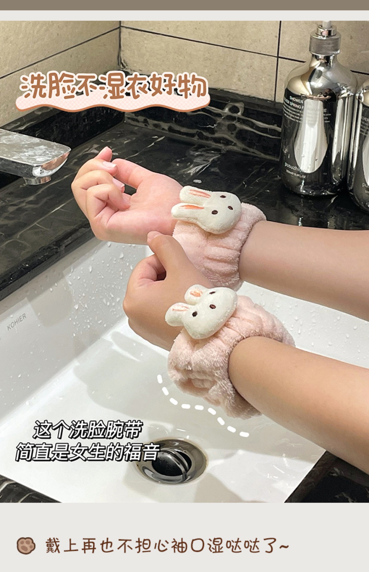 게으른 학교 귀여운 토끼 워시 얼굴 손목 밴드 수분 방지 슬리브 손목 가드 물 유지 아티팩트 워시 커프 방수 팔찌스토어 가기