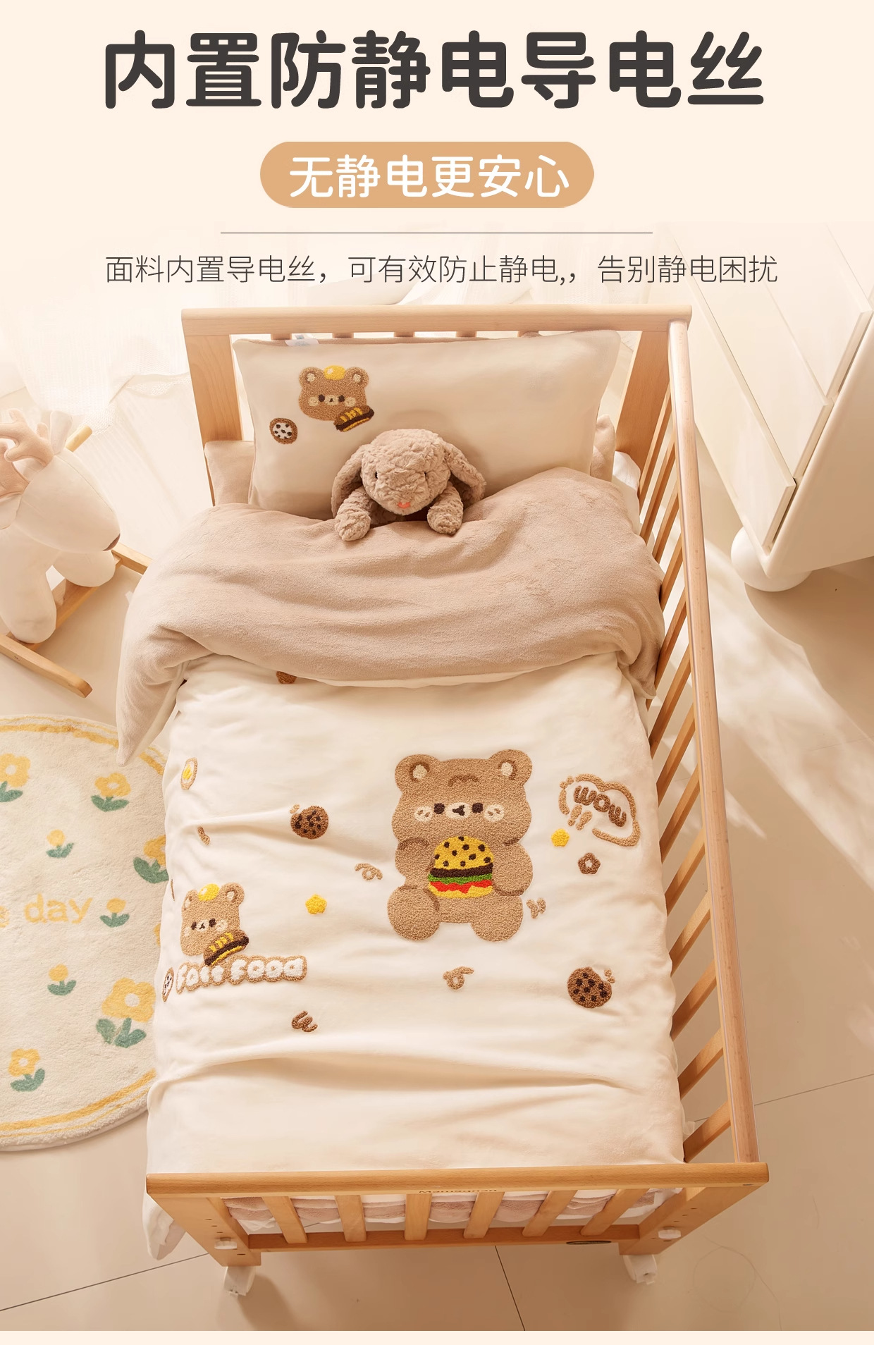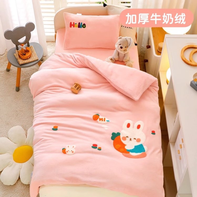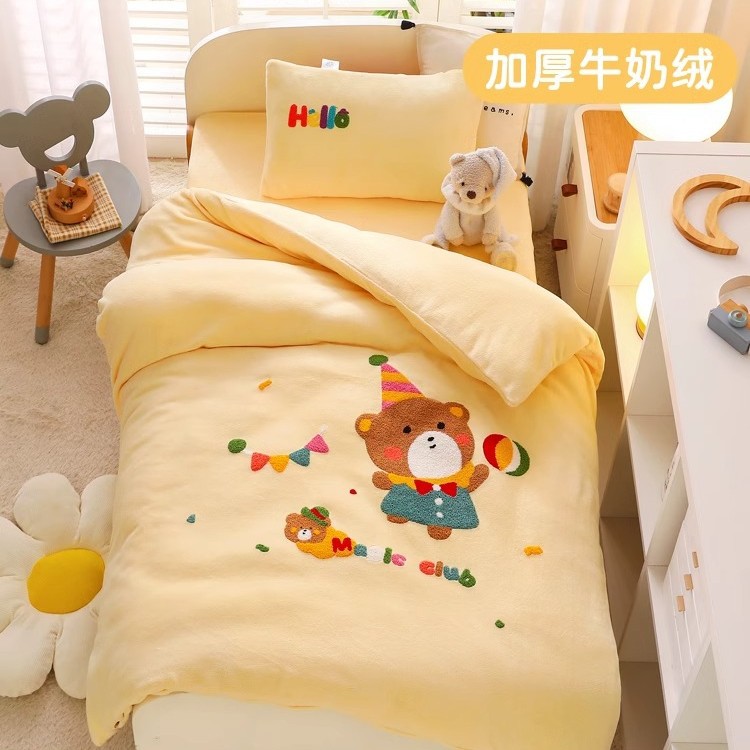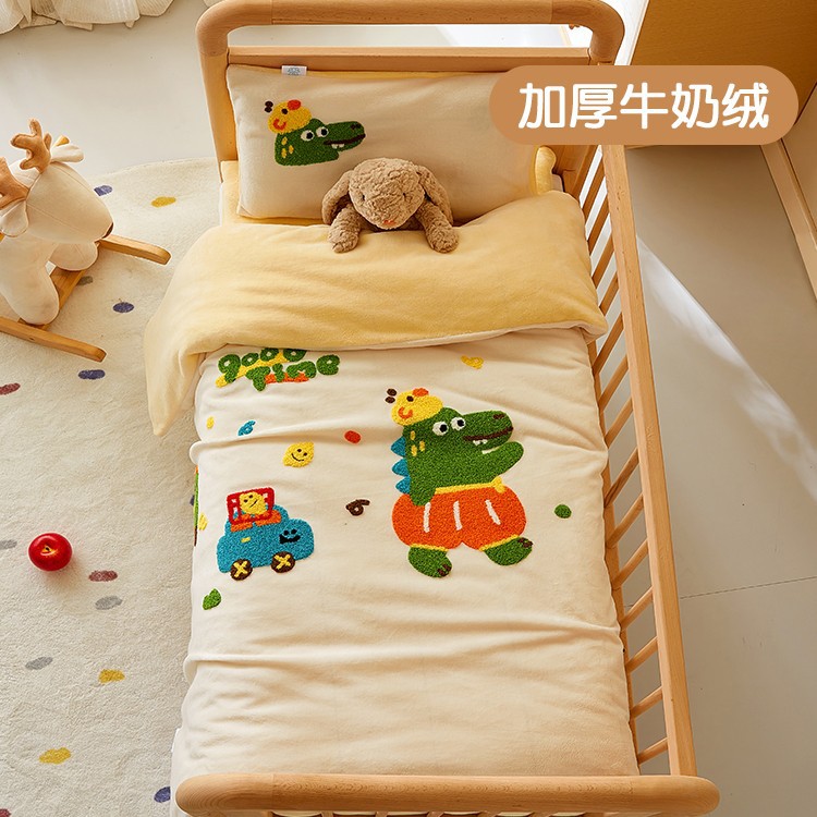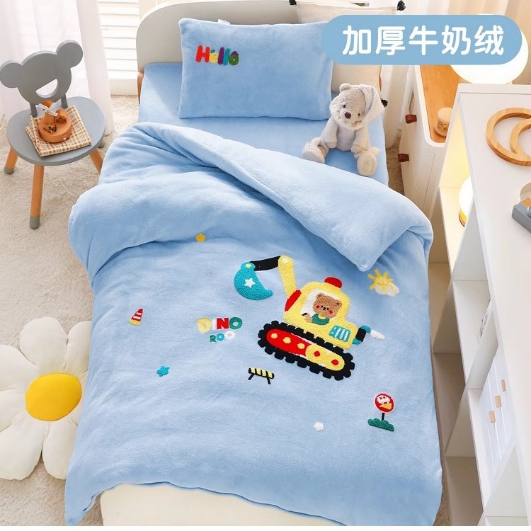 밀크 벨벳 유치원 퀼트 3 조각 세트 가을과 겨울 기모 어린이 퀼트 커버 아기의 특별한 침구 여섯 일곱 조각 세트스토어 가기
