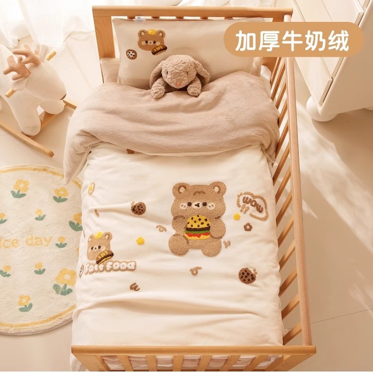 밀크 벨벳 유치원 퀼트 3 조각 세트 가을과 겨울 기모 어린이 퀼트 커버 아기의 특별한 침구 여섯 일곱 조각 세트