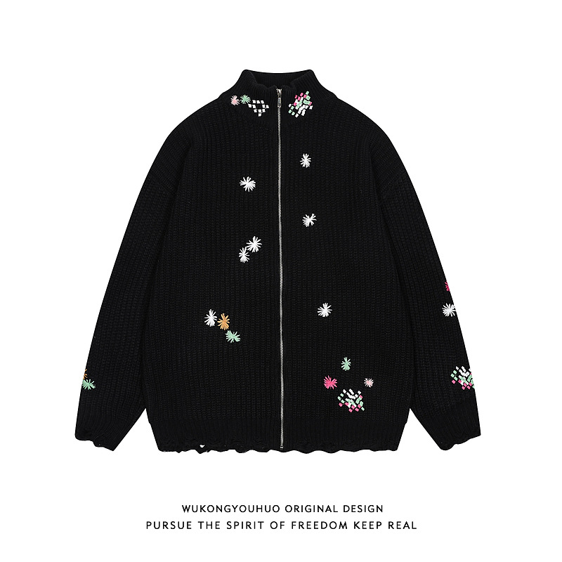 Wukong은 복고풍 패션 브랜드 자수 카디건 스탠드 칼라 스웨터 남성 가을 헐렁한 커플 올 매치 스웨터 코트를 보유하고 있습니다.스토어 가기