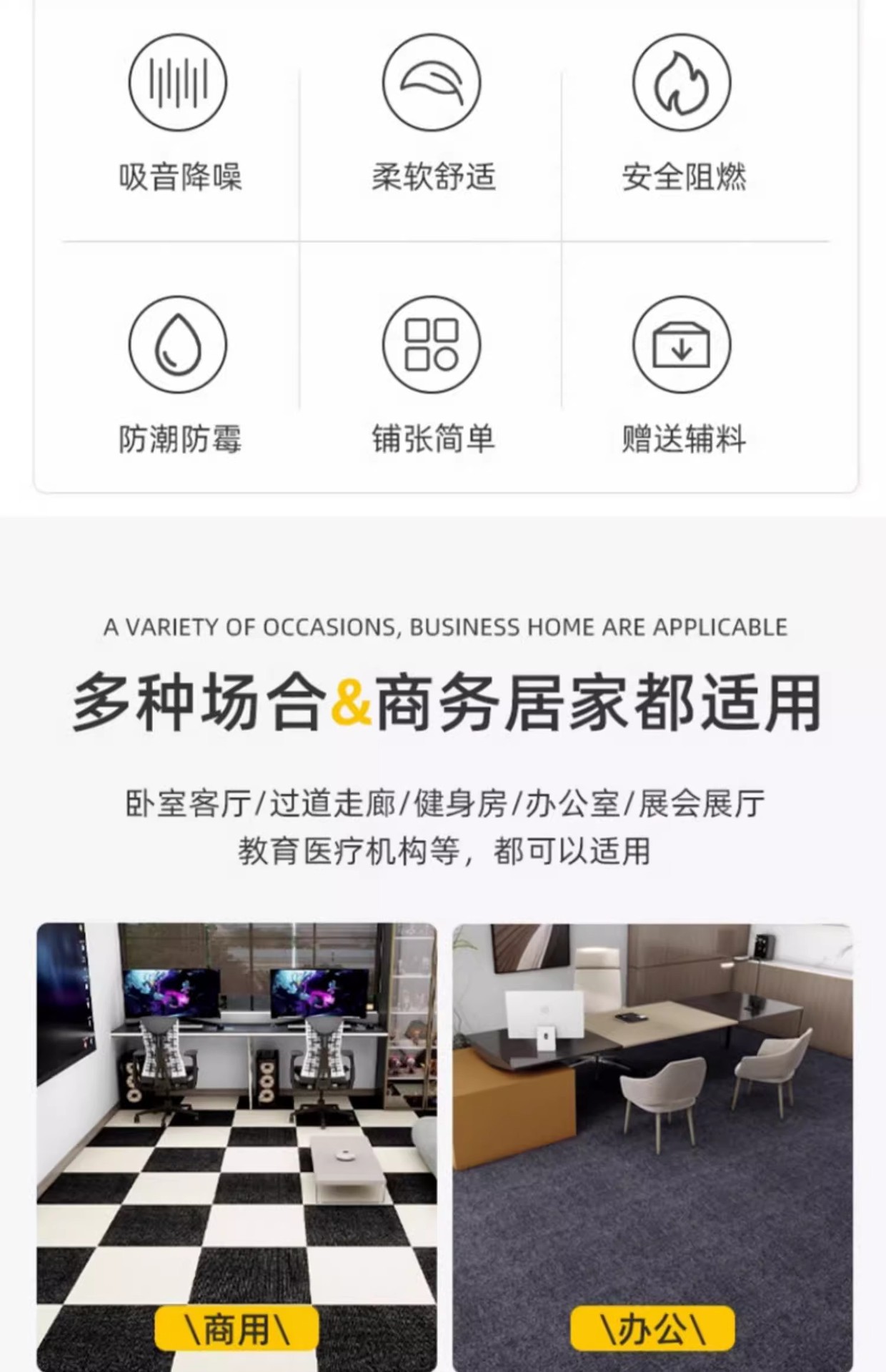 자체 접착 카펫 두꺼운 음소거 사무실 접합 광장 상업 전체 층 매트 넓은 면적 침실 시멘트 바닥스토어 가기