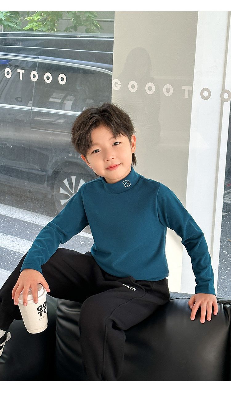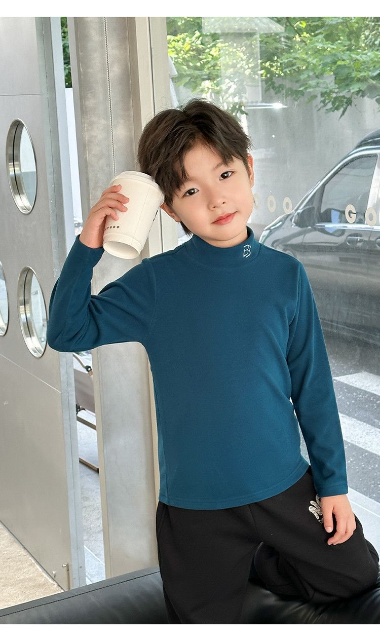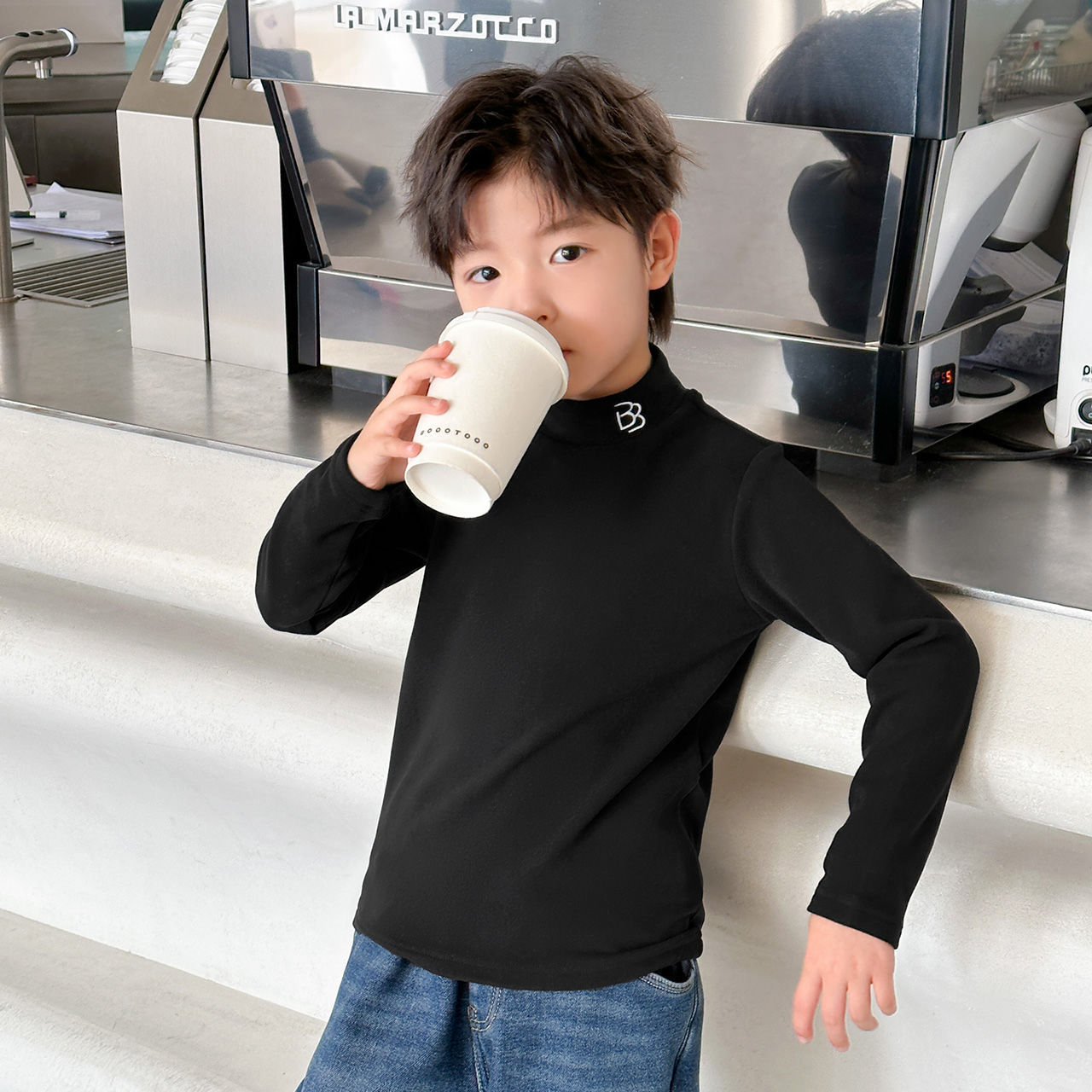 【】남아용 긴팔 티셔츠 2025년 겨울 신작 아동용 따뜻한 하프 터틀넥 셔츠