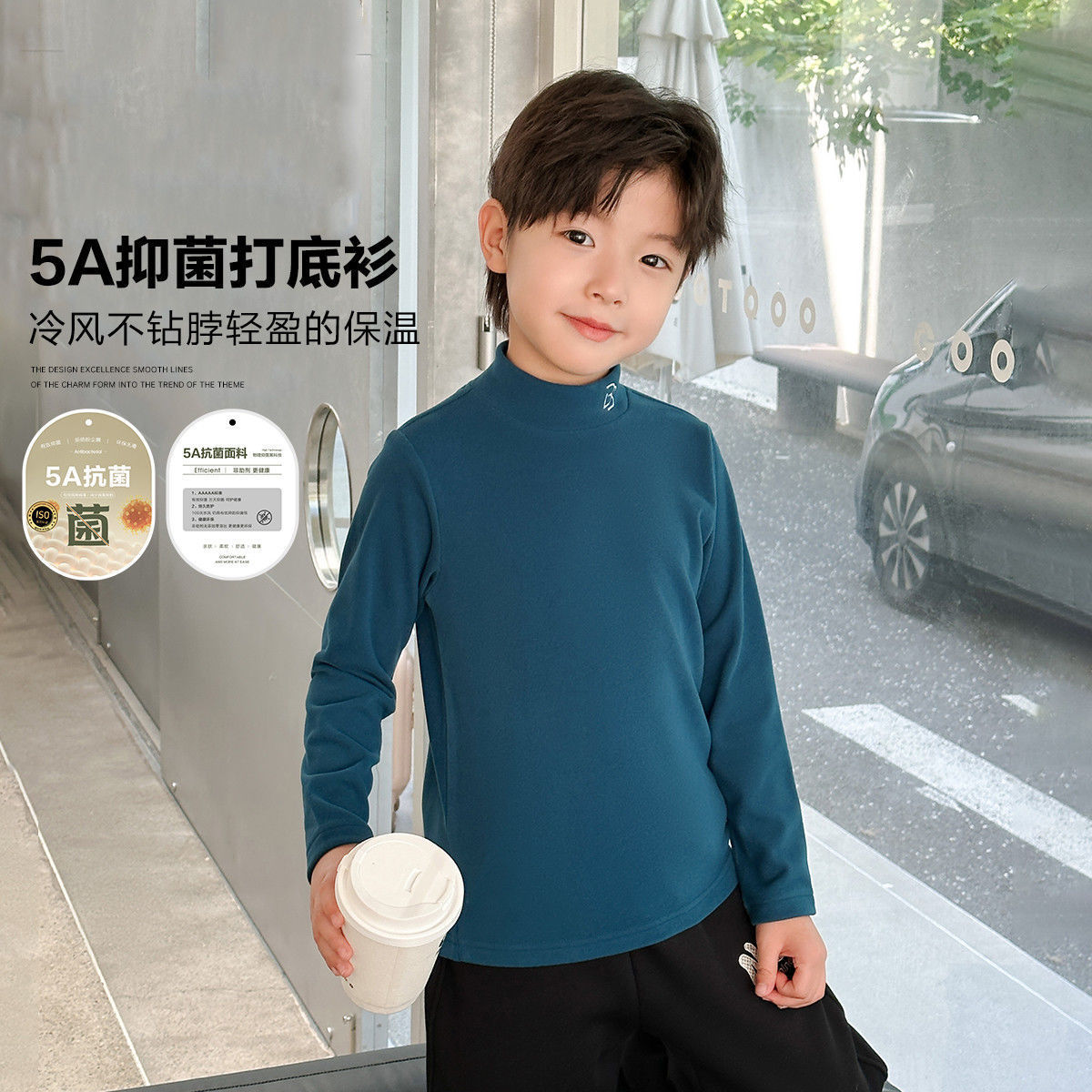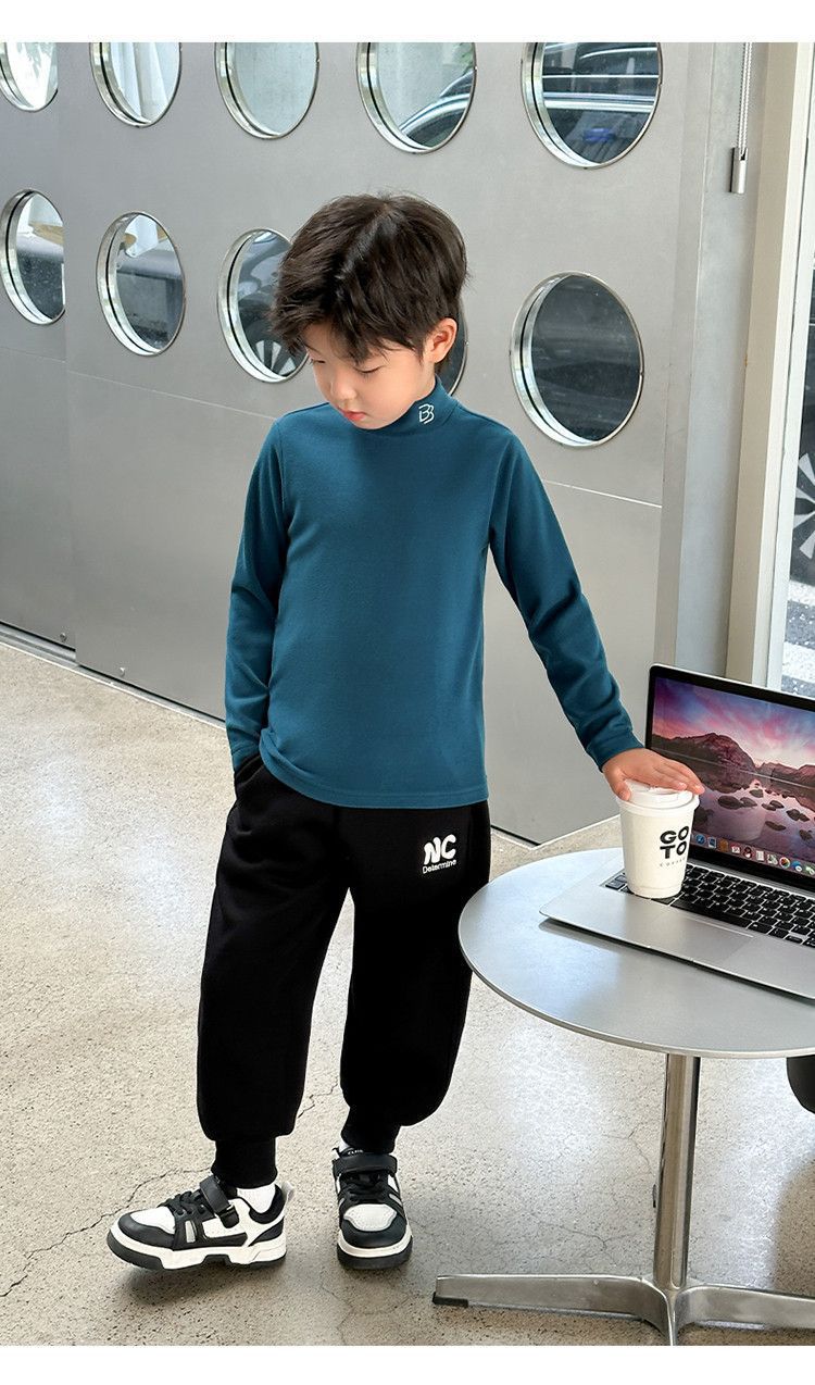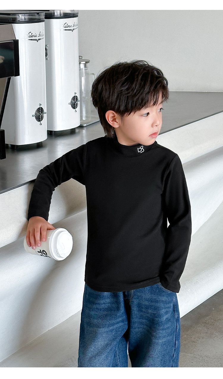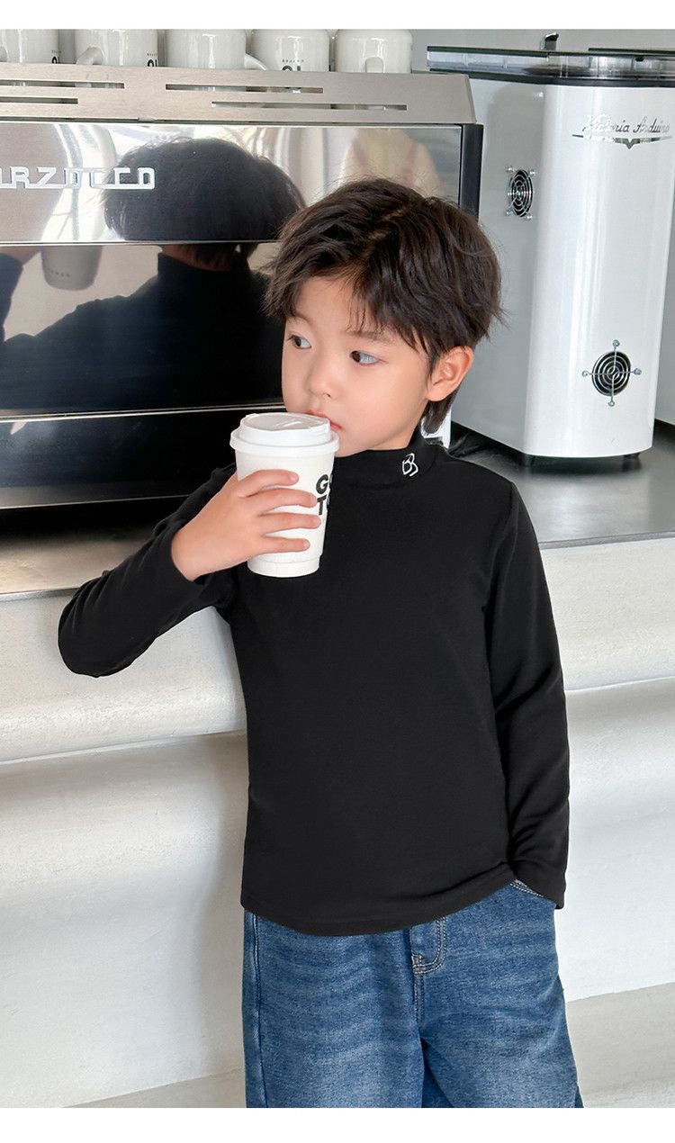 【】남아용 긴팔 티셔츠 2025년 겨울 신작 아동용 따뜻한 하프 터틀넥 셔츠