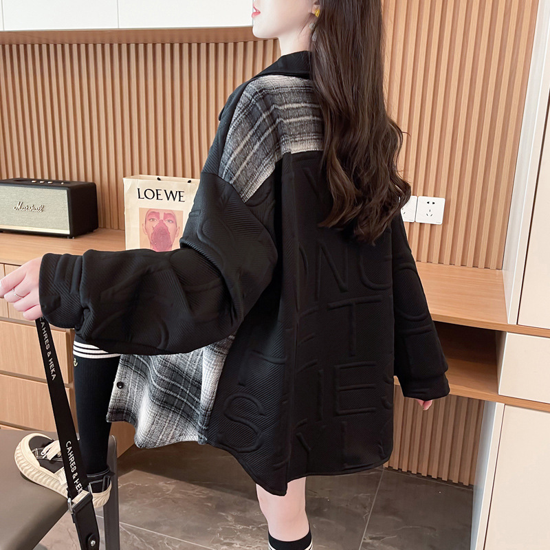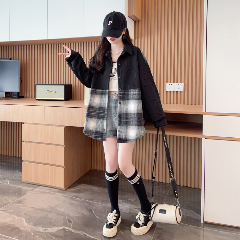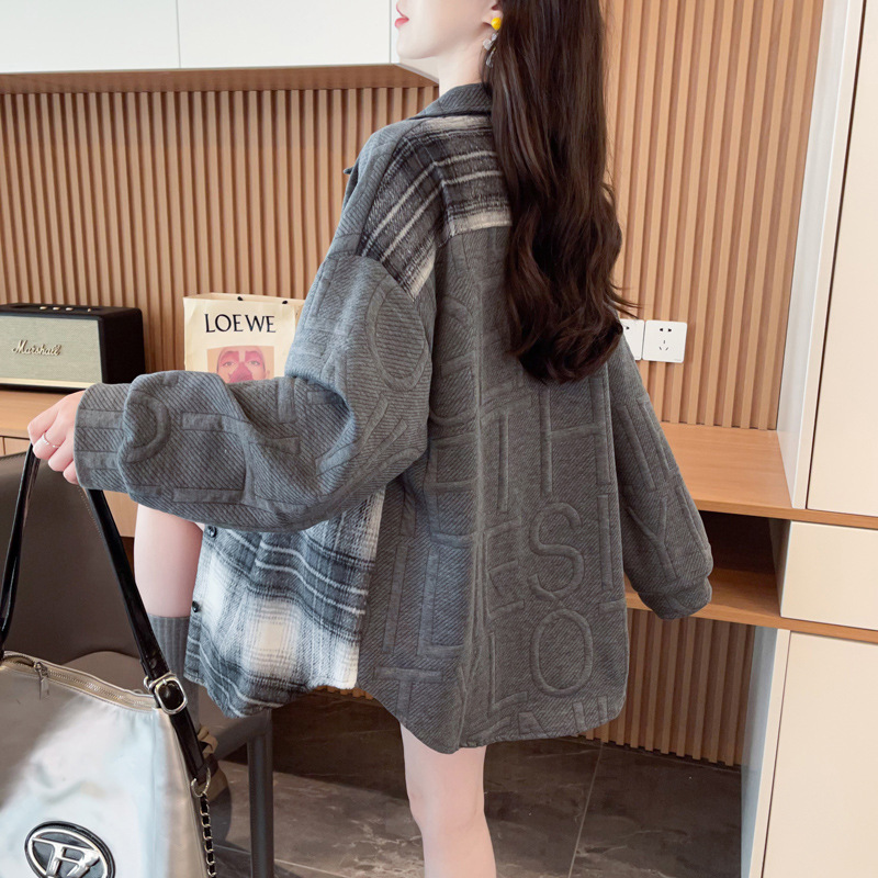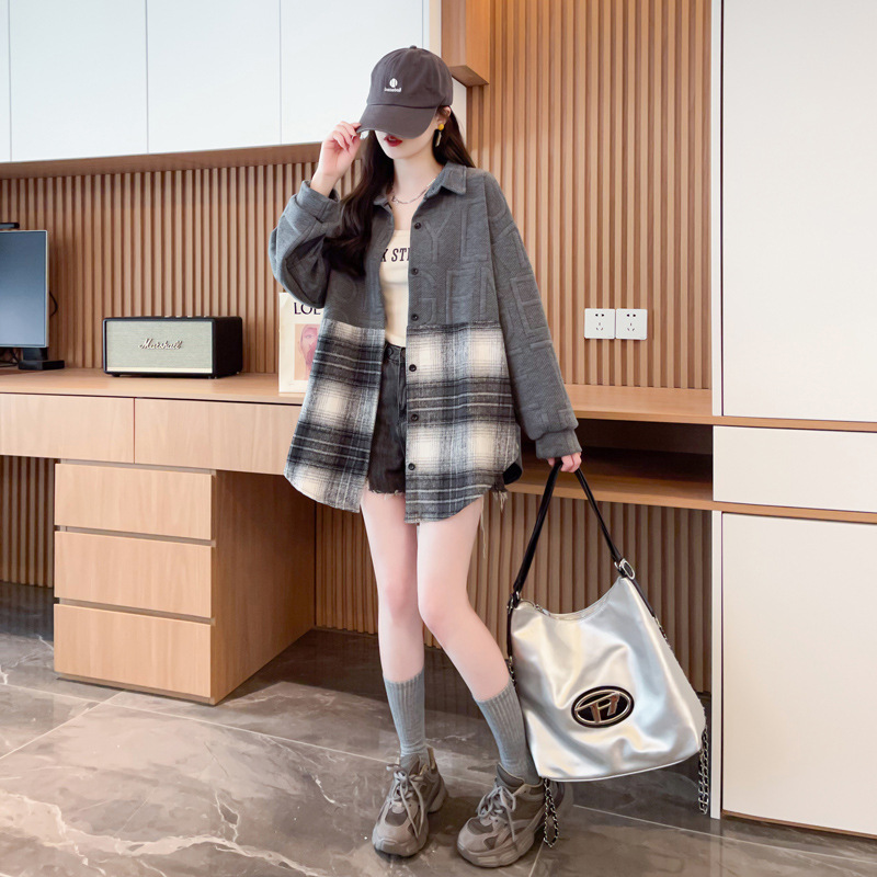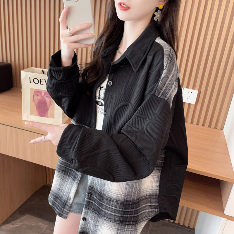 바느질 셔츠 코트 여자 봄과 가을 새 한국 스타일 느슨한 중간 길이 카디건 레트로 캐주얼 웨스턴 스타일 올 매치 탑스토어 가기
