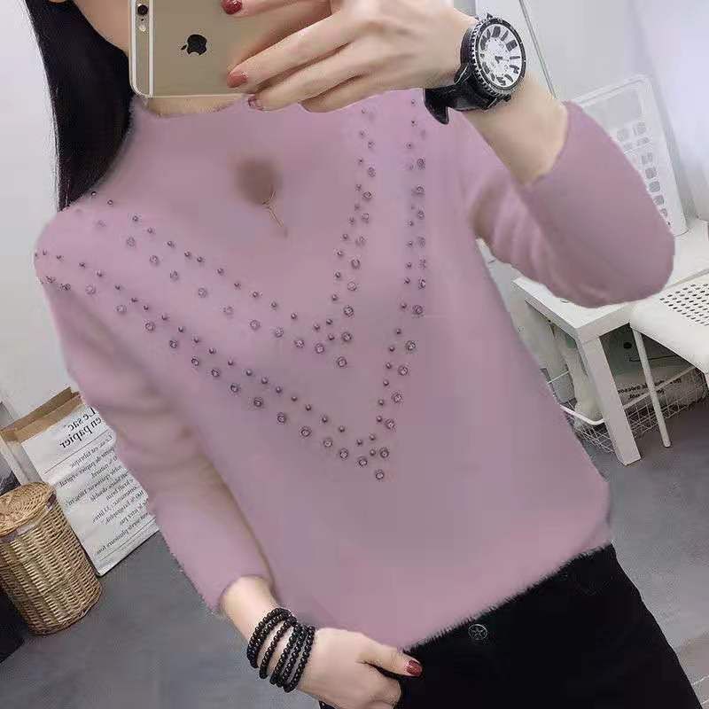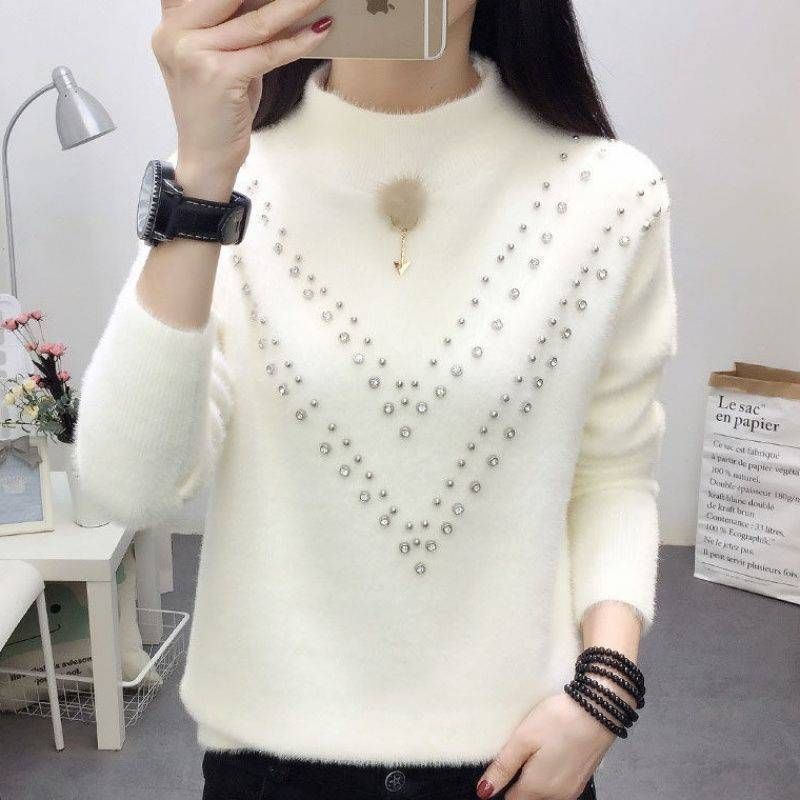 여자 스웨터 가을과 겨울 새 스웨터 여자 하프 터틀넥 비즈 하이 엔드 니트베이스 셔츠 탑스토어 가기