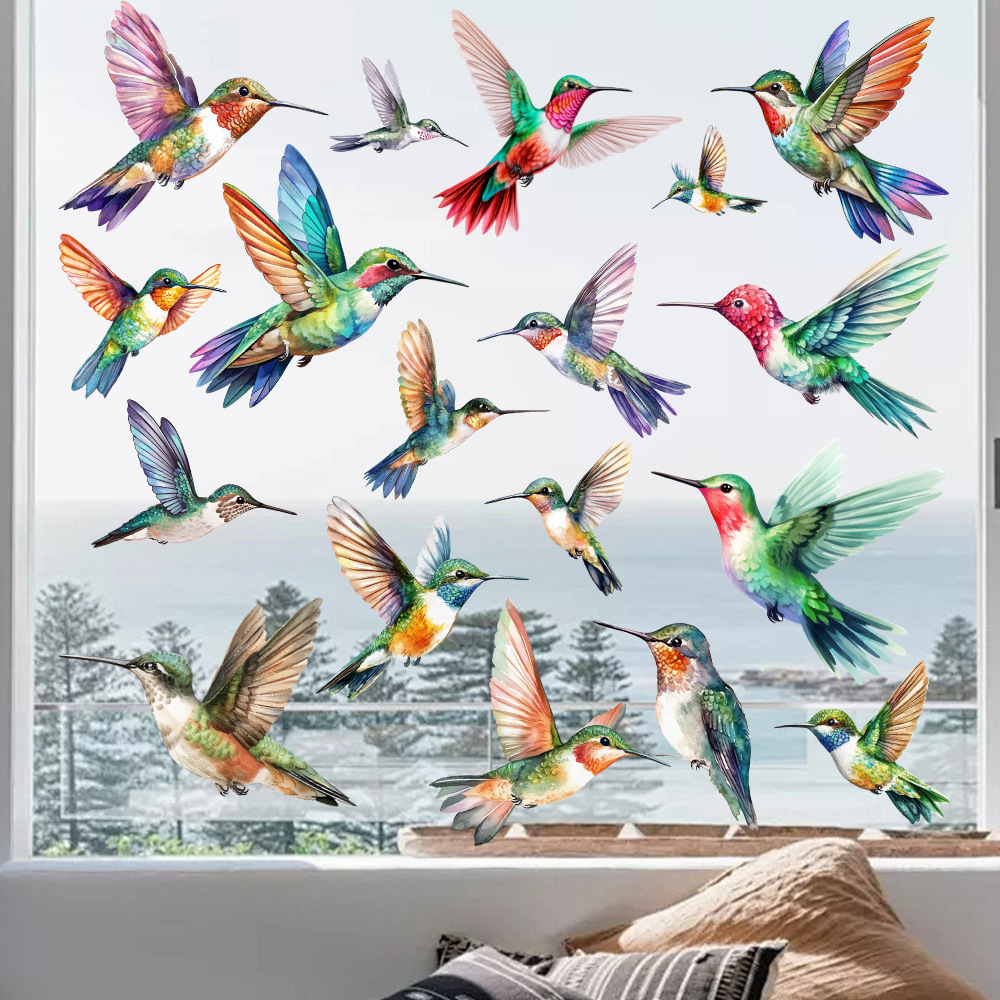 Yiyao JD2321 봄 창조적 인 다채로운 벌새 유리 스티커 거실 어린이 방 발코니 장식 정전기 스티커