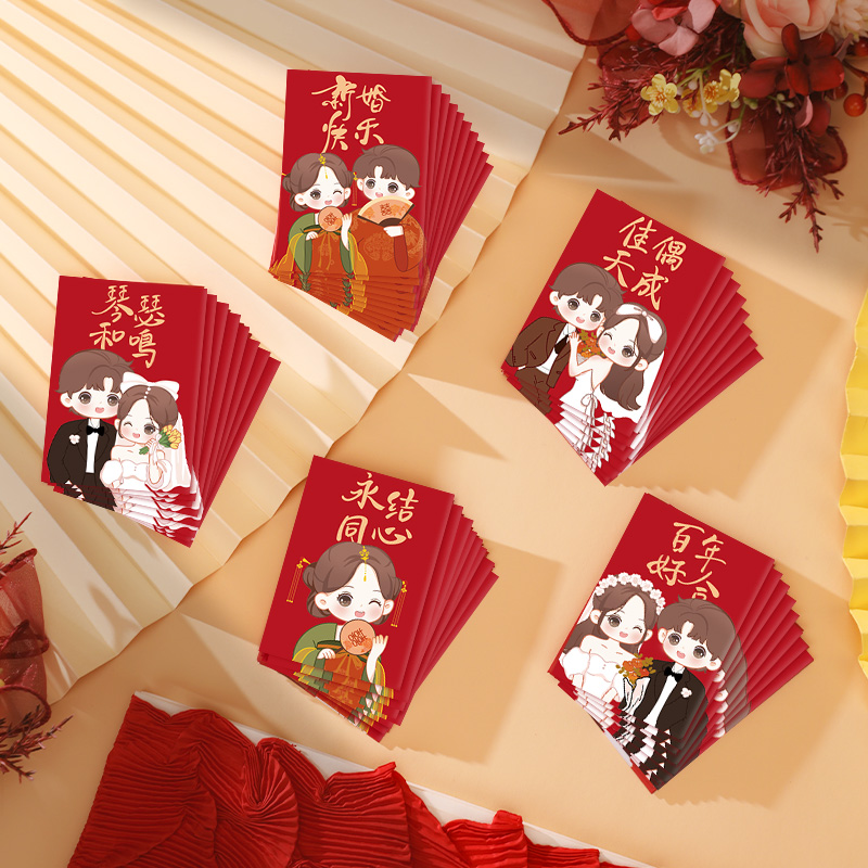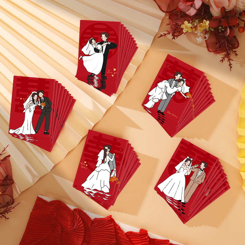작은 빨간 봉투 결혼식 선물 미니 Lizi 씰 2024 새로운 스타일 행복한 캐릭터를 던져 차단 된 문 빨간 봉투 가방 바람 소스스토어 가기