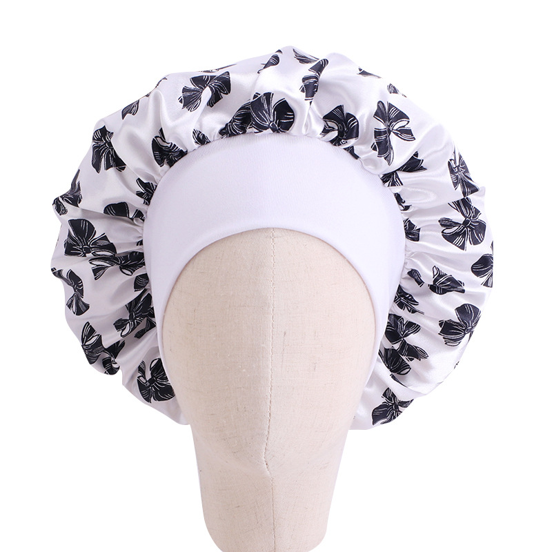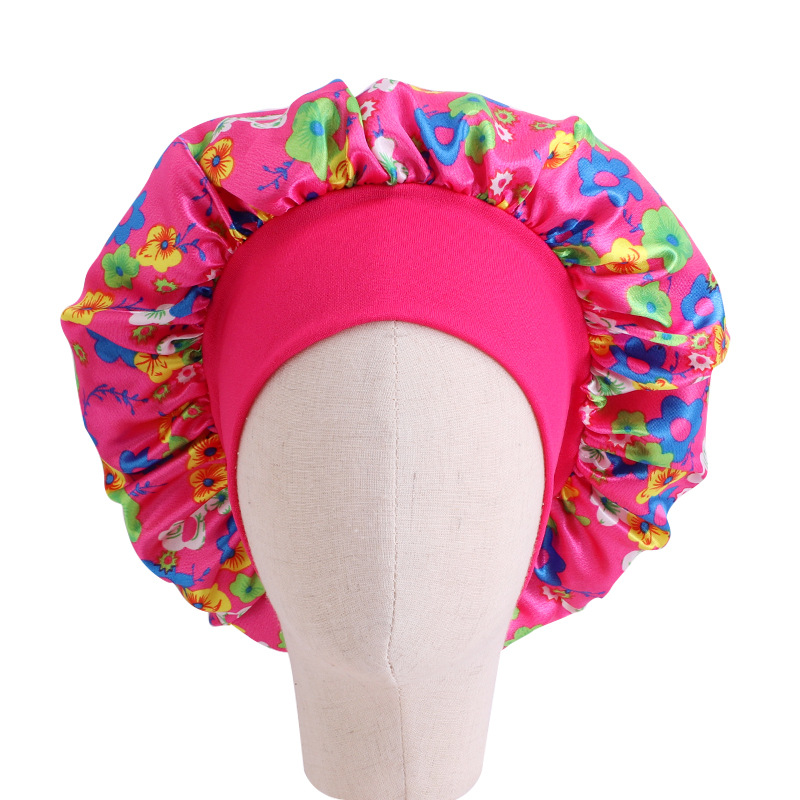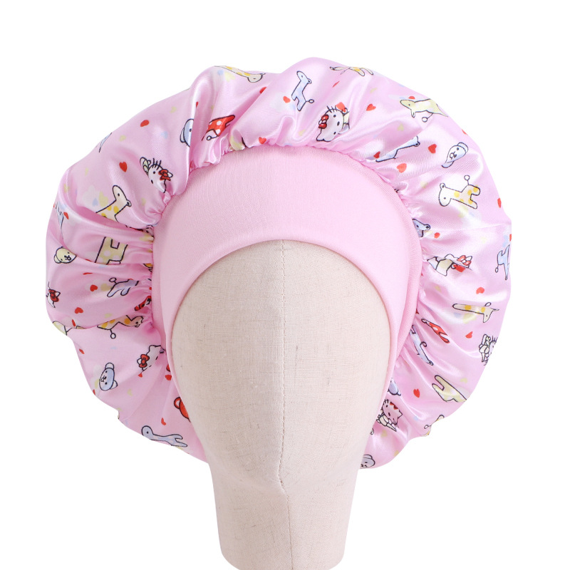 어린이 스트레치 와이드 브림 새틴 나이트 캡 인쇄 후드 JDKB-21A
