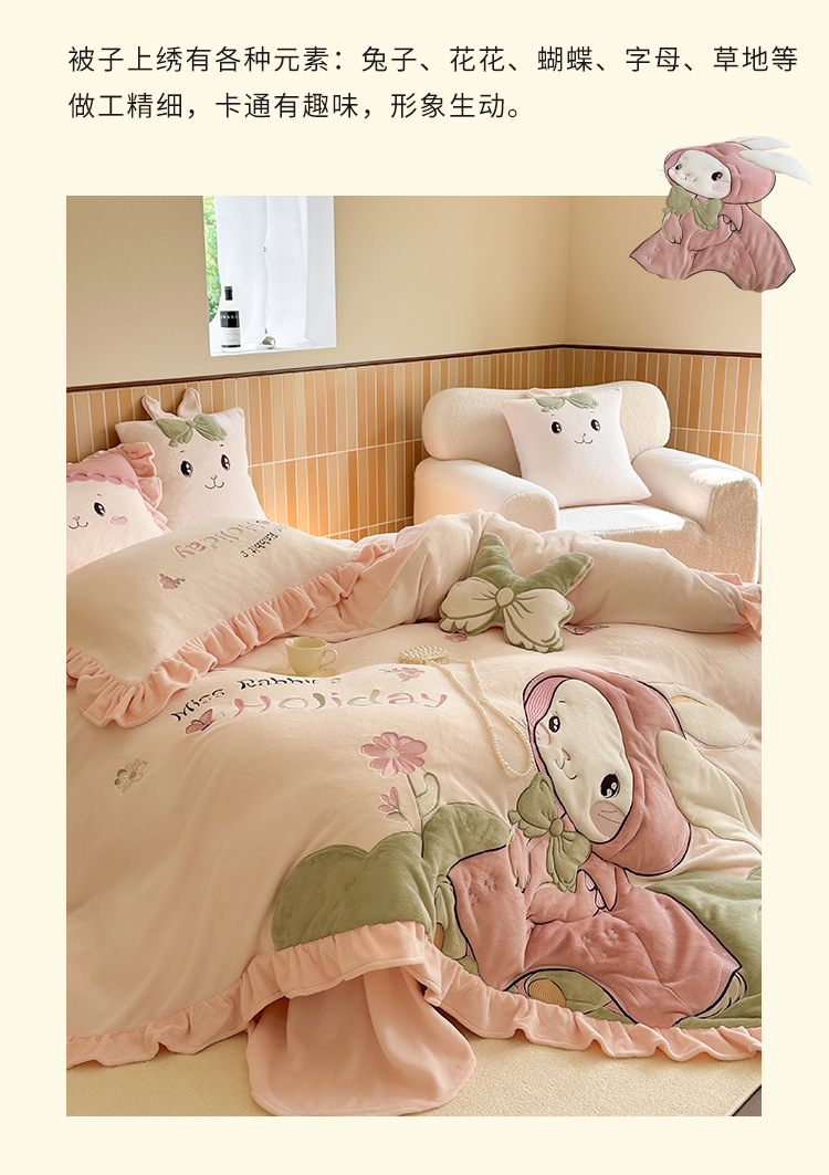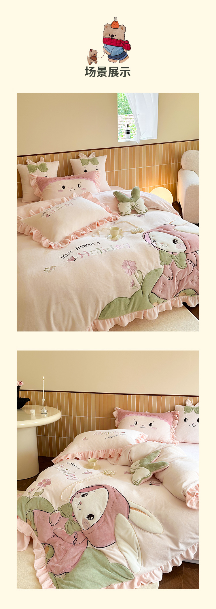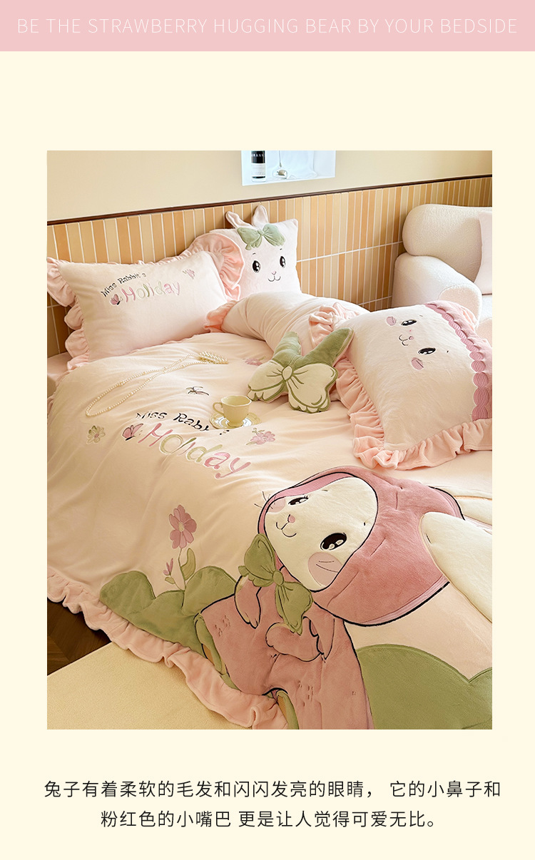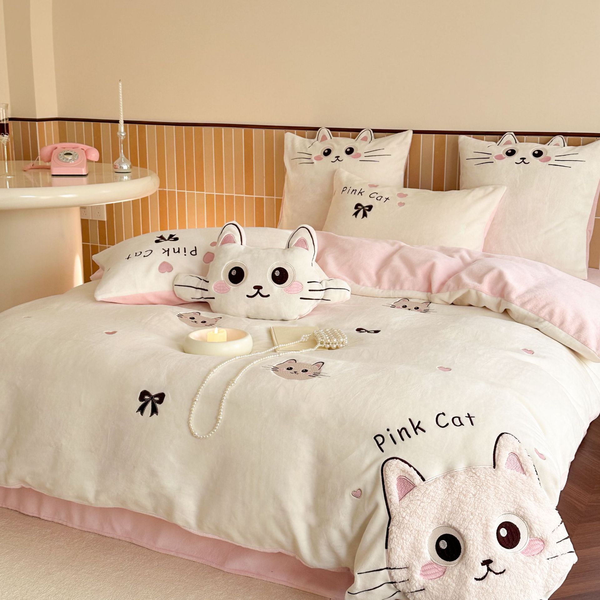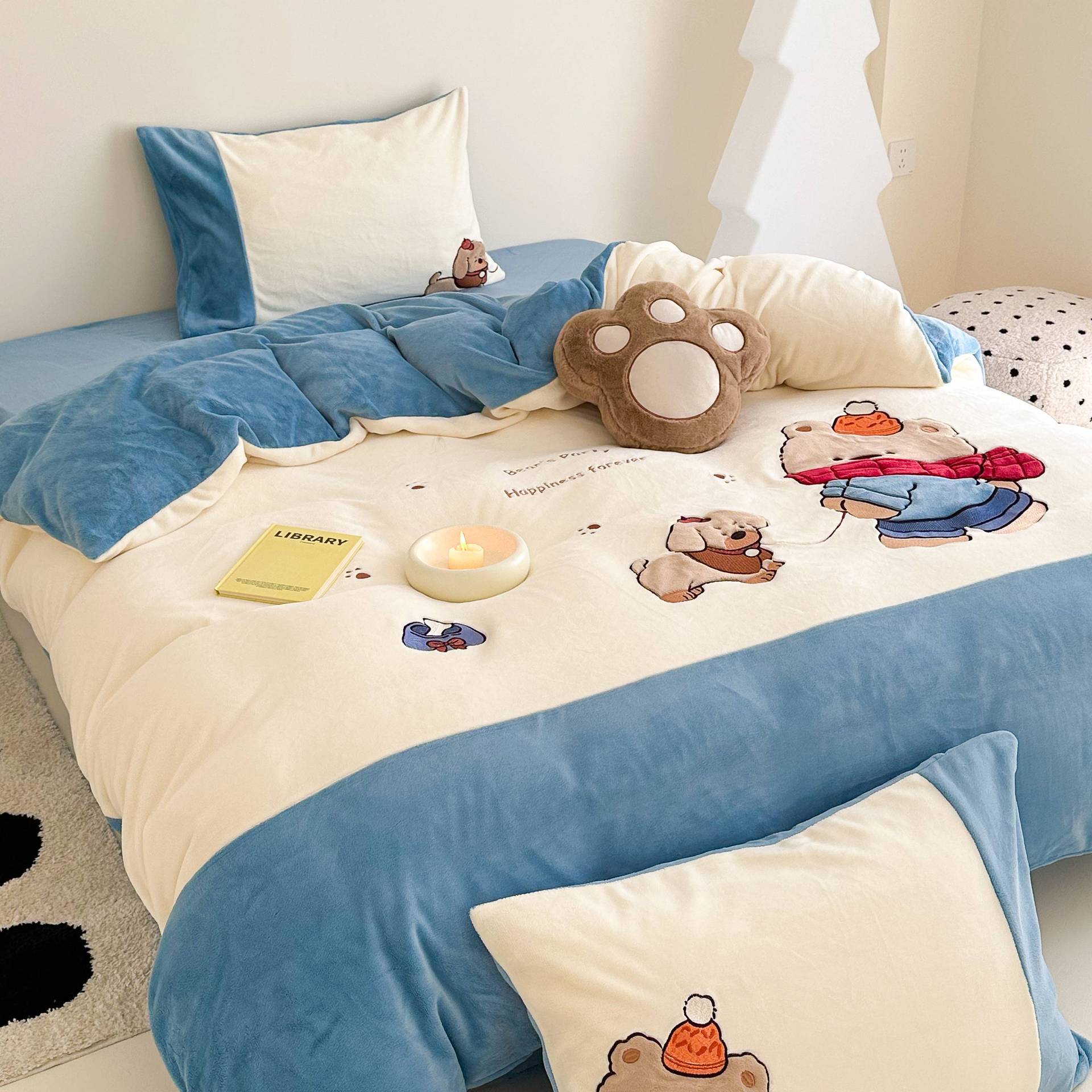 2024 가을과 겨울 새로운 완전 멸종 우유 벨벳 두꺼운 따뜻한 자수 4 피스 만화 기숙사 침구 소녀의 마음스토어 가기