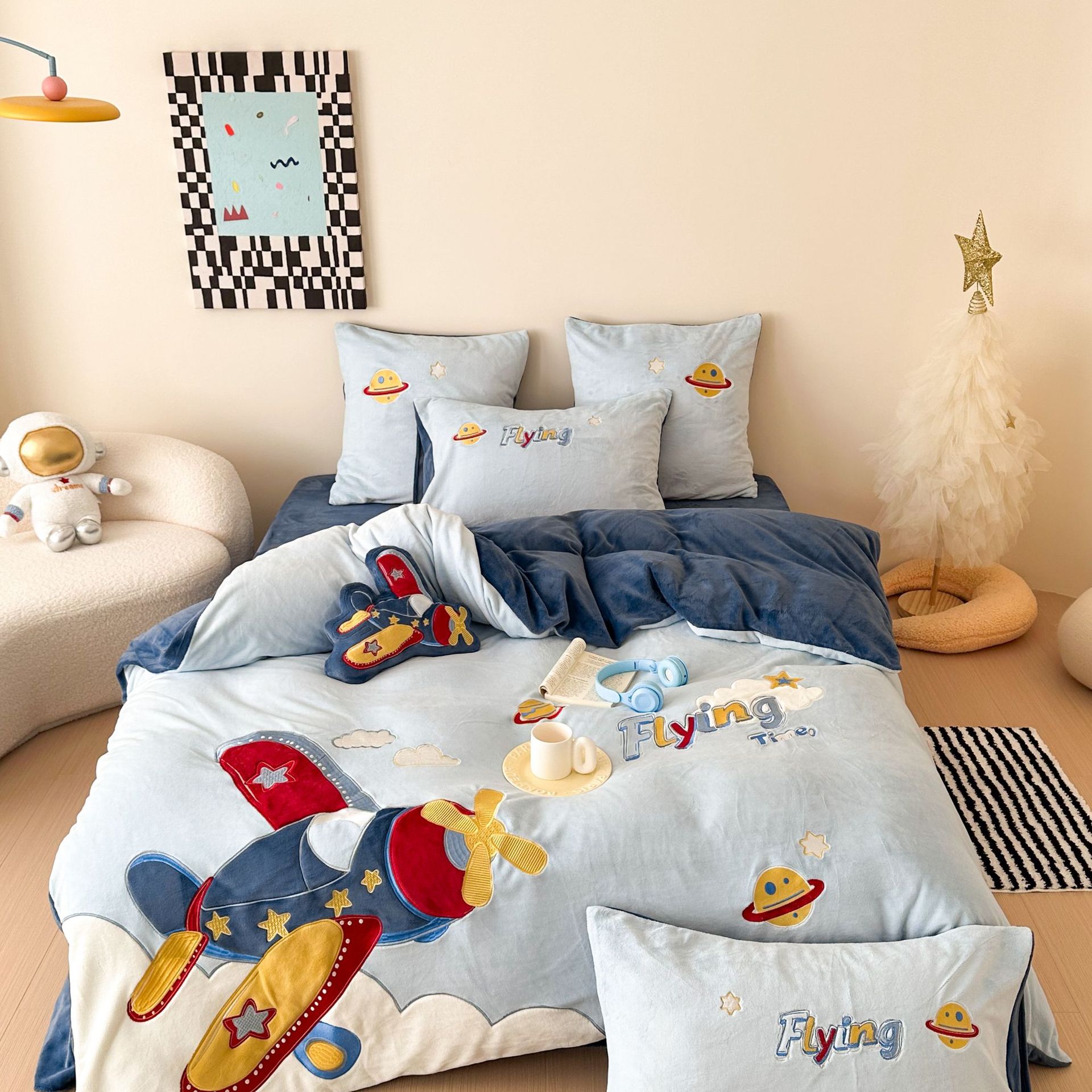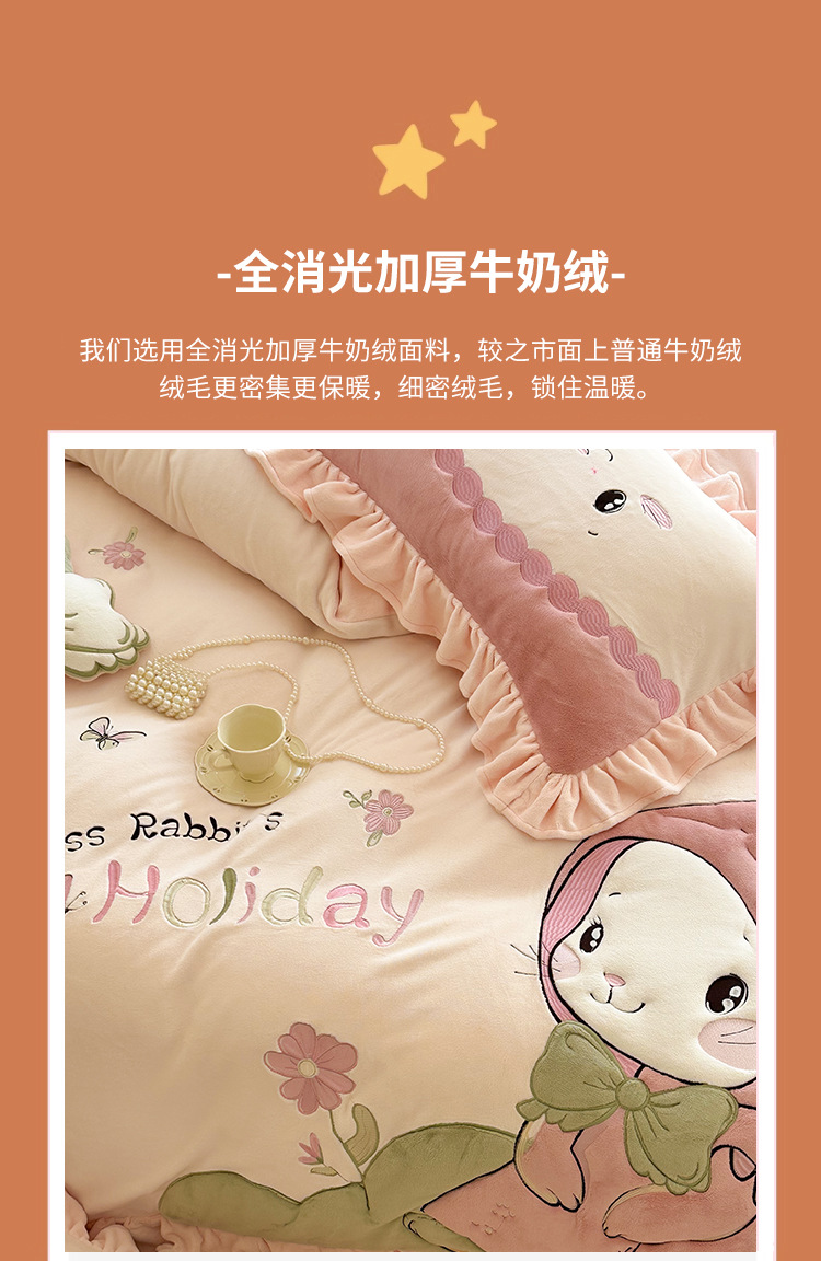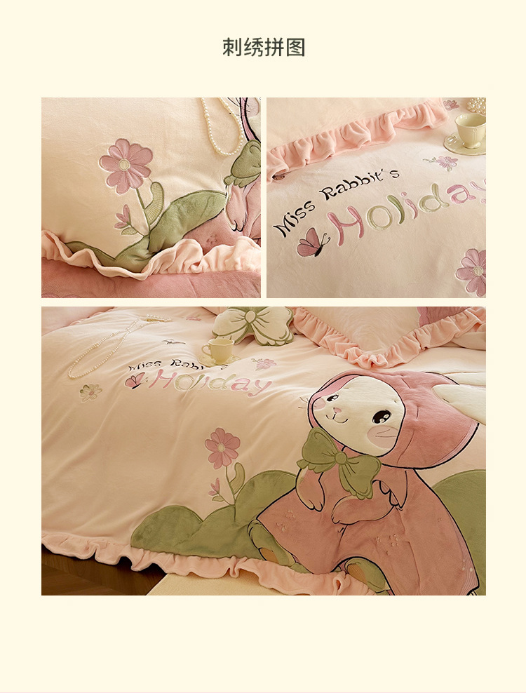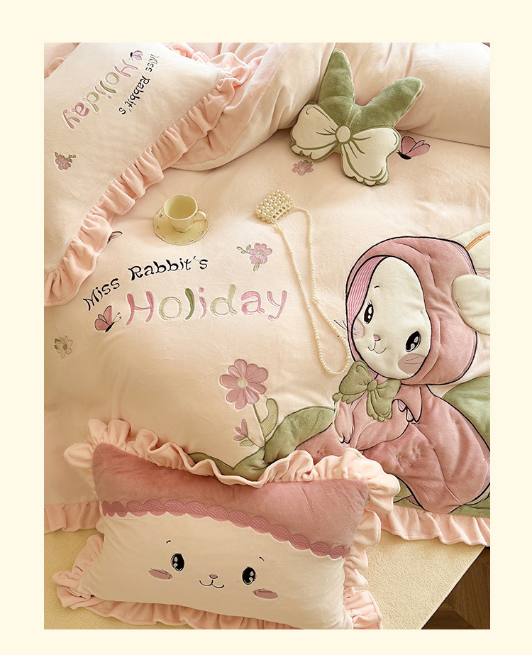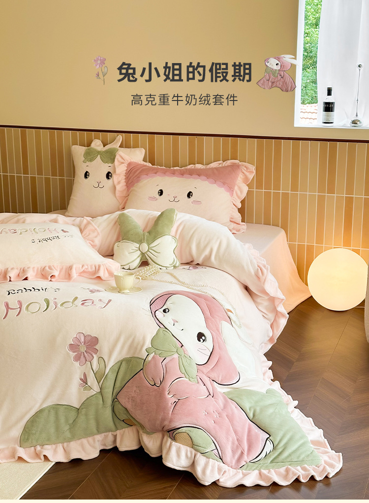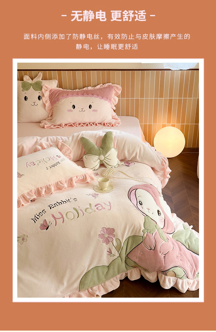 2024 가을과 겨울 새로운 완전 멸종 우유 벨벳 두꺼운 따뜻한 자수 4 피스 만화 기숙사 침구 소녀의 마음스토어 가기