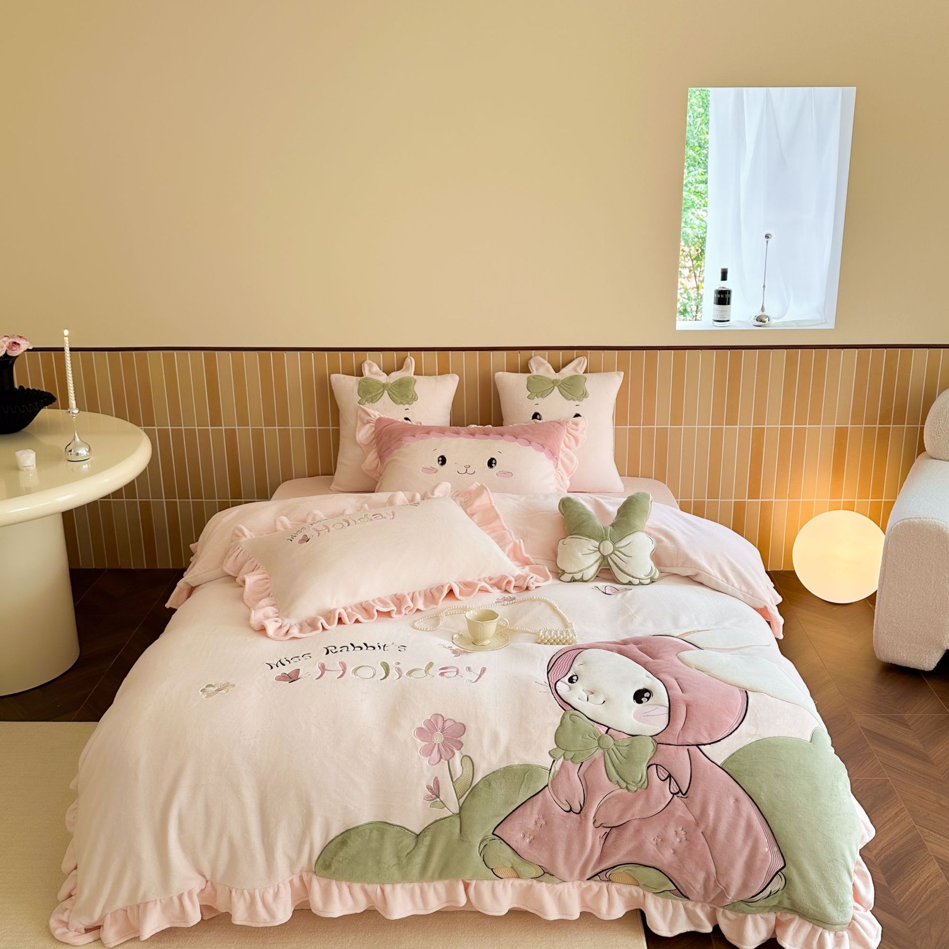 2024 가을과 겨울 새로운 완전 멸종 우유 벨벳 두꺼운 따뜻한 자수 4 피스 만화 기숙사 침구 소녀의 마음
