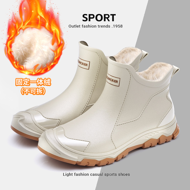 46 47 48 플러스 사이즈 장화 남성용 짧은 장화 겨울 기모 따뜻한 주방 방수 신발 Meituan 고무 신발 남성용
