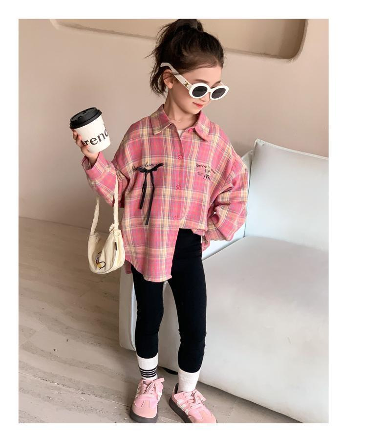 여자 셔츠 가을 스타일 2025 새로운 어린이 가을 탑 작은 셔츠 유행 여자 가을 큰 어린이 셔츠스토어 가기