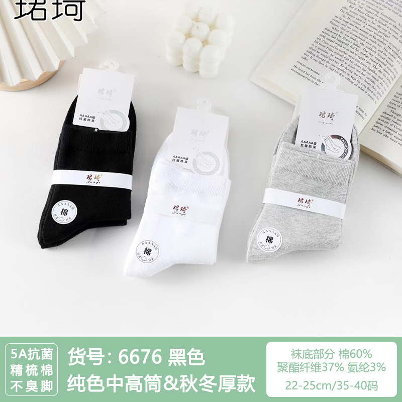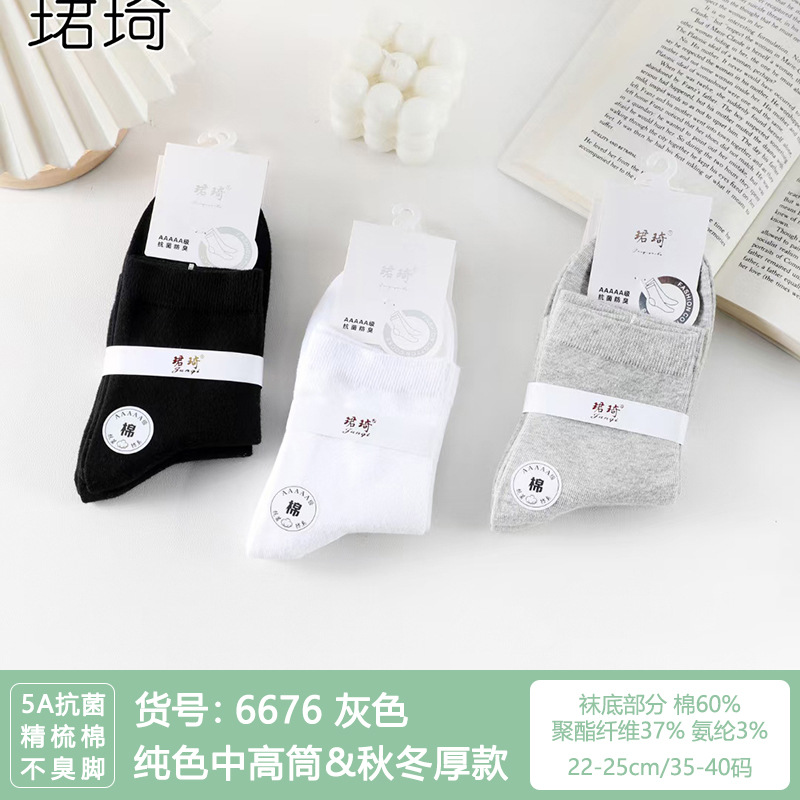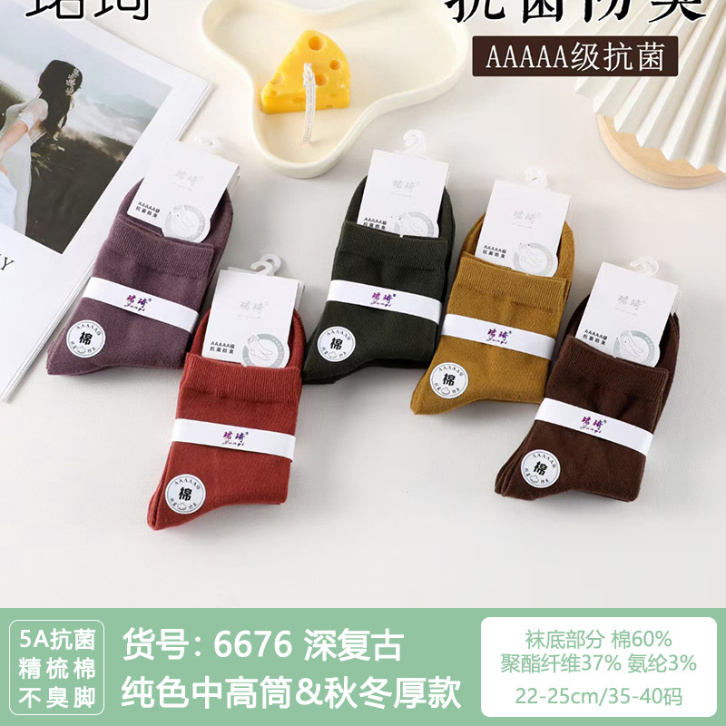 Jun Qi 6676 여자 하이 넷 겨울 두꺼운 여자 양말 가을과 겨울 따뜻한 높은 허리 면 양말 단색이 아닌 Stinky Feet 캐주얼 양말