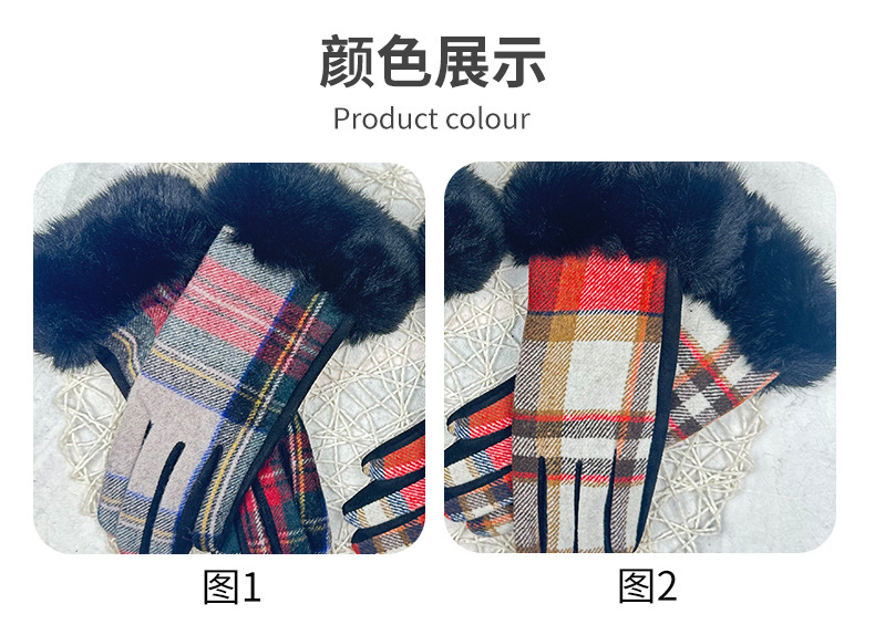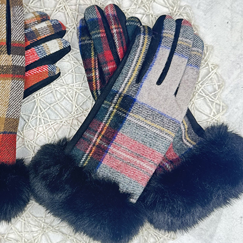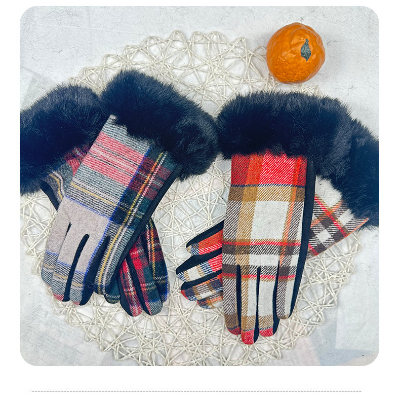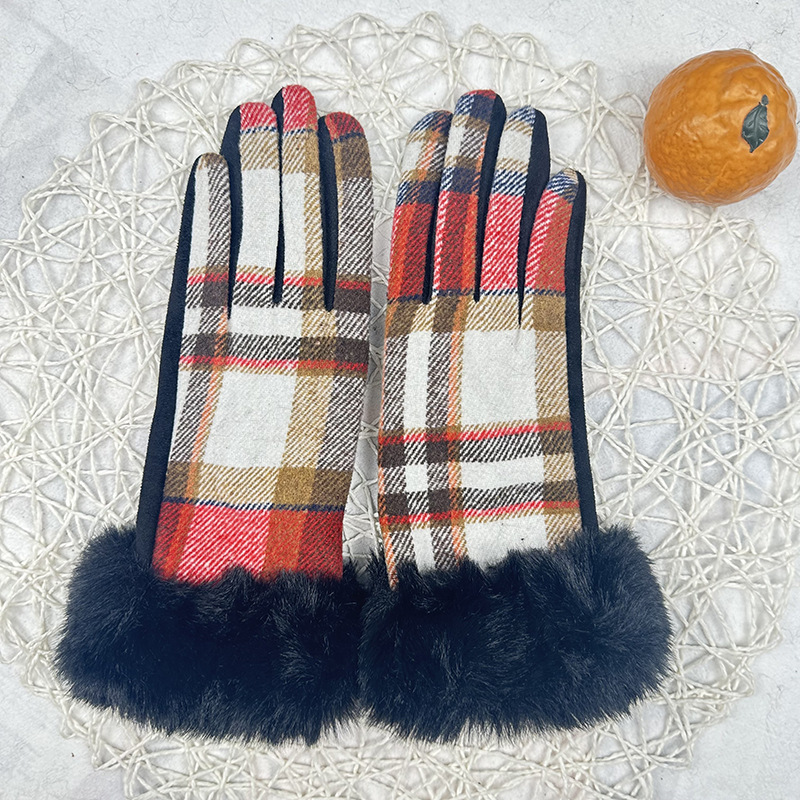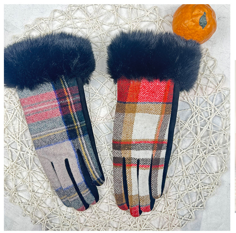 공장 도매 대외 무역 여성의 가을과 겨울 패션 격자 무늬 터치 스크린 장갑 기모 두꺼운 기모 따뜻한 장갑 국경