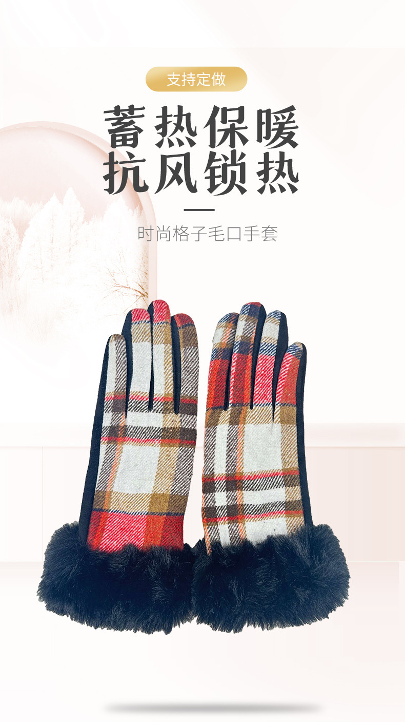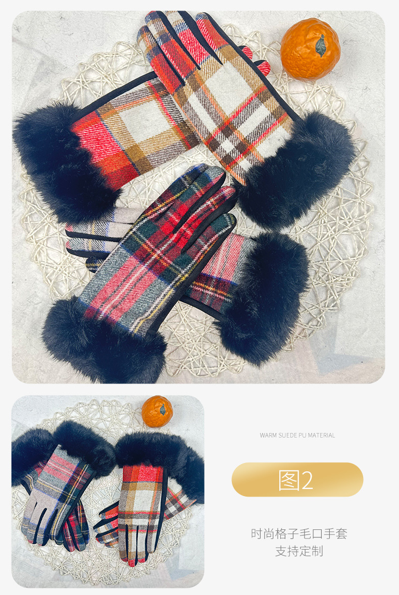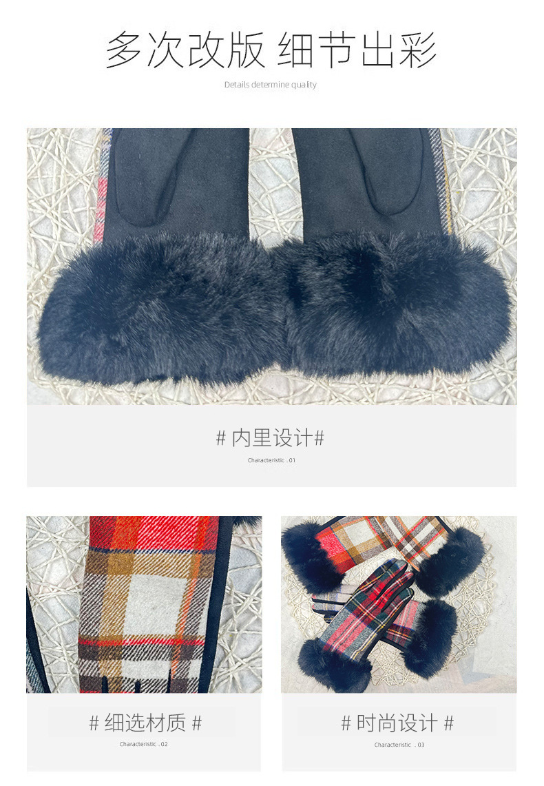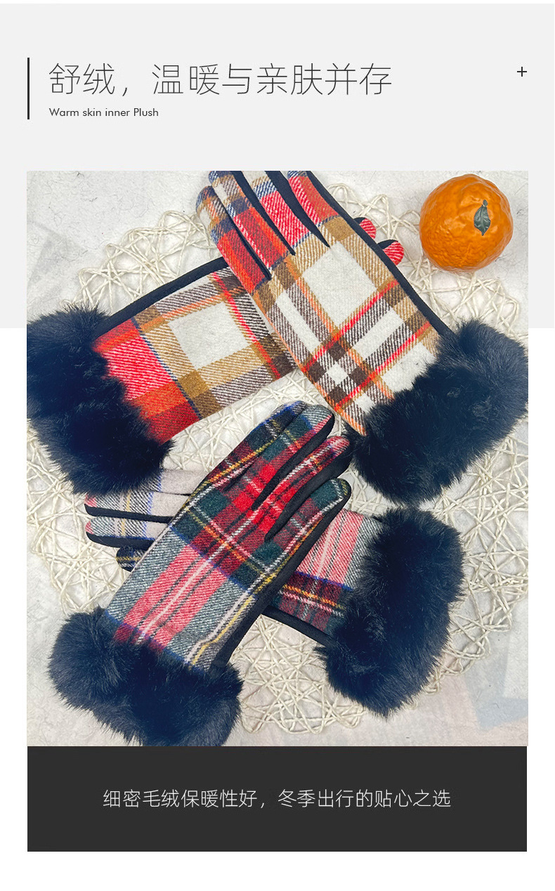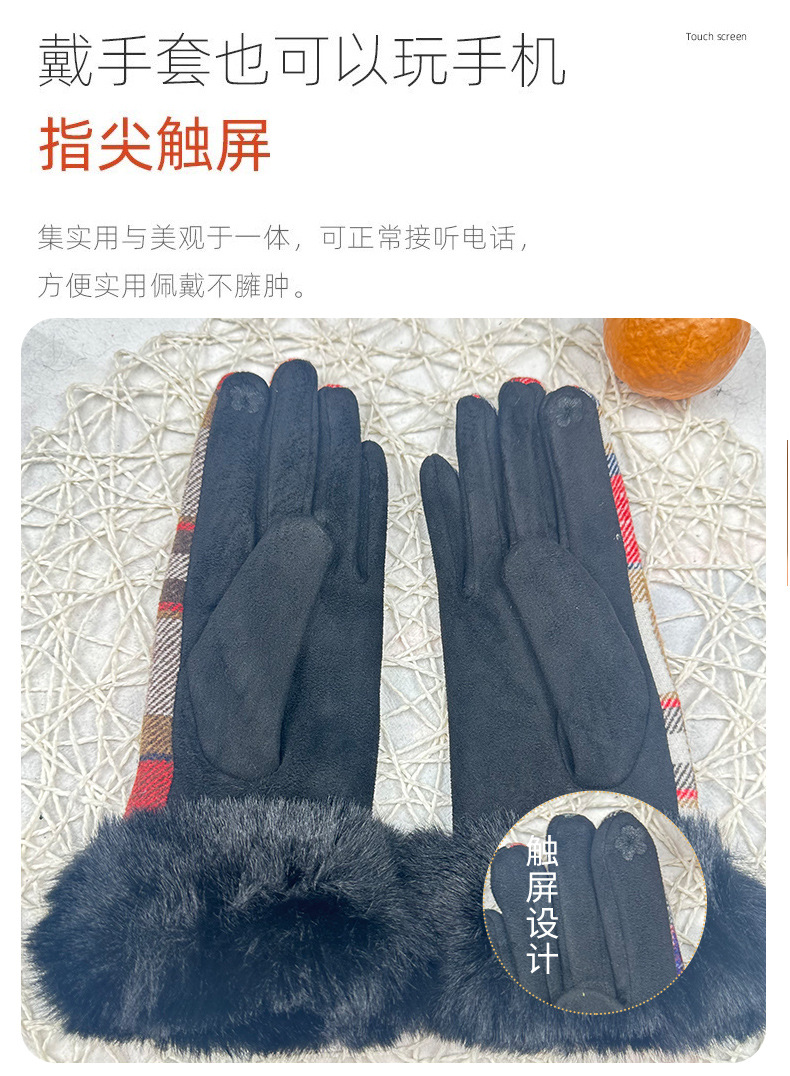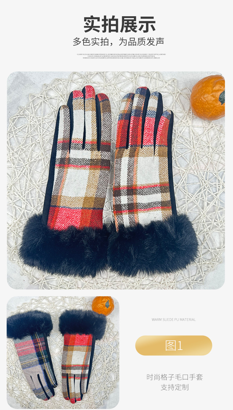 공장 도매 대외 무역 여성의 가을과 겨울 패션 격자 무늬 터치 스크린 장갑 기모 두꺼운 기모 따뜻한 장갑 국경스토어 가기