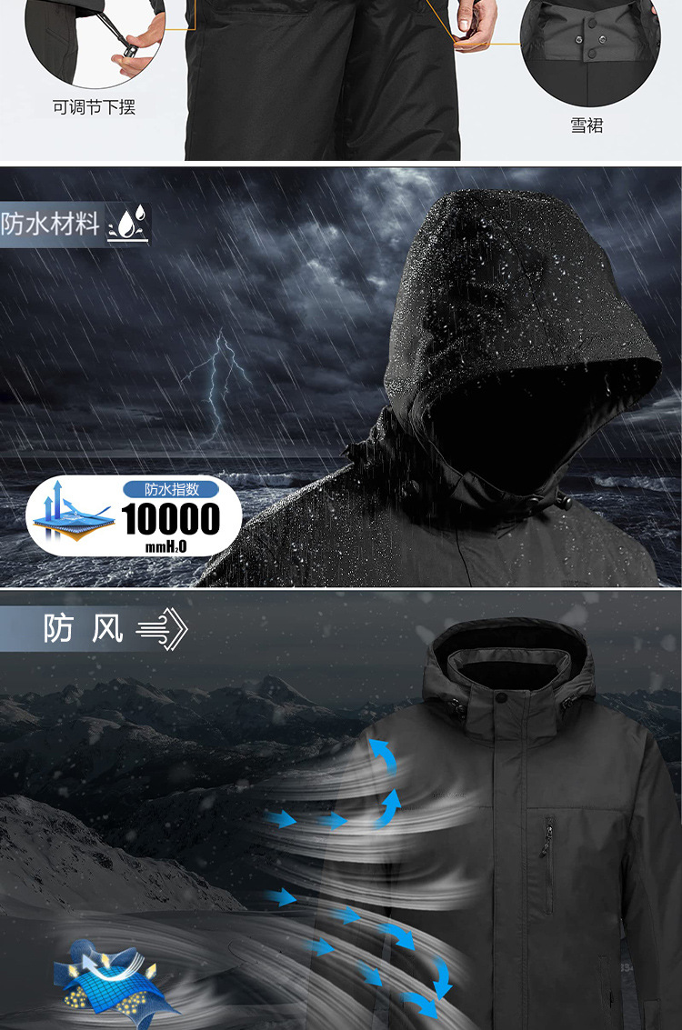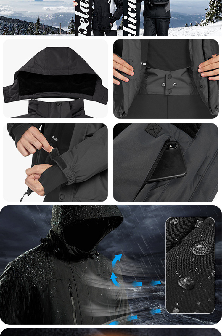 프리비이어 크로스보더 가을 겨울 남성용 아웃도어 면 재킷 후드 따뜻한 대형 방수 방한 스키복