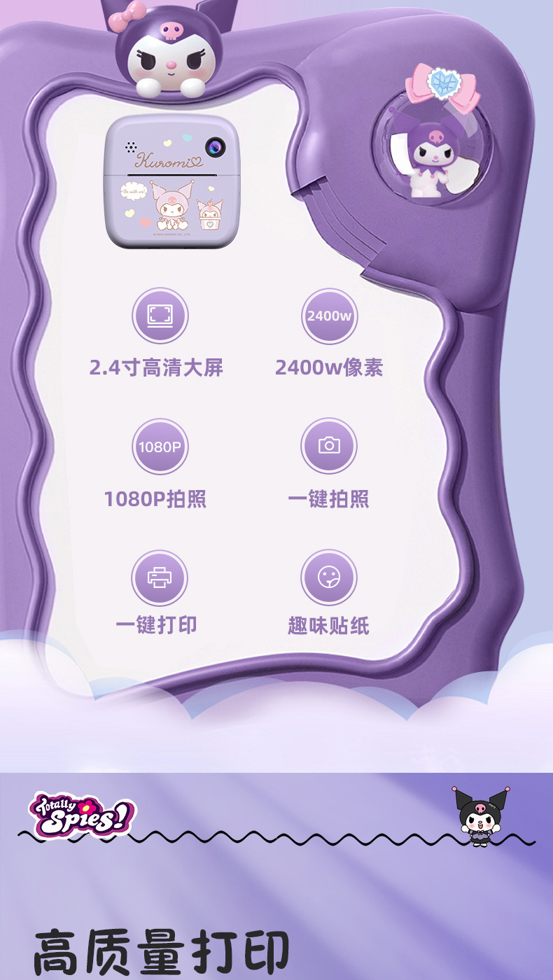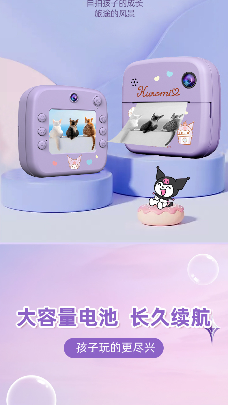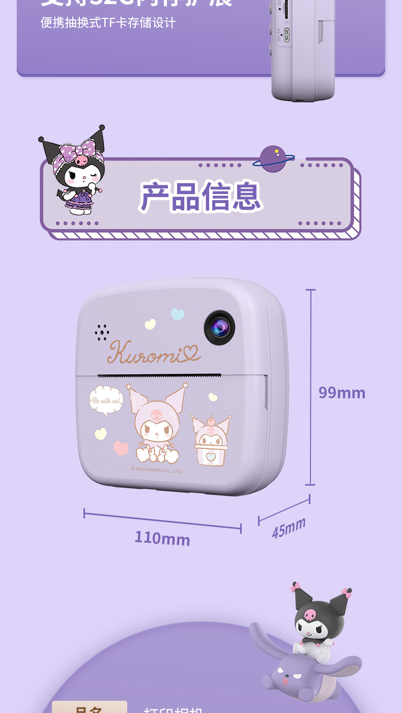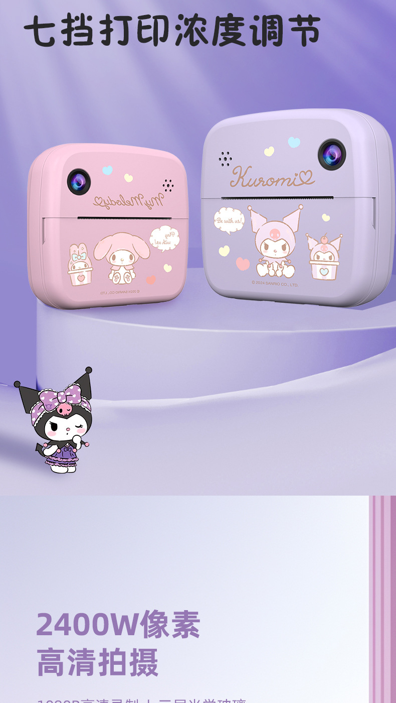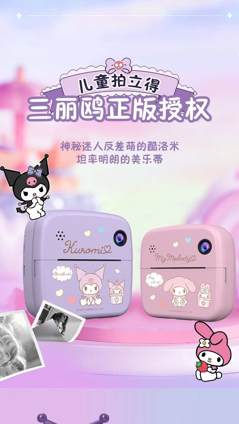 산리오 콜라보 어린이 프린트 카메라 쿠로미 빅이어독 멜로디 즉석카메라 만화 카메라 디지털