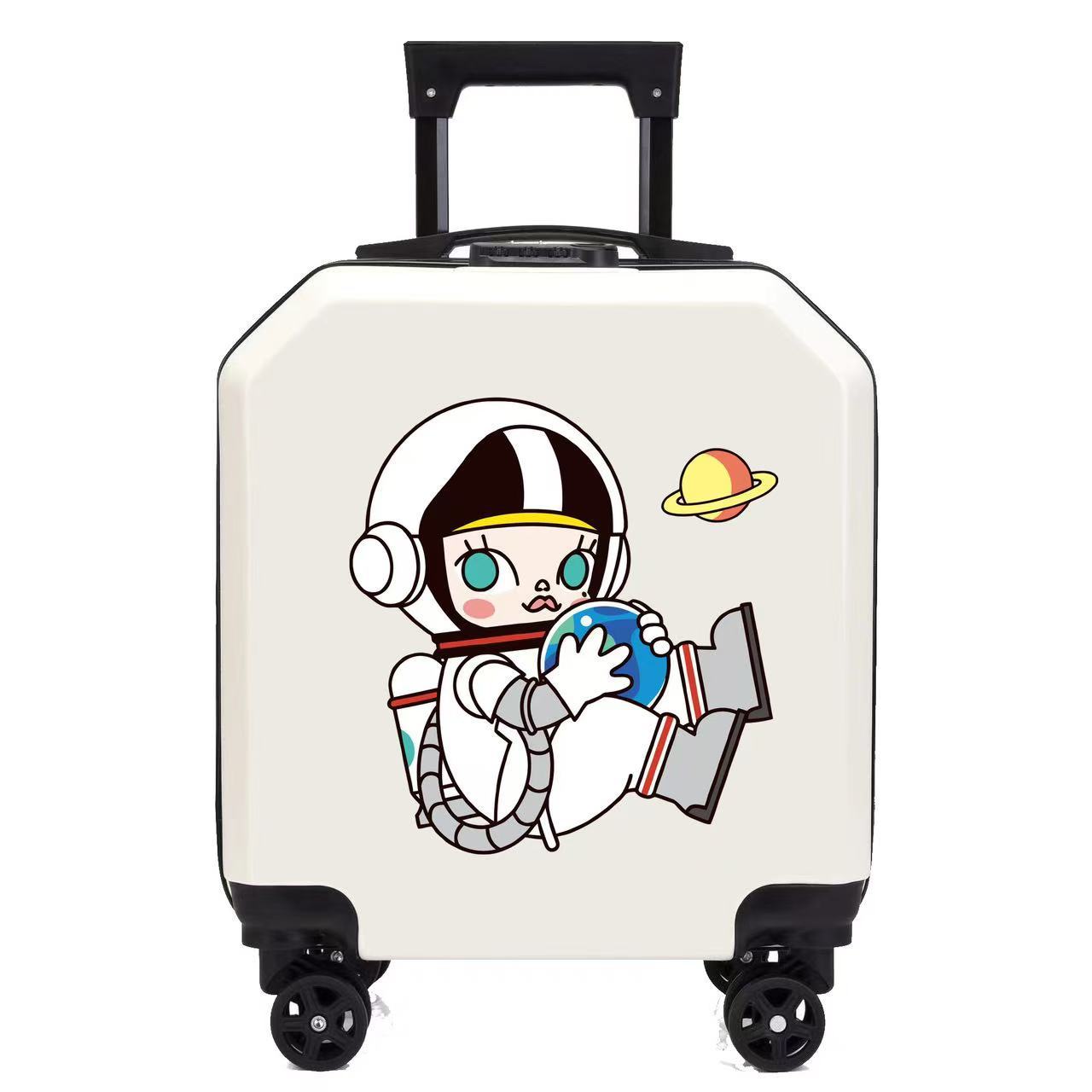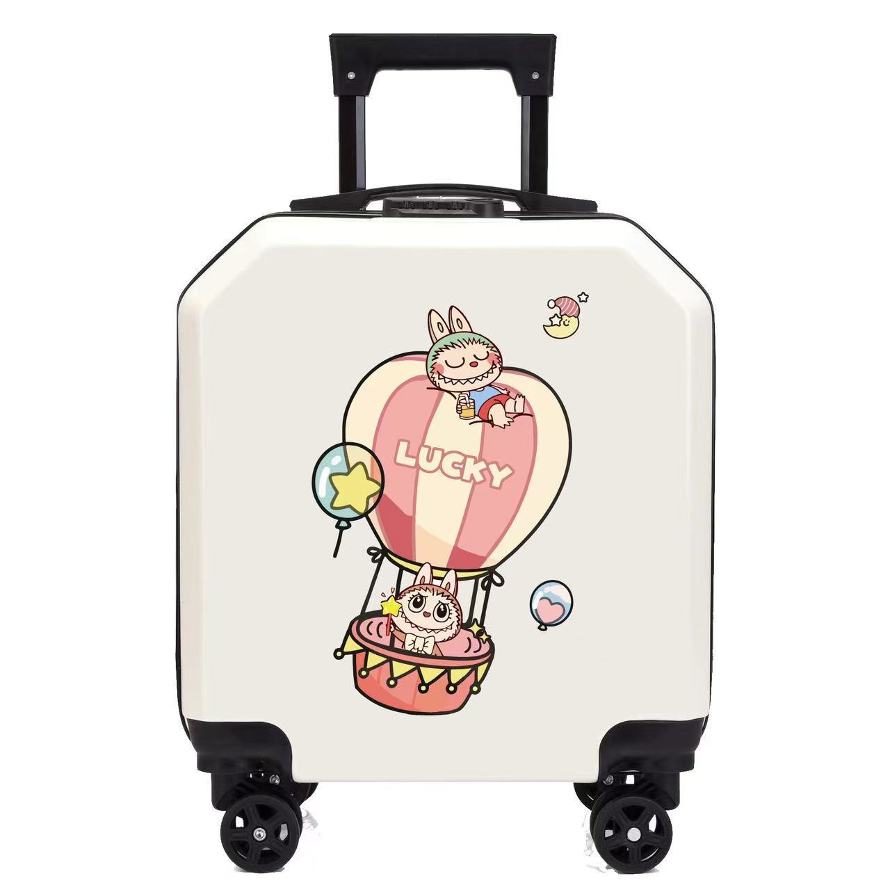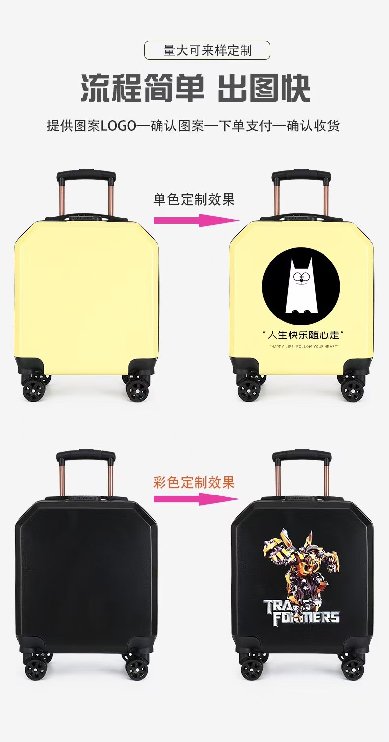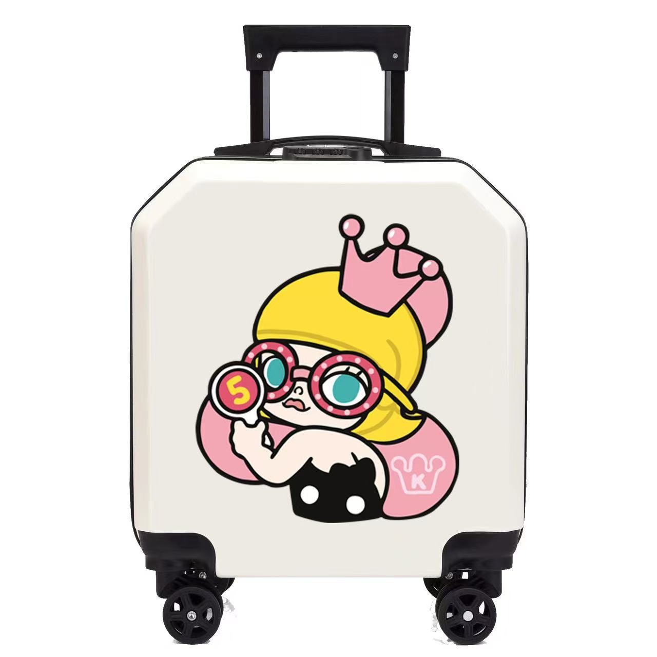 새로운 디자인의 로고 인쇄 가능한 만화 캐릭터 어린이용 트롤리 캐리어, 회전 바퀴, 인기 비밀번호 잠금 장치, 선물용 어린이 여행 가방스토어 가기