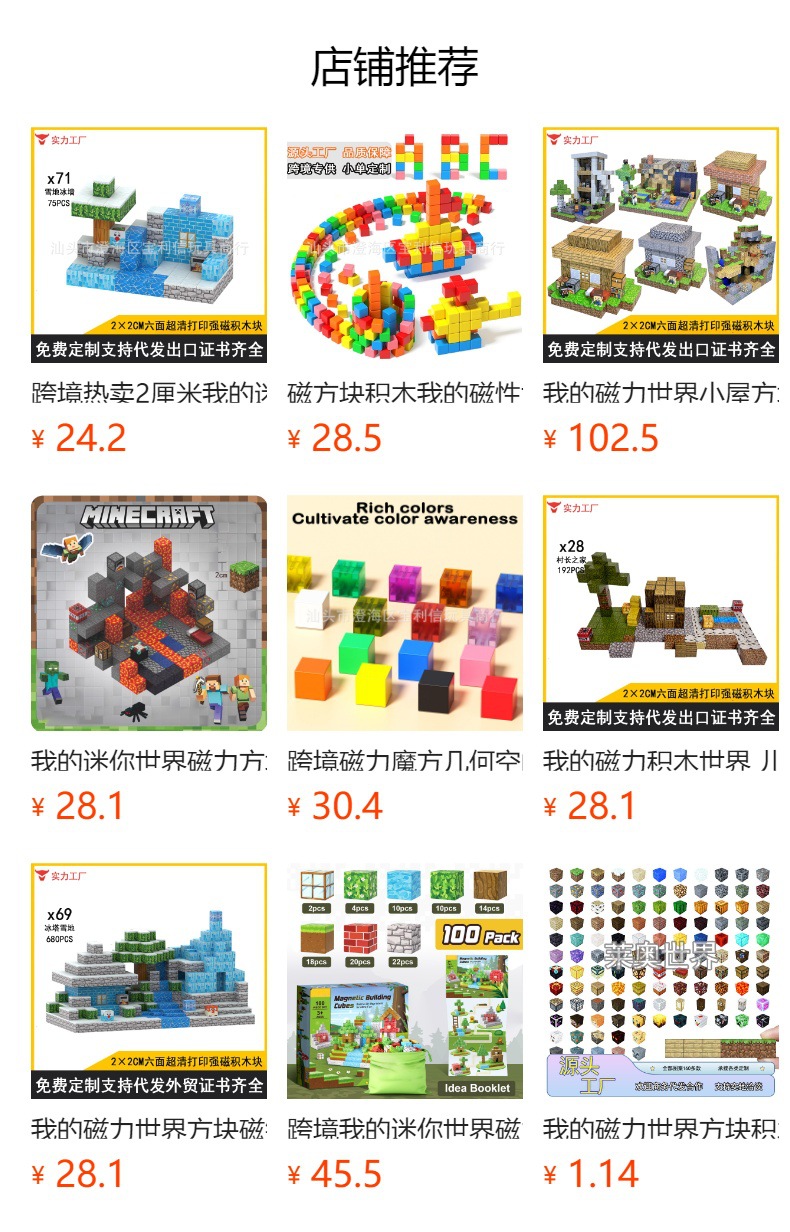 소스 공장 내 미니 스퀘어 세계 자기 철 6-12 세 건물 블록 어린이 교육 창조적 인 장난감 도매스토어 가기