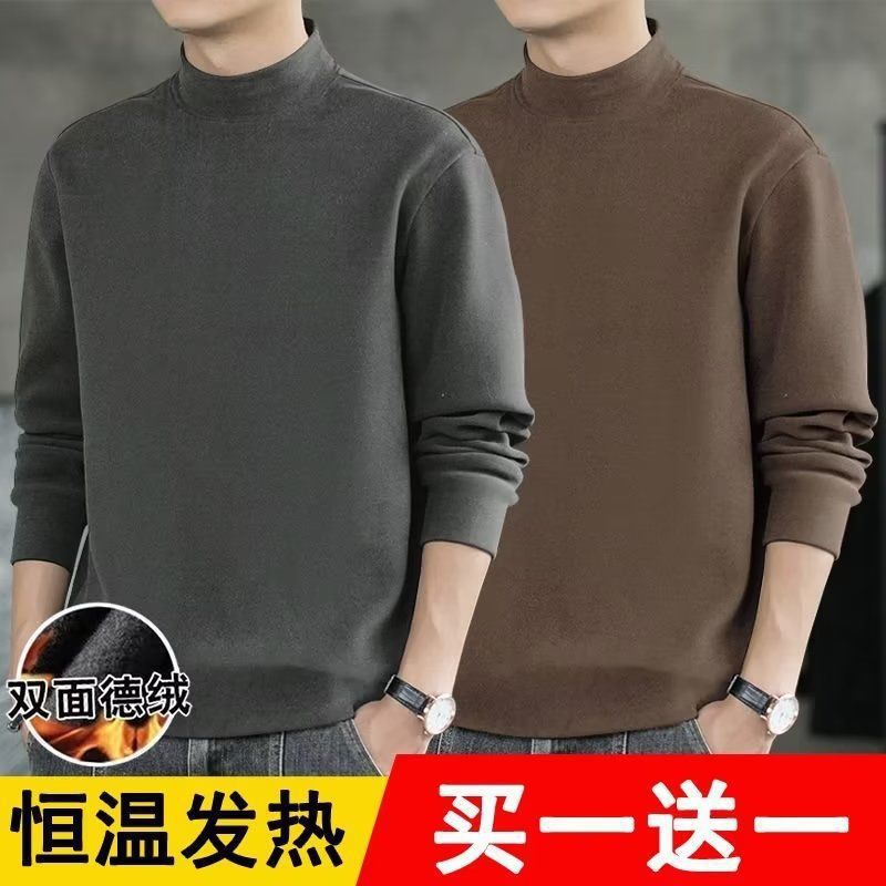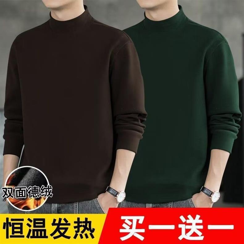 독일 벨벳 스웨터 남자 2024 가을 하프 하이 칼라 느슨한 긴 소매 티셔츠 따뜻한베이스 셔츠 남성 청소년 트렌드스토어 가기