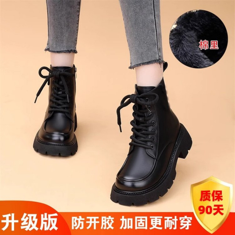 2024 가을과 겨울 새로운 두꺼운 뒤꿈치 작은 기모 그물 빨간 짧은 부츠 국경 패션 영국 스타일 마틴 부츠 여성 도매스토어 가기