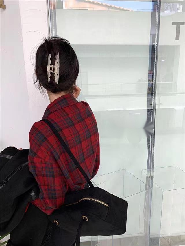 红色格子衬衫女装洋气时尚秋季2024新款小个子内搭叠穿衬衣上衣스토어 가기