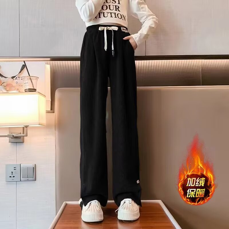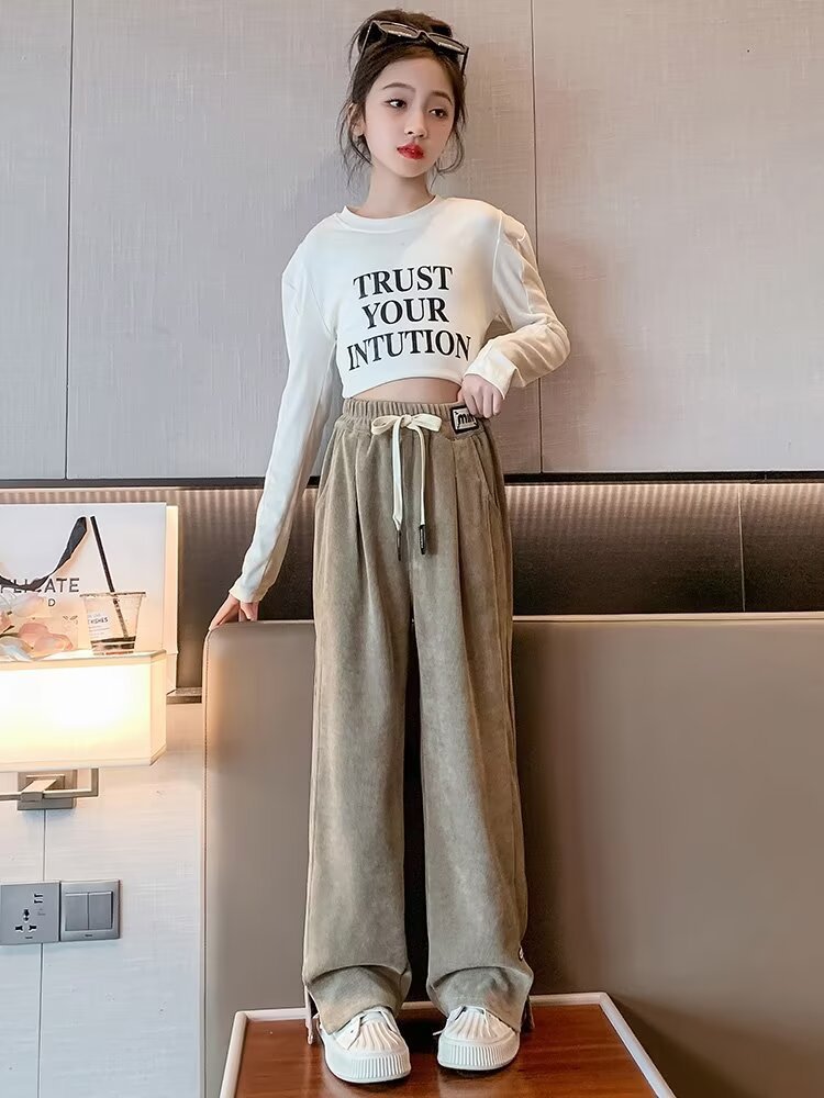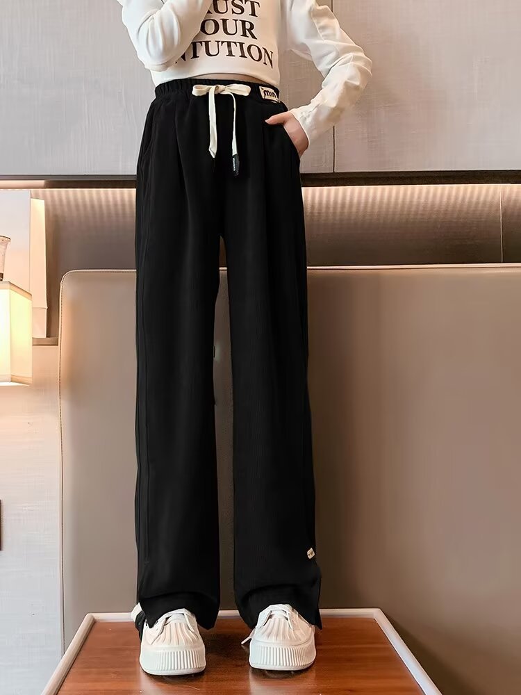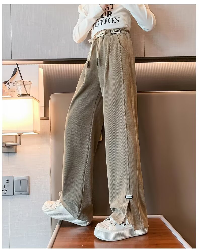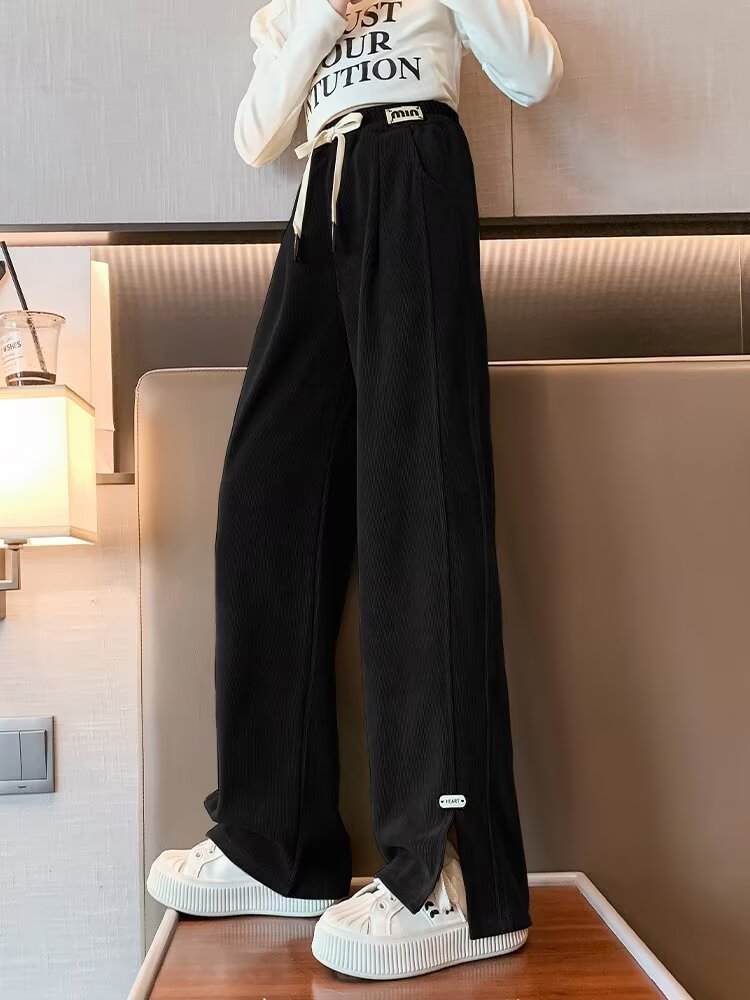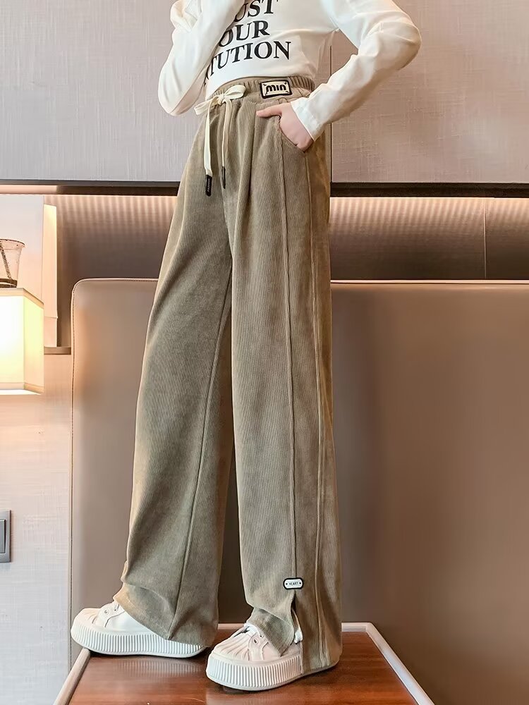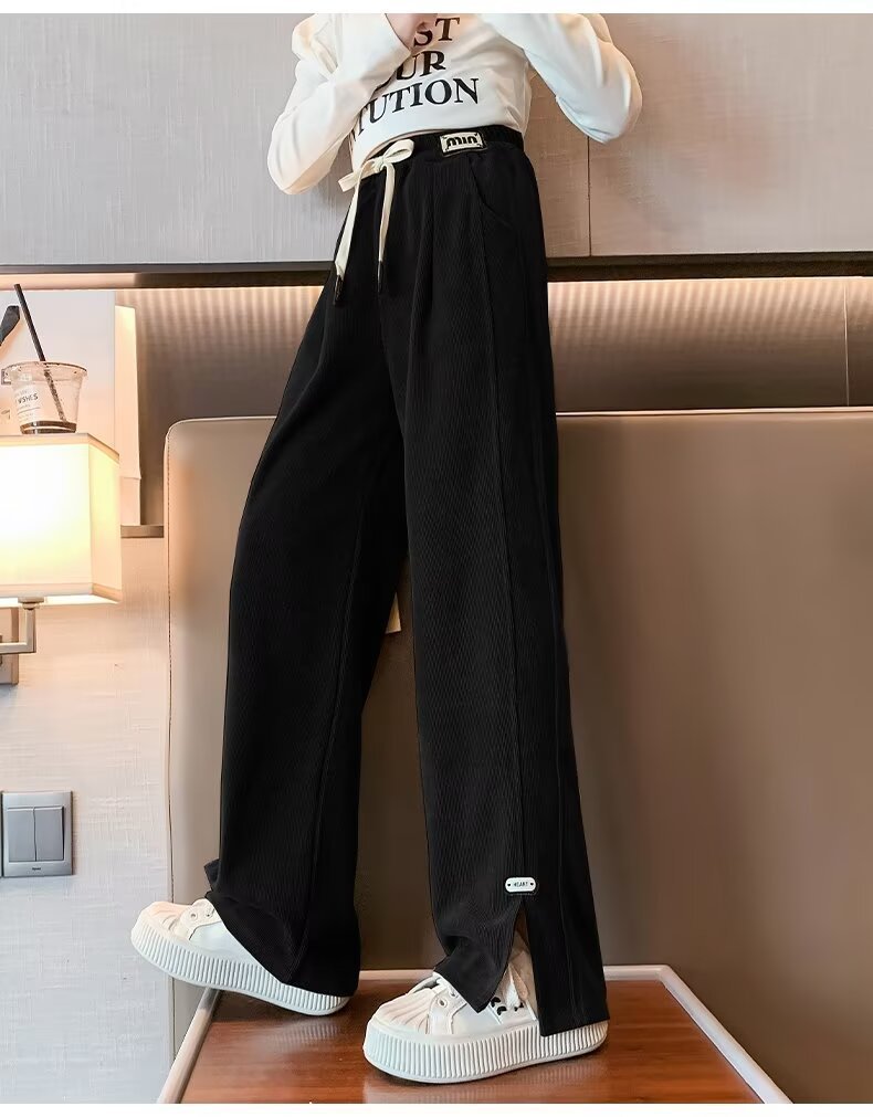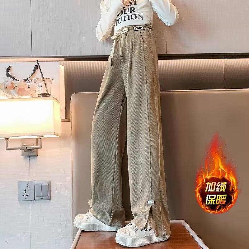 소녀 바지 봄과 가을 2024 새로운 어린이 넓은 다리 바지 여성 큰 어린이 가을 스트레이트 바지 스포츠 바지 기모