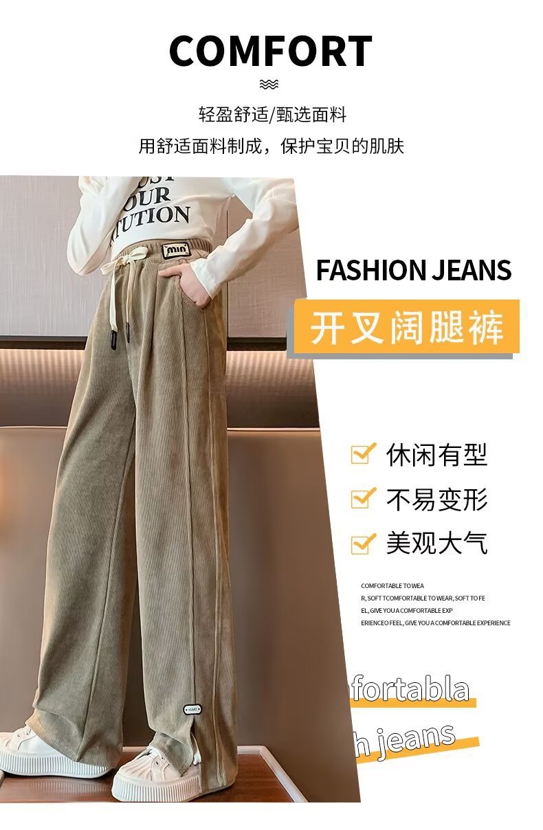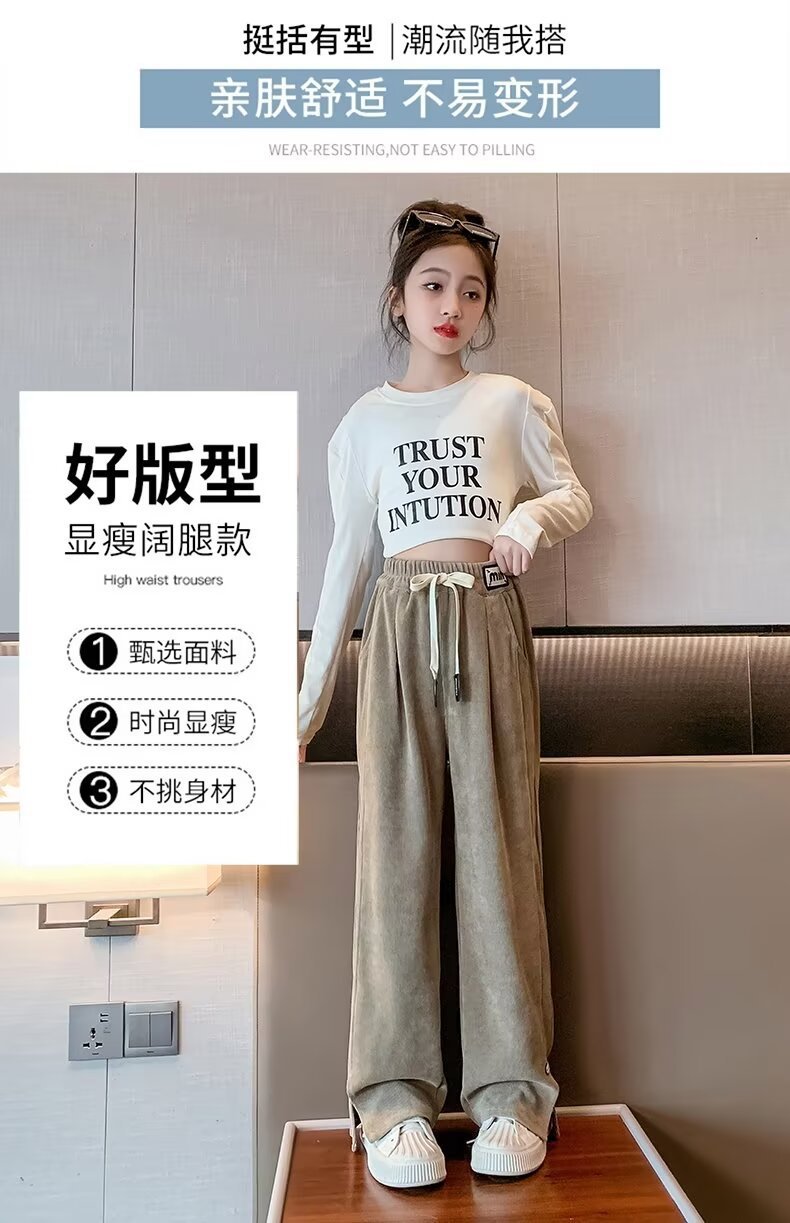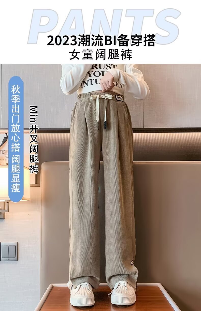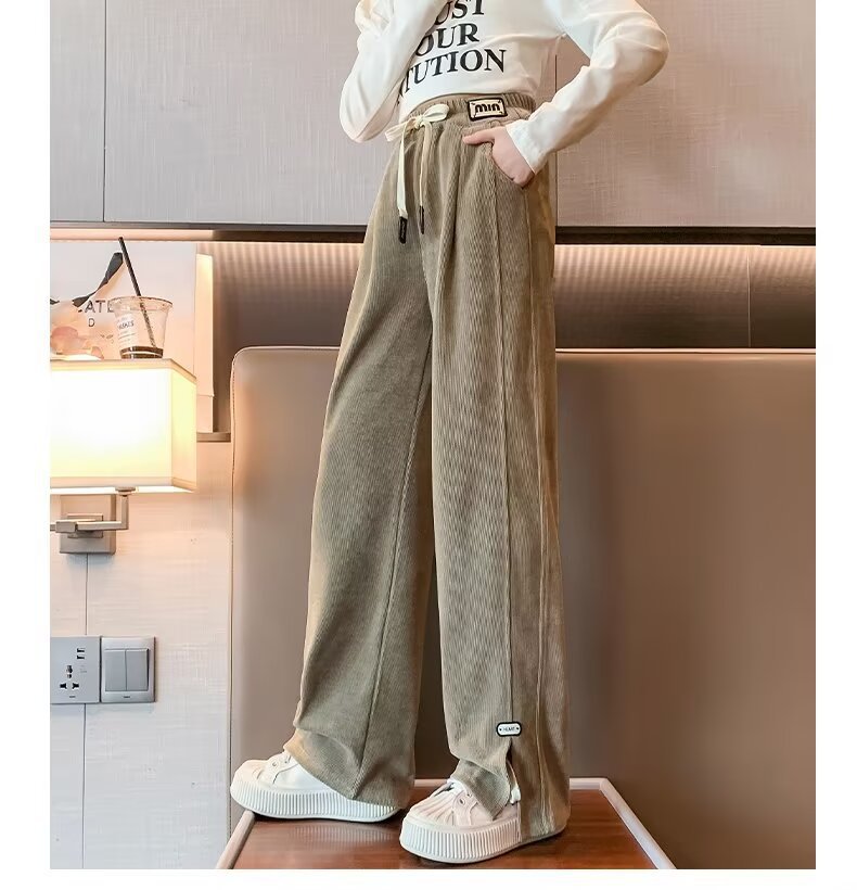 소녀 바지 봄과 가을 2024 새로운 어린이 넓은 다리 바지 여성 큰 어린이 가을 스트레이트 바지 스포츠 바지 기모스토어 가기